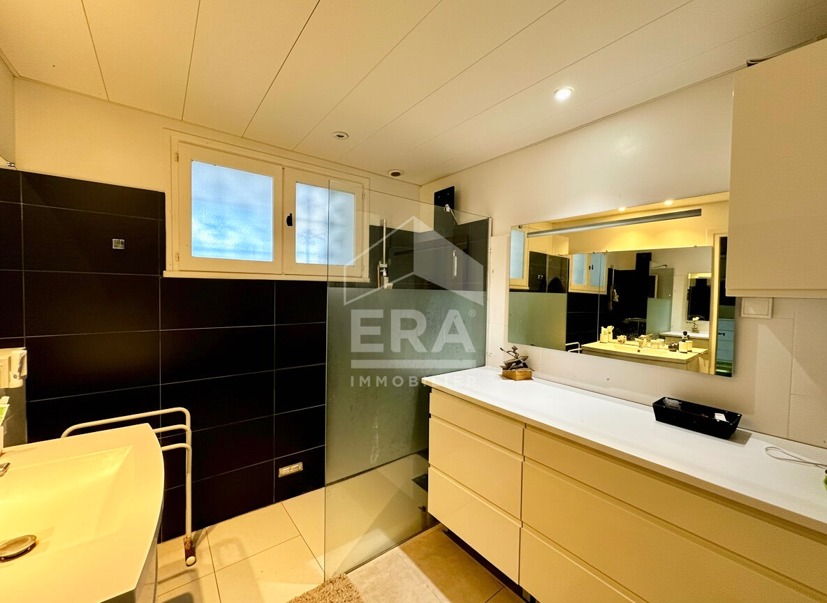 A 10 min des plages, découvrez cette magnifique maison à vendre située dans un secteur prisé de Perpignan. Cette propriété rare offre de généreux volumes et un cadre de vie idéal pour une famille à la recherche d'espace, de confort et de potentiel. Développant une surface habitable de 235 m² sur un terrain arboré de 1 825 m², la maison se compose de 8 pièces, dont 5 chambres, parfaitement adaptées à la vie familiale. L'intérieur propose une cuisine indépendante aménagée et équipée, un séjour lumineux de 39 m² exposé plein sud, ainsi que 3 salles d'eau et 3 WC, garantissant un confort optimal. A l'extérieur, la maison offre un bon standing et nécessite un rafraîchissement, laissant place à de belles possibilités de personnalisation. Elle dispose de menuiseries en PVC double vitrage, d'un assainissement tout à l'égout, d'un portail électrique et de panneaux solaires. Vous profiterez également de deux terrasses, d'une piscine, d'une véranda et de quatre places de stationnement extérieures. La localisation est idéale, à proximité immédiate des commerces, supermarchés, restaurants, écoles, parcs et infrastructures sportives. Une opportunité rare sur le secteur pour devenir propriétaire d'une maison spacieuse et confortable à Perpignan. Pour plus d'informations ou pour organiser une visite, contactez Christine de l'agence ERA Immobilier Château-Roussillon.