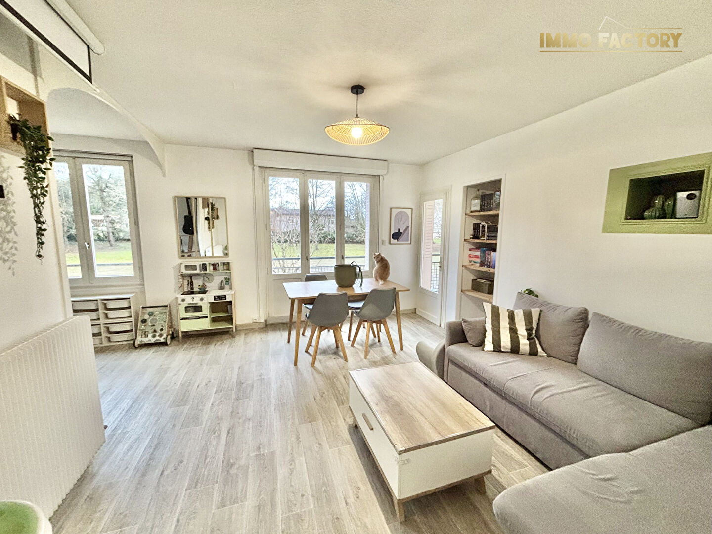 Région Auvergne Rhône-Alpes - Département Loire (42) Votre agence immobilière IMMO FACTORY à Roanne vous propose à la vente, en exclusivité, cet appartement de type 3 rénové avec goût situé au premier étage. Dès l'entrée, vous apprécierez les volumes et la fonctionnalité de ce bien. Il se compose d'une cuisine indépendante entièrement aménagée et équipée avec petit balcon, d'un salon-séjour lumineux ouvrant sur un agréable balcon donnant sur un parc arboré orienté plein sud, idéal pour profiter des beaux jours. Un dégagement avec placards intégrés dessert un WC séparé, une salle d'eau avec espace buanderie, ainsi que deux chambres confortables avec joli parquet au sol. Les prestations sont complétées par un cellier privatif sur le palier et une cave en sous-sol, offrant de précieux espaces de rangement. Stationnement libre au pied de la résidence. Un appartement fonctionnel et lumineux, parfait pour un premier achat ou un investissement locatif. Copropriété de 187 lots - dont 171 lots habitation. (Pas de procédure en cours). Charges annuelles : 927.79 euros.