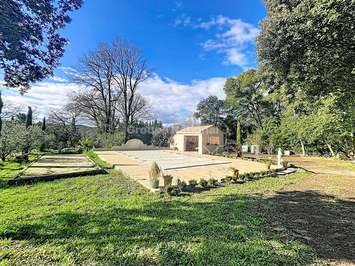 Implantée sur un terrain arboré de 4 003 m², cette maison offre une surface habitable d'environ 146 m² dans un environnement calme, agréable et ouvert sur l'extérieur. Au rez-de-chaussée, un grand hall d'entrée dessert une pièce de vie avec cheminée à foyer fermé ainsi qu'une cuisine indépendante , l'ensemble communiquant avec les terrasses et le jardin. Ce niveau comprend également une chambre, une salle d'eau et un WC. A l'étage, l'espace nuit se compose de trois chambres et d'une salle de bain. Le jardin, planté de vignes et d'oliviers, bénéficie de l'eau agricole pour l'arrosage. Le terrain accueille une piscine avec pool house, ainsi qu' un garage avec espace atelier pour le bricolage. Pour votre confort, la maison est équipée de double vitrage, d'une pompe à chaleur air/eau, d'un chauffe-eau thermodynamique et d'une fosse septique aux normes. Pour de plus amples renseignements n'hésitez pas à nous contacter nous serons ravis de vous la faire visiter. « Les informations sur les risques auxquels ce bien est exposé sont disponibles sur le site Géorisques : www.georisques.gouv.fr » Frédérique Burchiellaro (EI) Agent Commercial - Numéro RSAC : - .