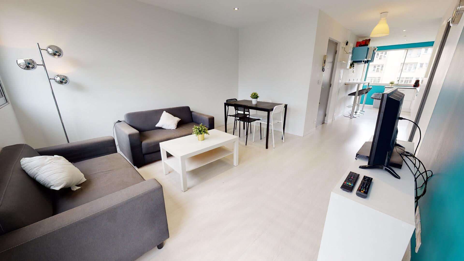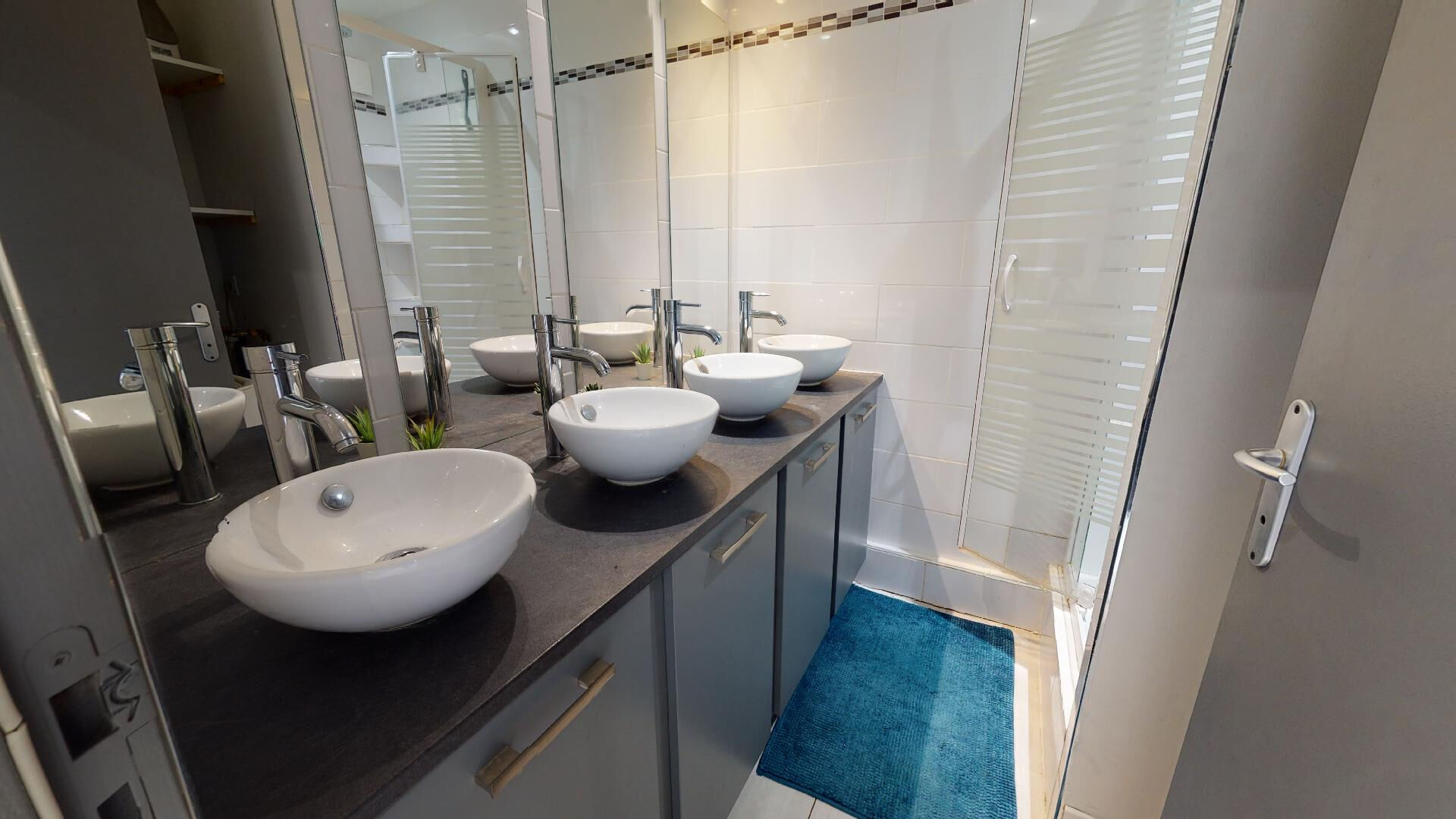 Appartement T5 colocation étudiante Idéal investisseur, appartement de 4 chambres louées environ 430 euros chacune. Cet appartement est situé à moins de 5 minutes à pied de l'arrêt de Tram Universités desservis par la ligne A et à moins de 10 minutes à pied des arrêts Carnot et Facultés desservis par les ligne B et C. De nombreuses lignes de bus circulent également dans un rayon de 300 mètres autour du logement. La porte d'entrée de ce logement s'ouvre sur une grande pièce de vie traversante, très lumineuse. La cuisine, située sur la gauche, est totalement équipée et fonctionnelle : frigo, lave vaisselle, four, plaque de cuisson et nombreux rangements. La porte se trouvant au bout de la cuisine offre l'accès à un balcon donnant sur la cours intérieur de l'immeuble. Le salon, situé sur la droite, se compose de deux canapés, d'un meuble TV, d'une table basse, d'un TV et d'une table à manger, idéale pour partager des repas entre colocataire. Des WC séparés ainsi qu'une salle de bain avec machine à laver, cabine de douche et 4 vasques avec son meuble de rangement (un par colocataire) viennent compléter cet appartement ! A visiter sans tarder ! (5.00 % honoraires TTC à la charge de l'acquéreur.)