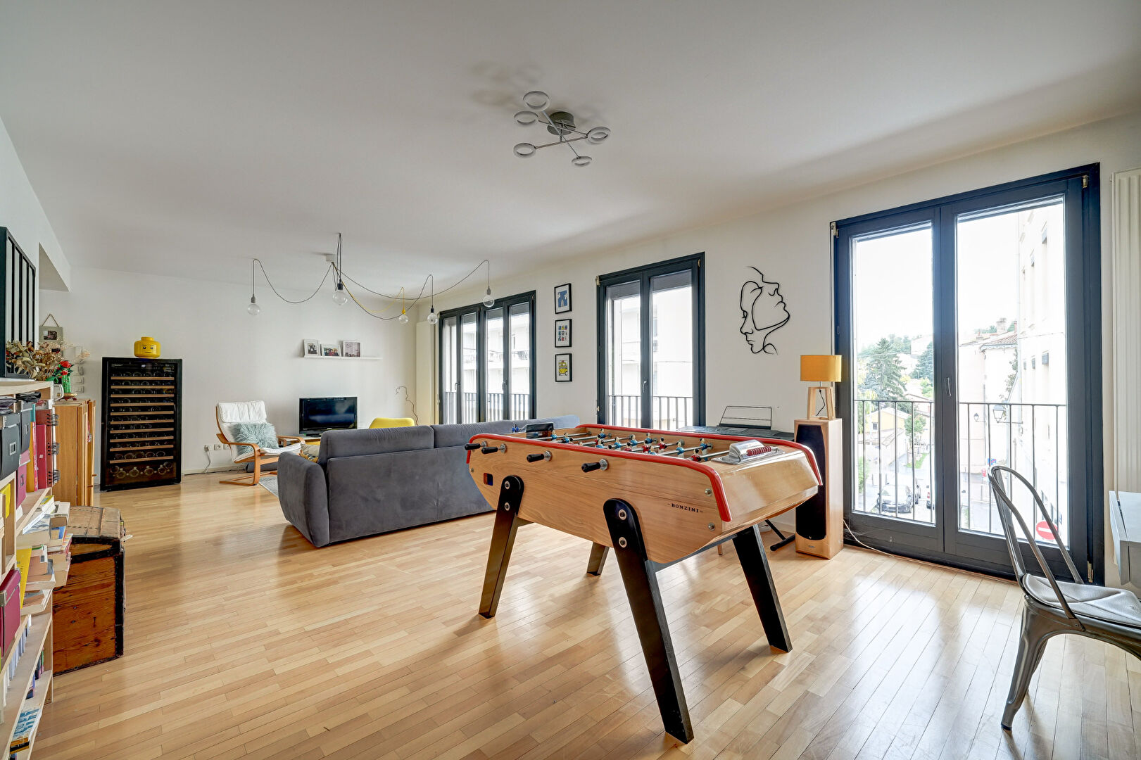 Catanéo vous présente, en exclusivité, un magnifique appartement de 124m² en plein coeur du quartier Saint-Just. Situé dans le très prisé quartier du 5ème arrondissement de Lyon, au 80 Rue de Trion, cet appartement T5 de 124m² situé au 1er étage d'un immeuble moderne et contemporain, ayant été entièrement rénové a neuf par un architecte. Vous profiterez de nombreux avantages ! Une pièce de vie avec cuisine ouverte de 61 m² ! 2 terrasses, représentant un total de 44m² d'extérieur, Un bien extrêmement lumineux, traversant Sud/Ouest , Nord/Est. 3 atouts rares dans le quartier Saint-Just ! L'appartement est également composé de 4 chambres équipées d'un système de climatisation, Une salle de bains avec douche et baignoire, possibilité d'en créer une seconde, un WC, un abri de jardin, Vous aurez la possibilité d'acquérir en garage fermé en sus. L'appartement se situe dans une toute petite copropriété de 2 appartements situé à 2 pas du Funiculaire, vous permettant un accès facile au centre de Lyon. Le quartier Saint-Just est un secteur idéal, esprit "village" avec ses commerces, son marché et sa facilité d'accès au centre de Lyon. Vous pouvez me contacter au 06.25.20.51.29 ou par mail à t.laville@cataneo.fr Taxe Foncière : 1 731 euros Charges de copropriété : 413 euros Lots au sein de la copropriété : 3 https://cataneo-investissement-immobilier.fr/nos-tarifs/ Les informations sur les risques auxquels ce bien est exposé sont disponibles sur le site Géorisques : www. georisques. gouv. fr (***). Copropriété de 3 lots - dont 2 lots habitation. (Pas de procédure en cours). Charges annuelles : 463 euros.