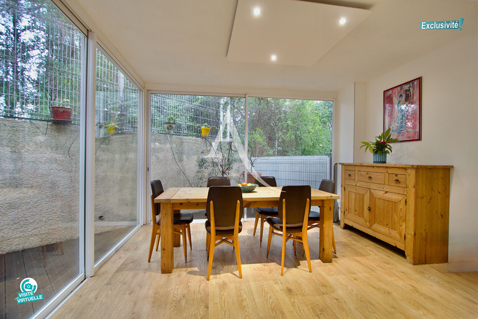RARE - MONTPELLIER ESTANOVE - DUPLEX T4 CLIMATISÉ - 91 M2 UTILES (77,94 M2 CARREZ) - 2 CHAMBRES - JARDINET - VERANDA- GARAGE - 1 PLACE DE STATIONNEMENT Dans un quartier résidentiel calme de Montpellier, ce duplex avec 55 m² de jardinet, situé dans une résidence récente et sécurisée en impasse, offre un cadre de vie idéal, à proximité immédiate de 2 arrêts de la ligne 5 du tram. Au rez-de-chaussée, l'entrée avec placards mène à une magnifique cuisine aménagée et équipée constituant le coeur de la maison, et ouverte sur un salon ainsi que sur une véranda de 14 m2, qui prolonge l'espace de vie. A ce niveau, se trouve également une salle d'eau avec WC. Depuis la véranda, on accède à un jardin privatif, actuellement terrassé, idéal pour se détendre et tenir compagnie aux écureuils du parc voisin... A l'étage, 2 chambres dont une avec placard, ainsi qu'une salle de bains et un WC complètent utilement le bien. Possibilité de créer une 3e chambre au rez-de-chaussée. L'extérieur dispose d'une grande terrasse permettant de profiter des beaux jours, et d'un accès direct au garage attenant. Une place de stationnement fait également partie du bien. La résidence dispose d'un local à vélos LES ATOUTS DE CE BIEN : - Résidence récente - Petite copropriété de 7 logements seulement (et faibles charges) - Jardinet privatif - Garage - Climatisation - Place de parking privée et sécurisée - Proche de 2 arrêts de la ligne 5 du tram - A proximité des commerces, des écoles et d'une crèche Ce bien rare est idéal pour une famille ou un couple de jeunes actifs en recherche d'un cadre de vie calme et connecté à Montpellier, dans un quartier en "plein renouvellement". * VISITE IMMERSIVE 360° DISPONIBLE * Copropriété de 20 lots - dont 7 lots habitation. (Pas de procédure en cours). Charges annuelles : 1130 euros.