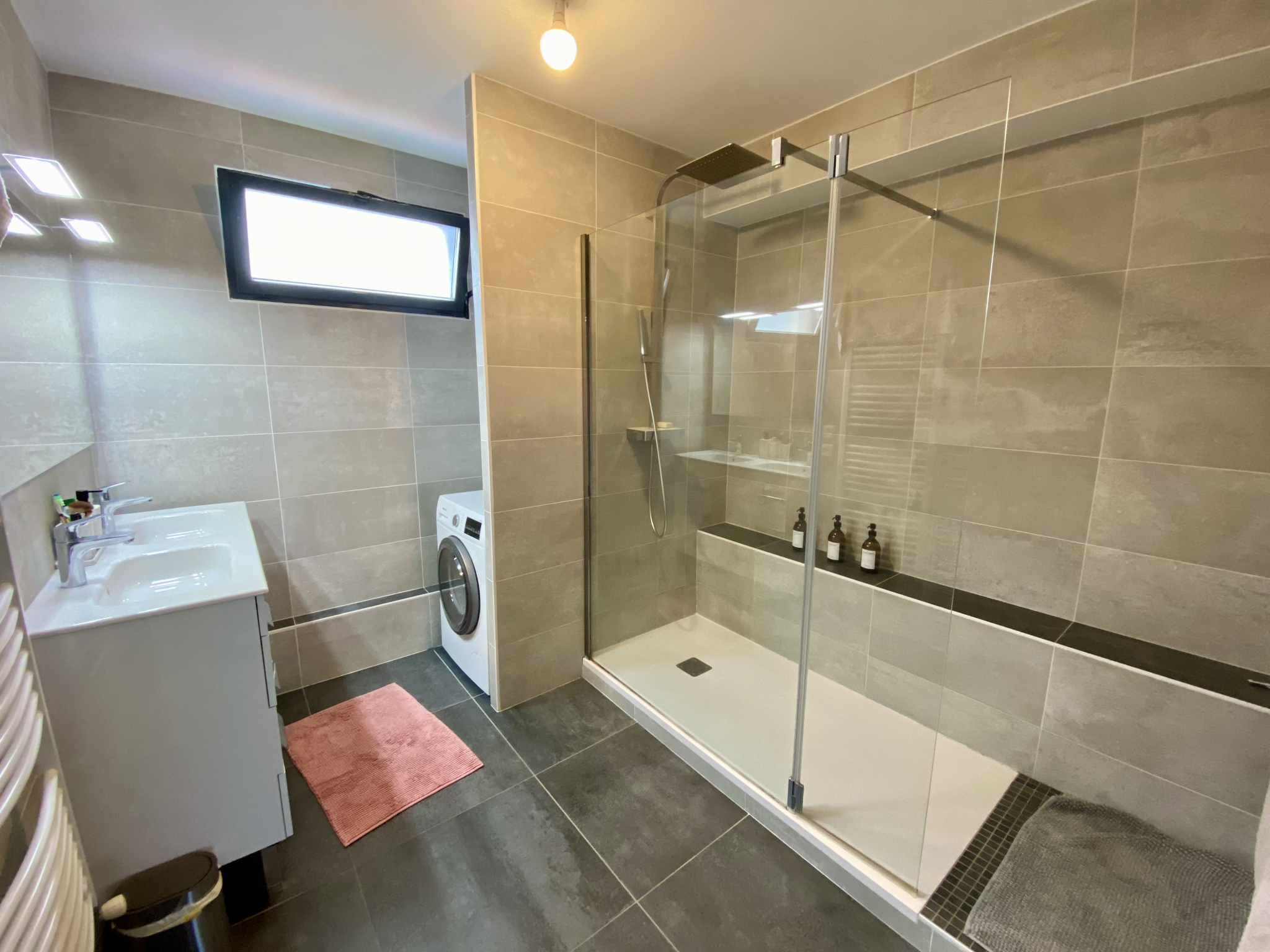 Vous bénéficierez également d'une salle de bain moderne de 8 m2, avec douche à l'italienne, ainsi que de WC séparés.
