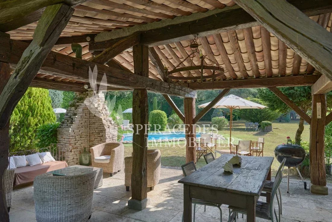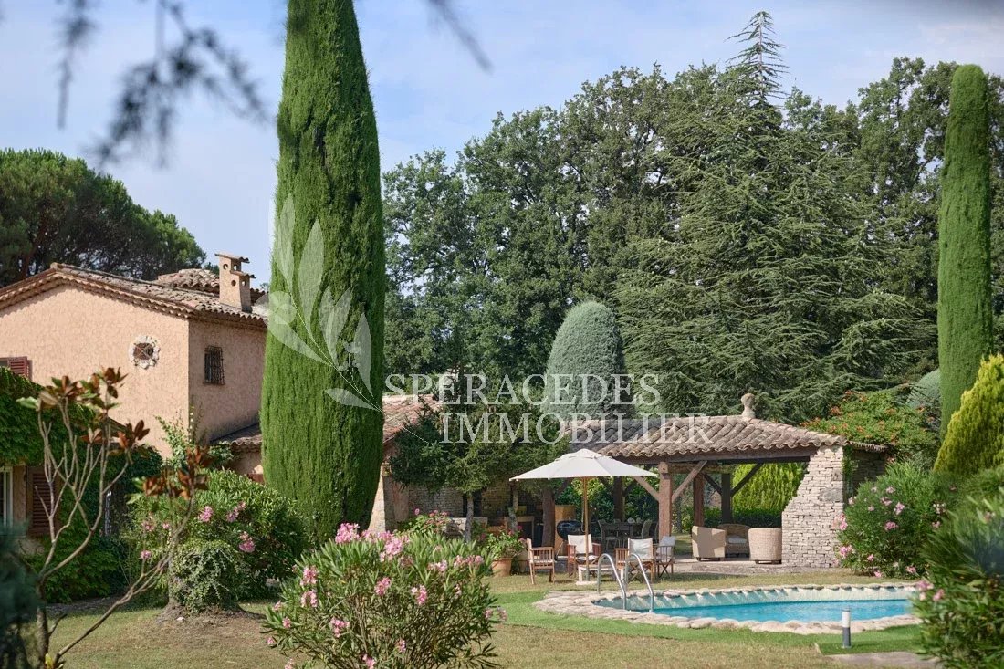 Au sein d'un domaine fermé et au calme absolu, superbe maison familiale en pierres au coeur d'un magnifique jardin paysagé de 7000 m². D'une surface habitable de 231 m², la maison comprend une entrée donnant sur un salon avec cheminée et très belle hauteur sous plafond, une salle à manger, une cuisine équipée et une arrière cuisine. Au rez-de-chaussée, accessible par un corridor donnant sur une très belle terrasse, se trouvent également un WC invités, 3 chambres, une salle de bains indépendante, une chambre avec salle de douche en suite, un jardin d’hiver, une grande chambre avec cheminée et salle de bains en suite. A l’étage, un salon de jeux/TV en mezzanine, une grande chambre avec salle de douche en suite et un espace bureau/dressing. Toutes les chambres disposent de placards intégrés. En sus: 90 m2 d'annexes comprenant 1 garage, 4 box fermés et un magnifique pool-house en pierres. Piscine chauffée de forme libre.