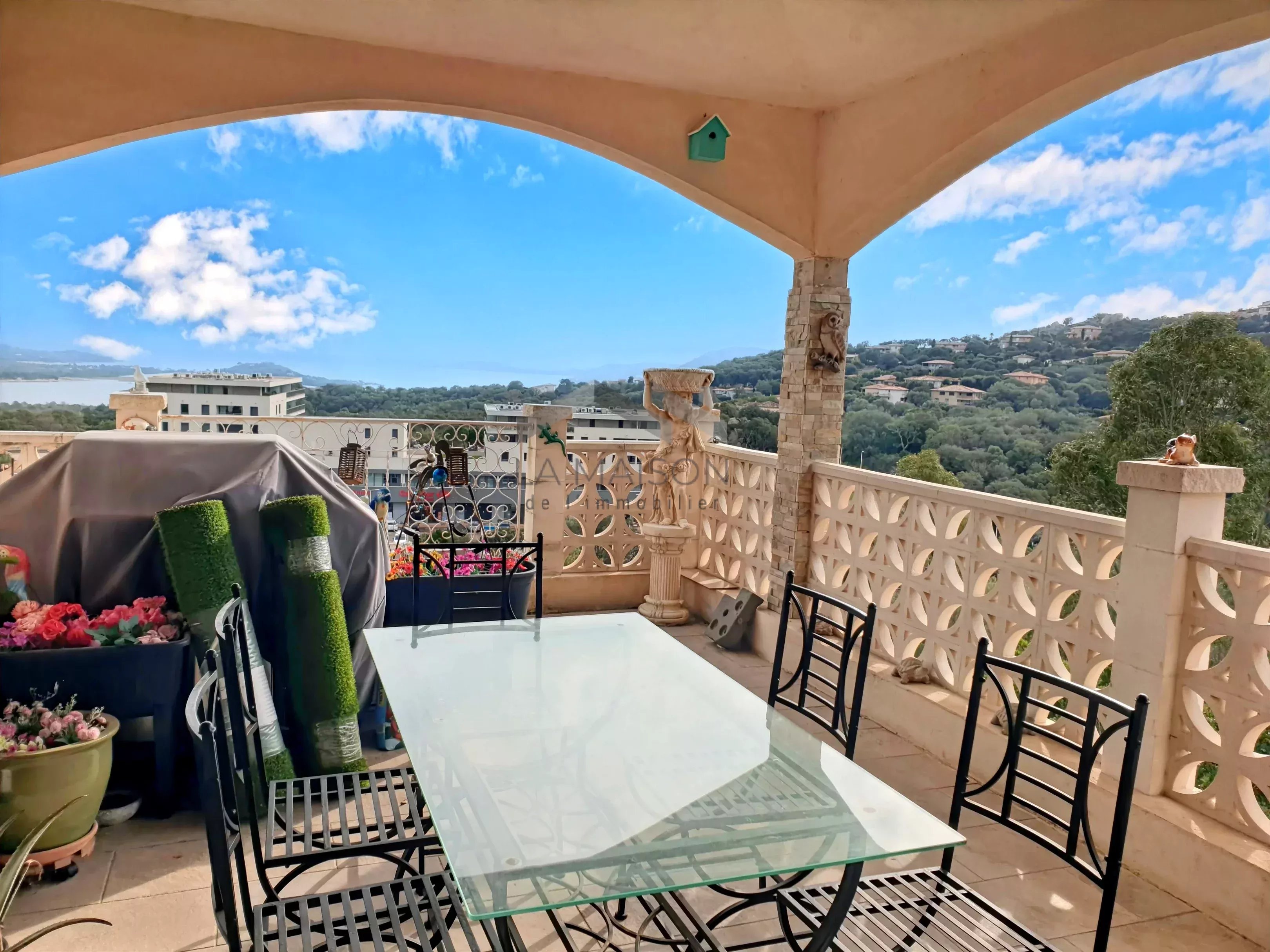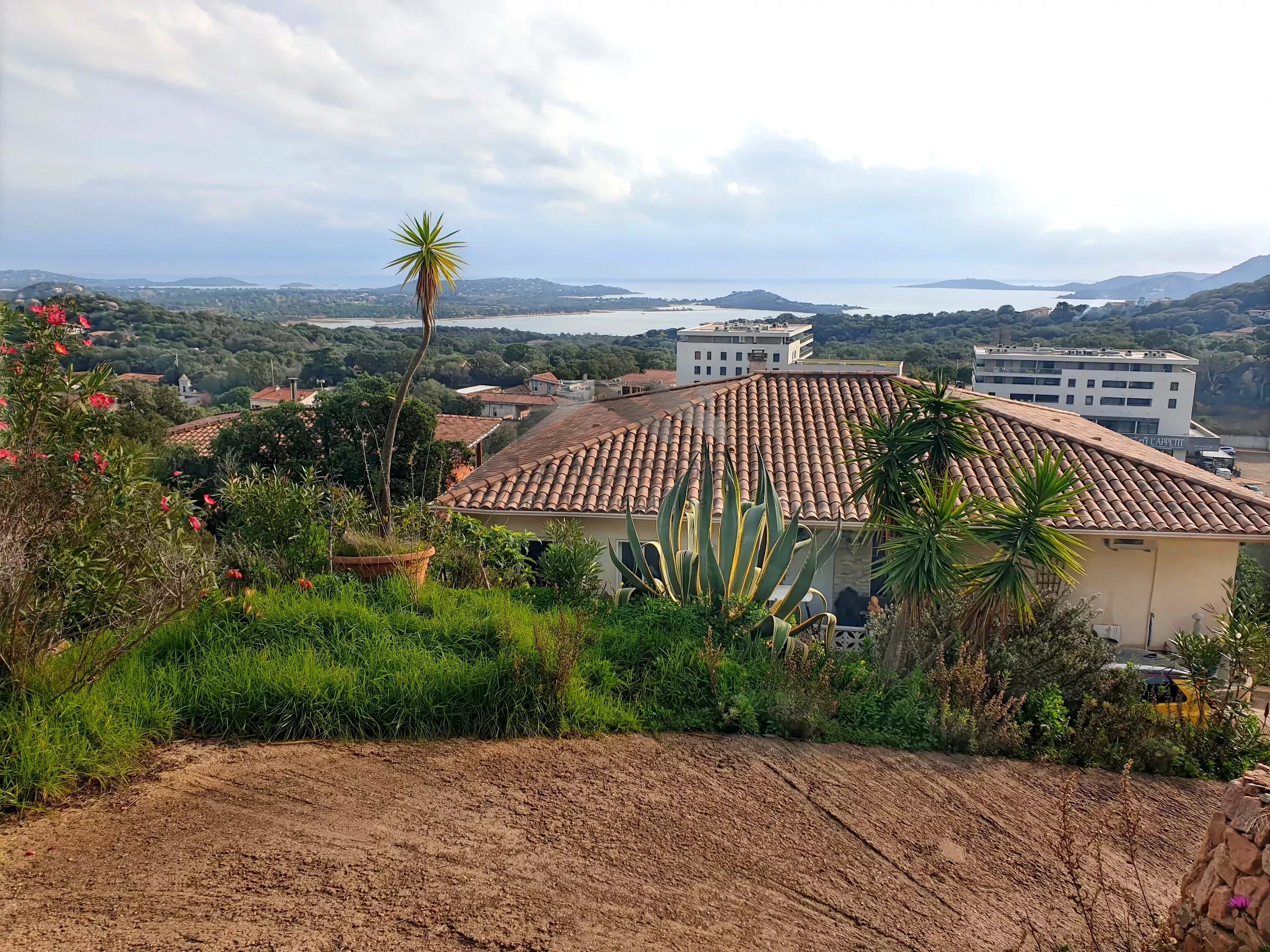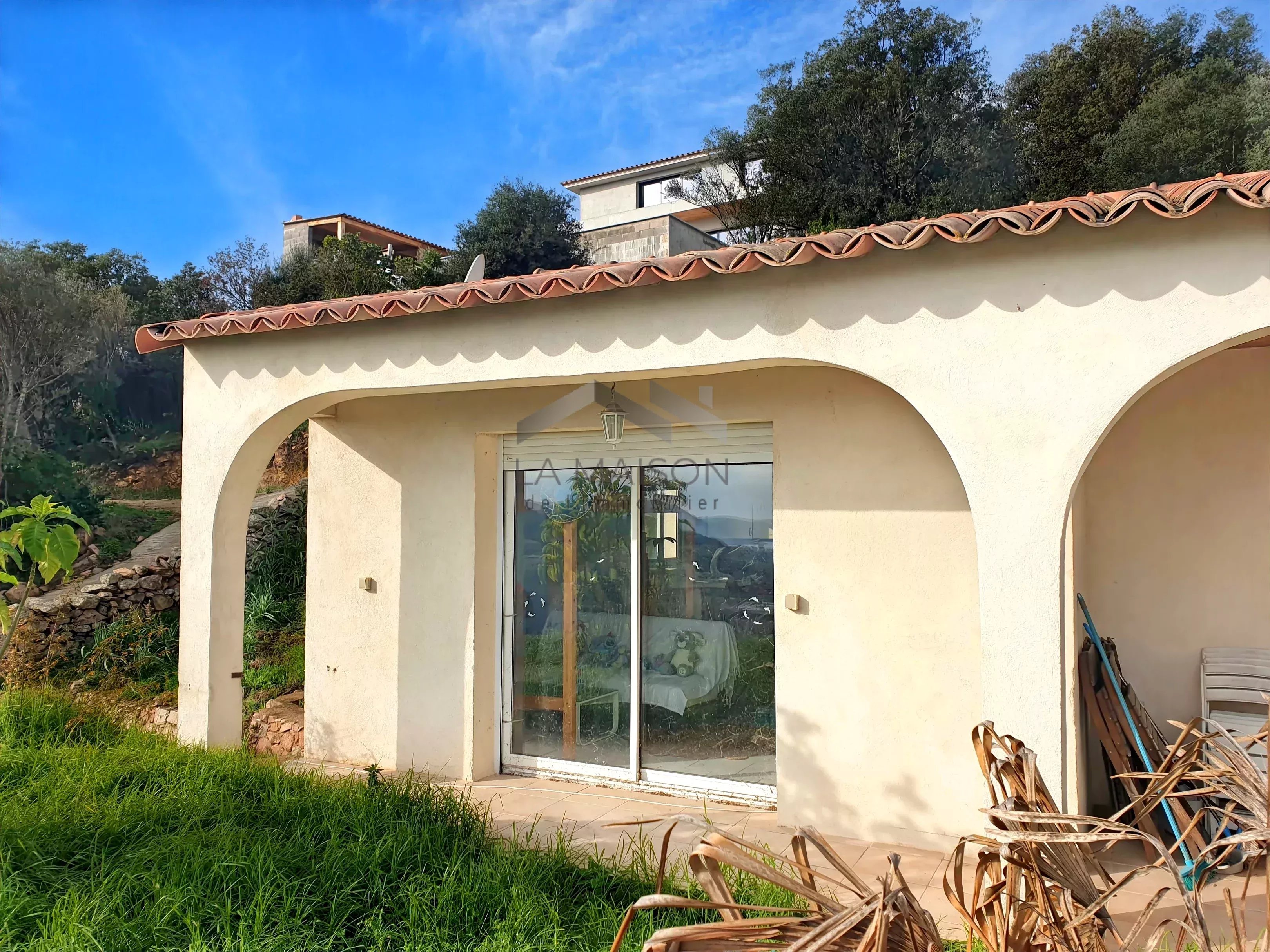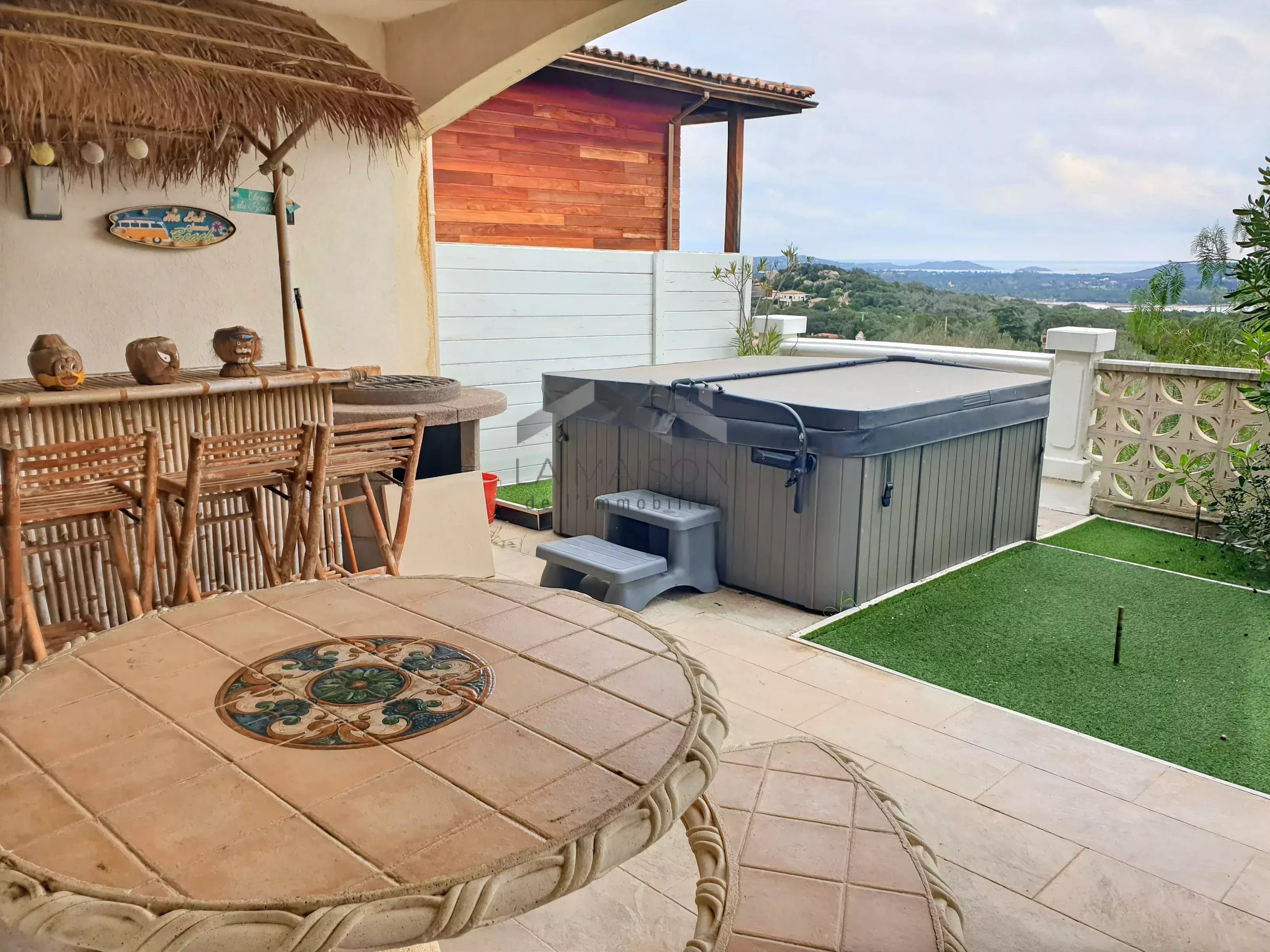 Venez saisir cette opportunité dans le quartier de La Trinité de Porto-Vecchio, d'acquérir un terrain de 2710 m² à fort potentiel constructible, supportant un ensemble immobilier orienté plein Est avec vue sur la mer en tout point de la parcelle. Ce terrain permet la réalisation de petits ensembles résidentiels collectifs en R+1 à R+2 dans le respect des règles d'urbanisme en vigueur et d'une bonne intégration. Cette parcelle est située en zone UV du plan local d'urbanisme en attente d'approbation, qui prévoit une constructibilité en R+2 avec une hauteur maximale de 9 m à l'égout. Configuration actuelle Au centre du terrain se trouve une villa principale comprenant deux appartements : Un appartement principal de type 7 d'une surface habitable d'environ 178 m², disposant d'une entrée de plain-pied à l'ouest. Ce logement, établi sur deux niveaux, propose à l'étage supérieur un double salon-séjour avec cuisine attenante et terrasse d'environ 60 m² offrant une vue panoramique sur les paysages et la mer, un cellier, un dégagement desservant une salle de bain à terminer, un cabinet de toilettes, deux chambres dont une avec salle d'eau et un dressing. Au niveau inférieur, accessible par un escalier intérieur, se trouve un dégagement desservant un espace détente avec sauna, un espace sport, une kitchenette, une chambre, un cabinet de toilettes à équiper, une douche à équiper, un dégagement donnant accès à la piscine partiellement couverte avec une terrasse offrant une vue sur la mer. Un deuxième appartement d'une surface d'environ 38 m² de type 2 est situé au rez-de-chaussée surélevé accessible par un escalier sur la façade est. Ce logement dispose d'un salon-séjour avec cuisine donnant sur une terrasse avec jacuzzi et vue sur la mer, d'une salle d'eau avec WC et d'une chambre. Sur la partie haute du terrain se trouve une deuxième villa de type 2 d'une surface habitable d'environ 48 m², comprenant un salon-séjour-cuisine et une chambre donnant sur une terrasse dominant les paysages et la mer, ainsi qu'une salle d'eau avec WC. Sur la partie basse du terrain, deux mobil homes.
