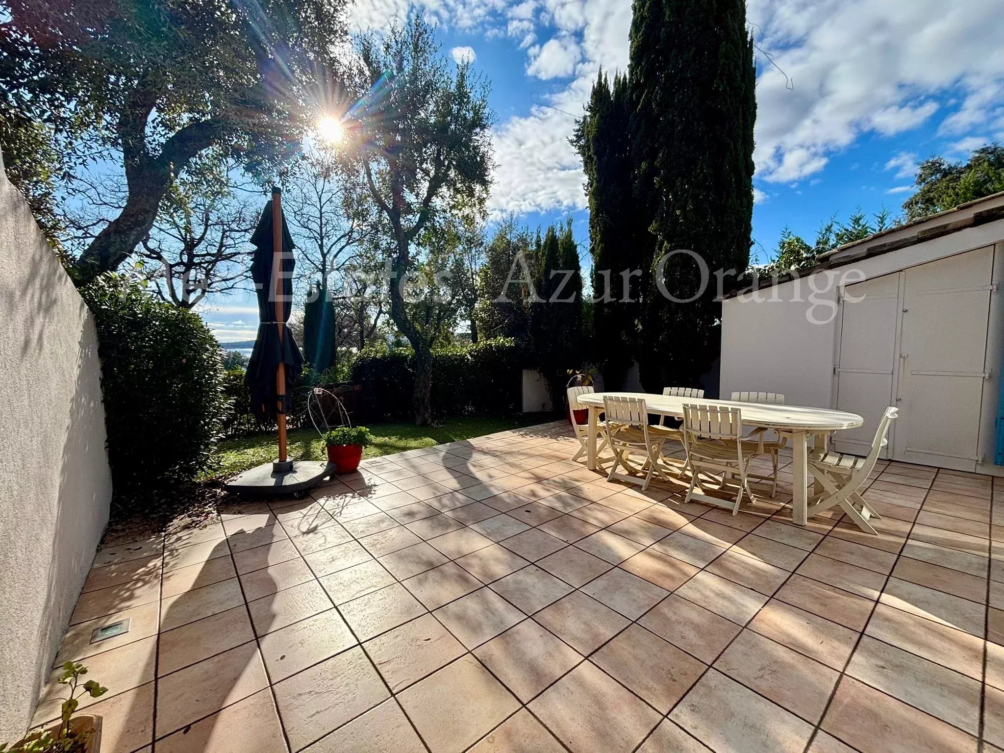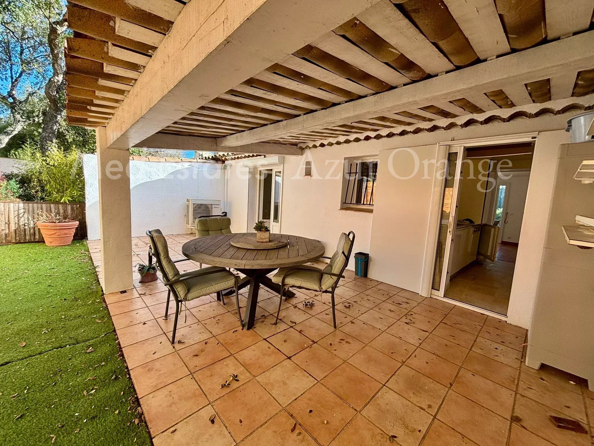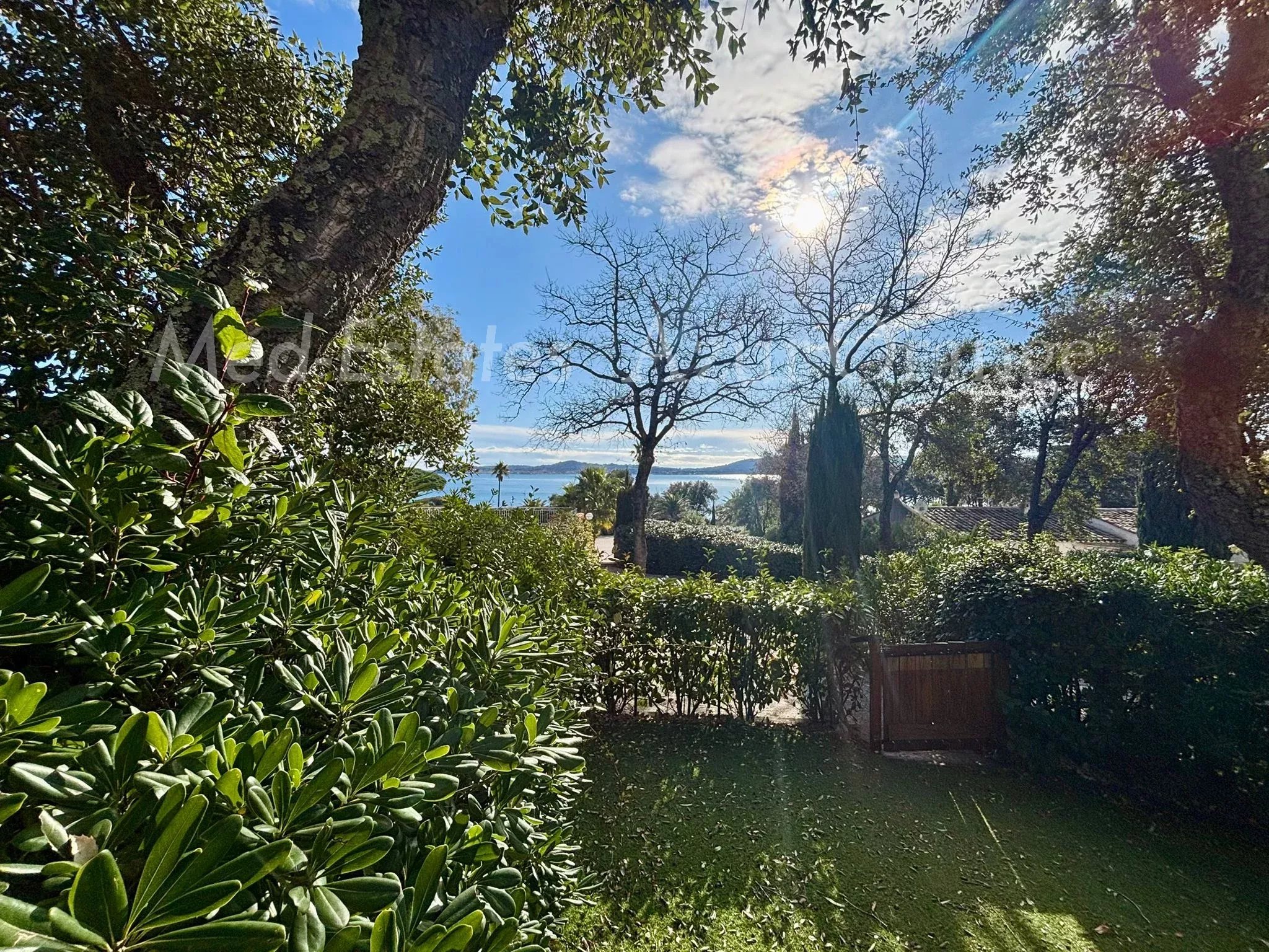 Située à Grimaud, au sein de la Résidence sécurisée de Beauvallon, cette maison mitoyenne d’environ 46 m² offre un cadre de vie privilégié, à quelques pas de la mer. La maison se compose d’un séjour, d’une cuisine, de deux chambres, d’une salle de bains et de WC indépendants. Elle bénéficie de deux espaces extérieurs distincts : – une terrasse à l’avant avec vue sur la mer, – une terrasse partiellement couverte à l’arrière, idéale pour profiter d’un espace plus intime. Un jardin d’agrément attenant de 175 m² complète l’ensemble, offrant un extérieur appréciable dans un environnement verdoyant. Le domaine est fermé et sécurisé et dispose d’une piscine commune. La plage est accessible à pied grâce à un accès privé, un atout rare et recherché dans le secteur. Un bien idéal pour un pied-à-terre sur le Golfe de Saint-Tropez, combinant vue mer, extérieur, piscine et accès direct à la plage, au sein d’un environnement résidentiel prisé.