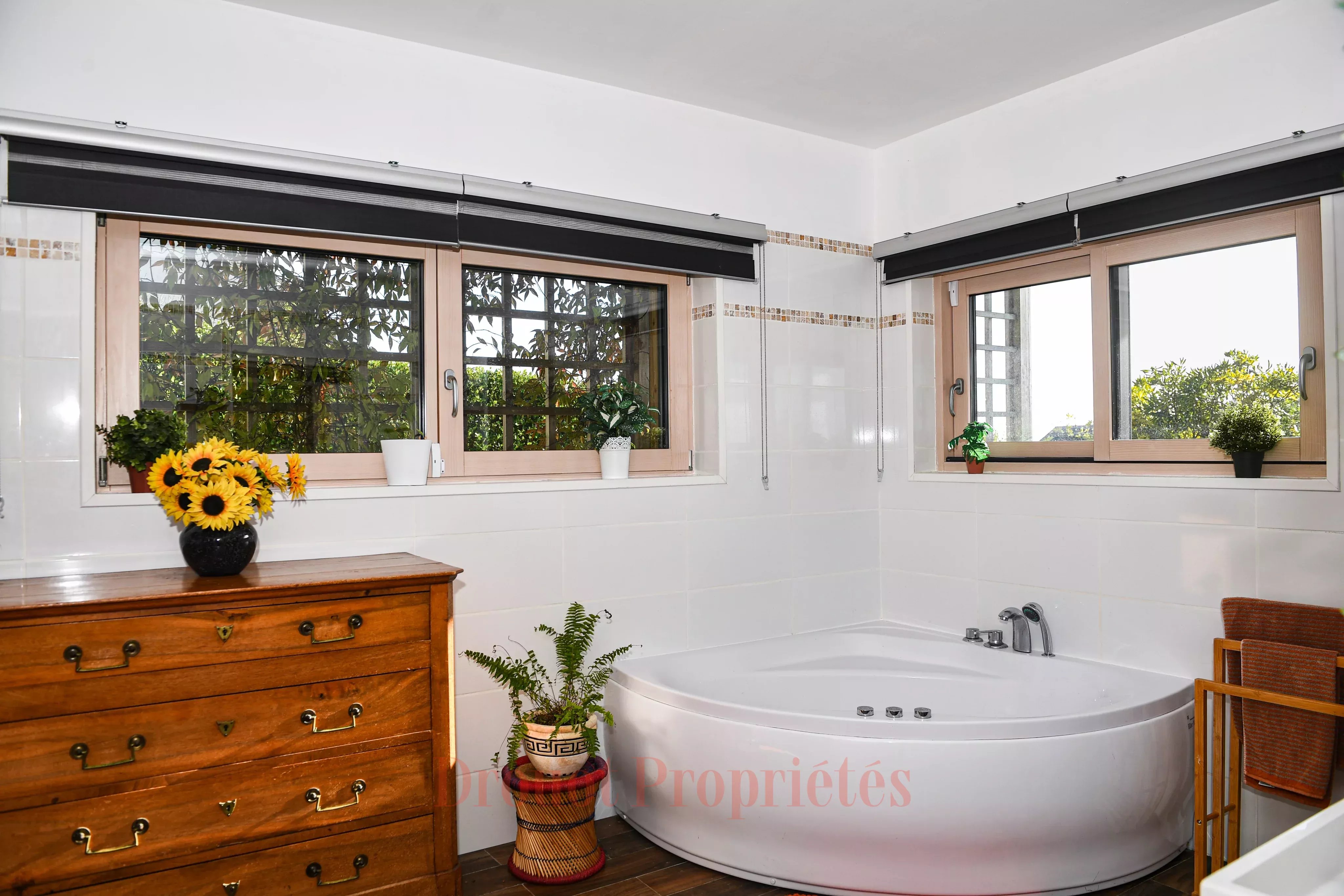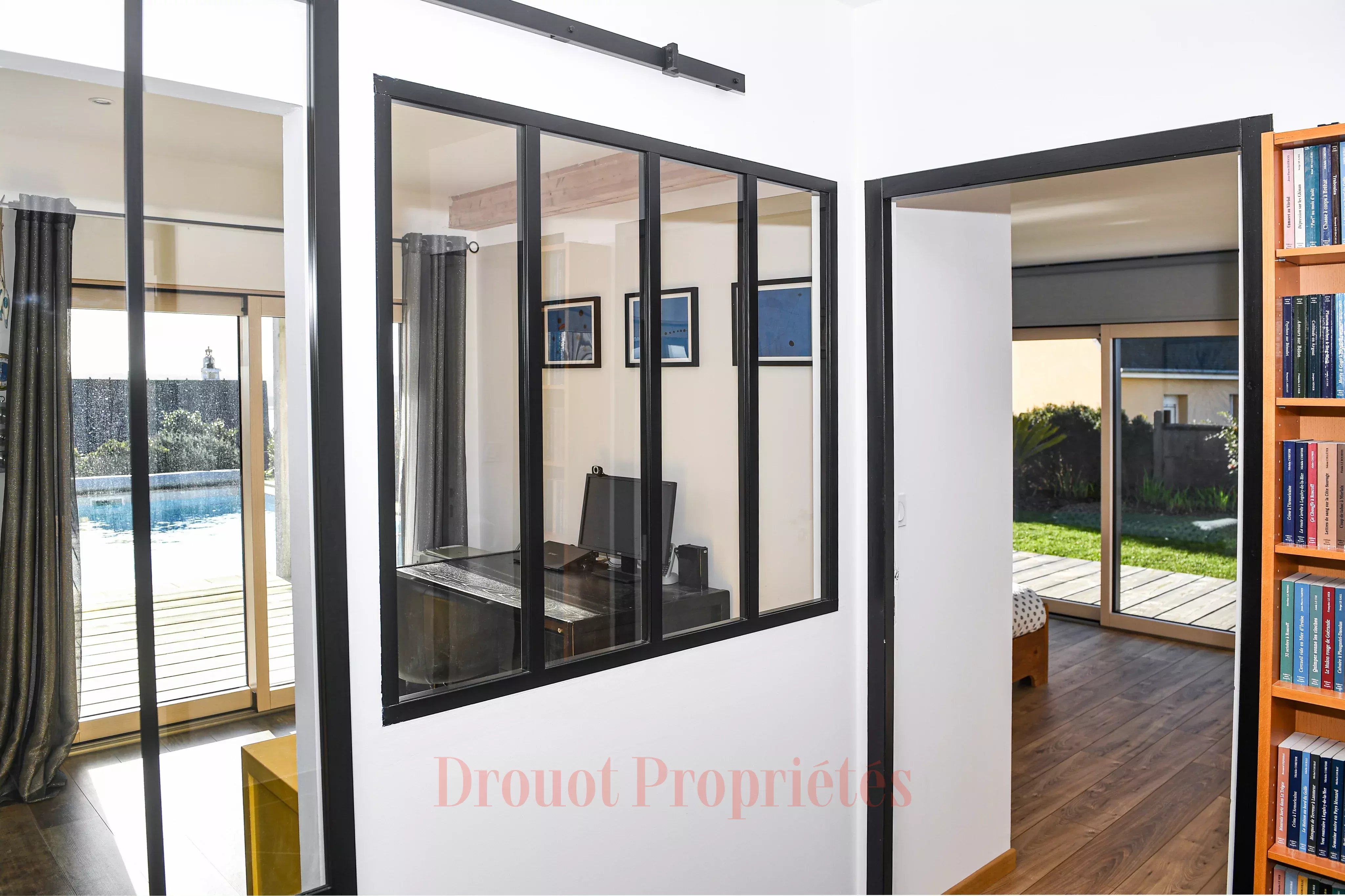 - Au rez-de-chaussée : Une entrée accessible de plain-pied par l’extérieur et par un escalier intérieur, dessert une suite parentale avec dressing et salle de bains avec douche, deux chambres, une salle de bains, un bureau, une buanderie, un local technique ainsi qu’un garage.