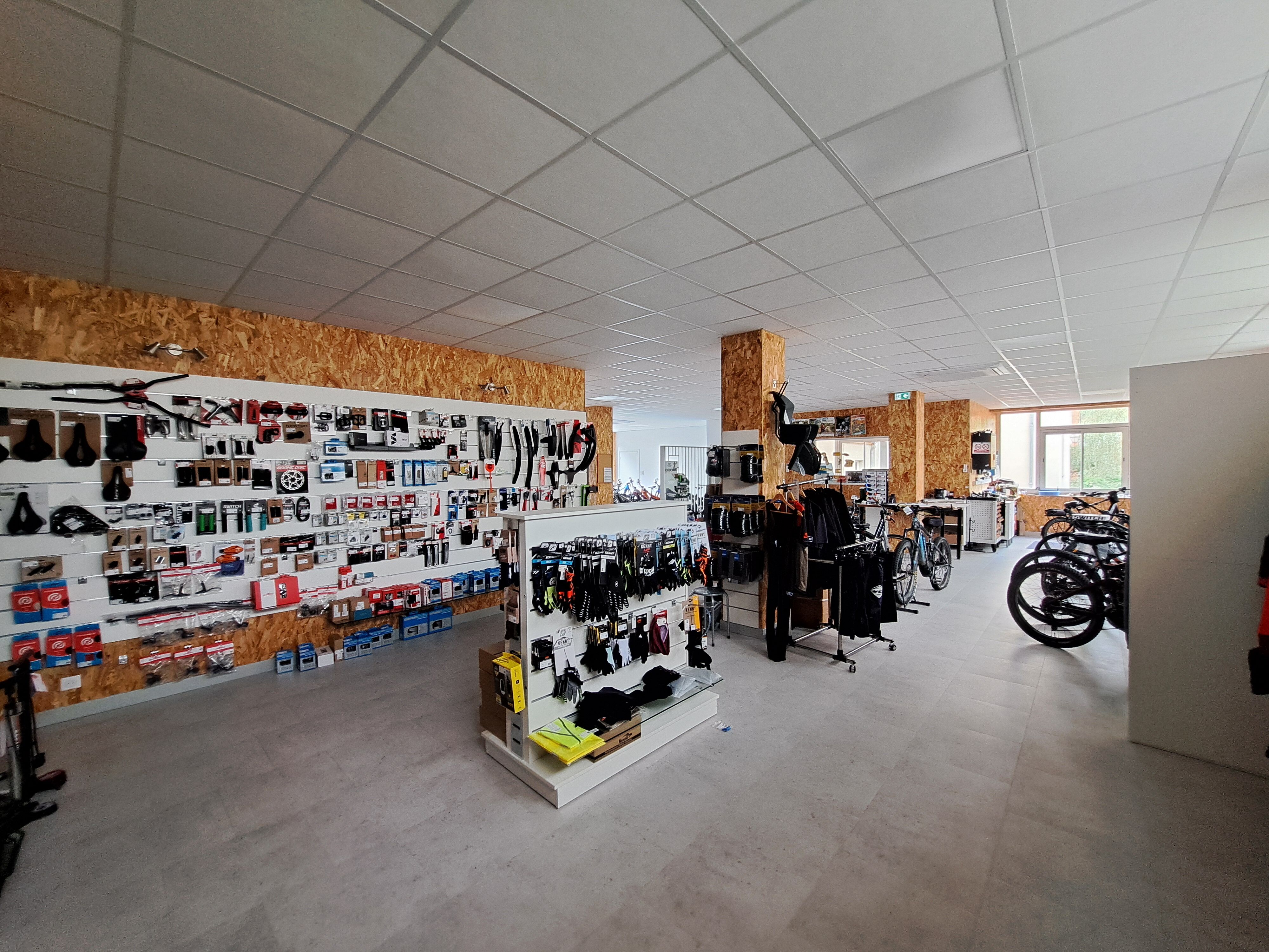 Au rez-de-chaussée, un spacieux local commercial / magasin d'environ 185 m² entièrement rénové en 2021 et équipé de deux plafonniers aérotherme récent. Ce local se compose d'une grande pièce principale, d'un bureau, d'une pièce de stockage et d'un petit garage pour véhicule 2 roues.
