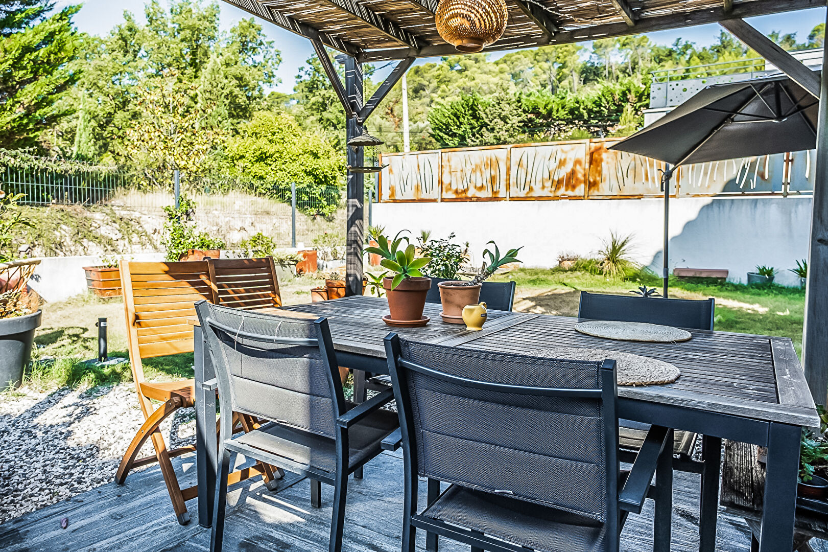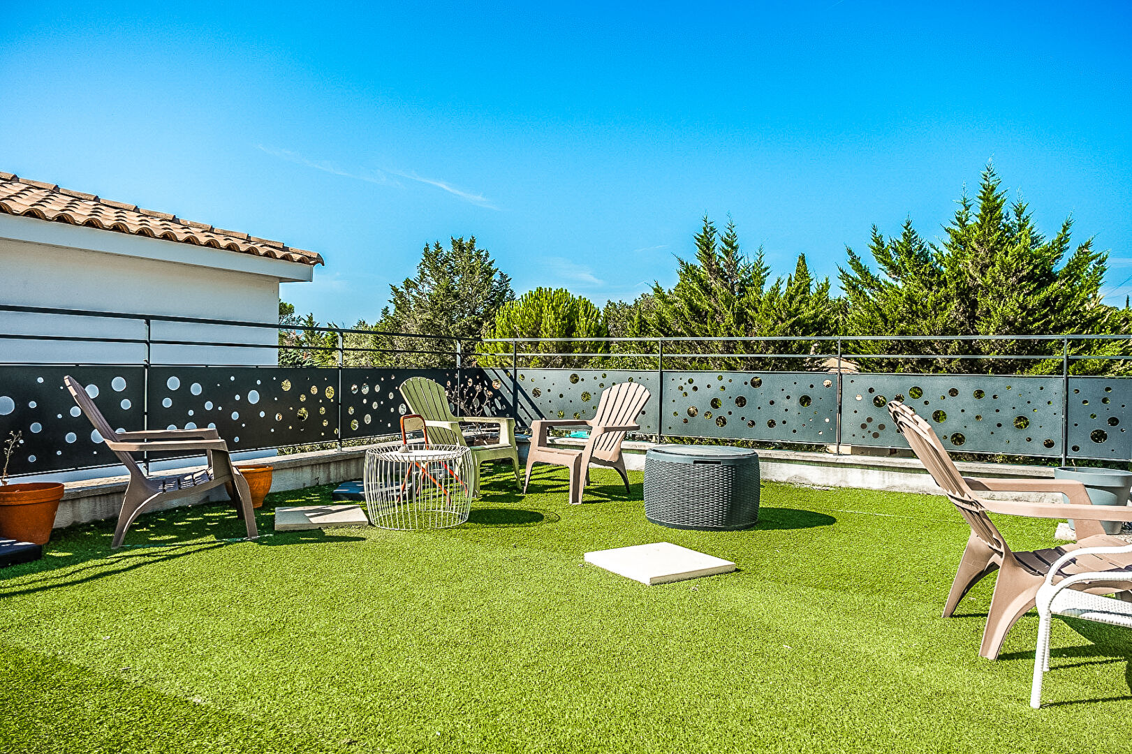 Située dans un lotissement verdoyant de 4 habitations mitoyennes, maison de 2015 en bon état et sans travaux. La maison se compose d'une belle pièce de vie d'environ 43 m² avec cuisine américaine équipée, une chambre avec placards, un grand dégagement avec coin machines, et une salle d'eau avec WC. A l'étage, deux chambres dont une avec placards par laquelle on accède au toit terrasse d'environ 40 m² , une salle d'eau avec WC. Joli jardin d'environ 120 m² avec terrasse et garage. Le bien est actuellement loué 1030 euros (fin du bail en Décembre 2027) Eric INZERILLO (EI) Agent Commercial - Numéro RSAC : 983656034 - Draguignan.
