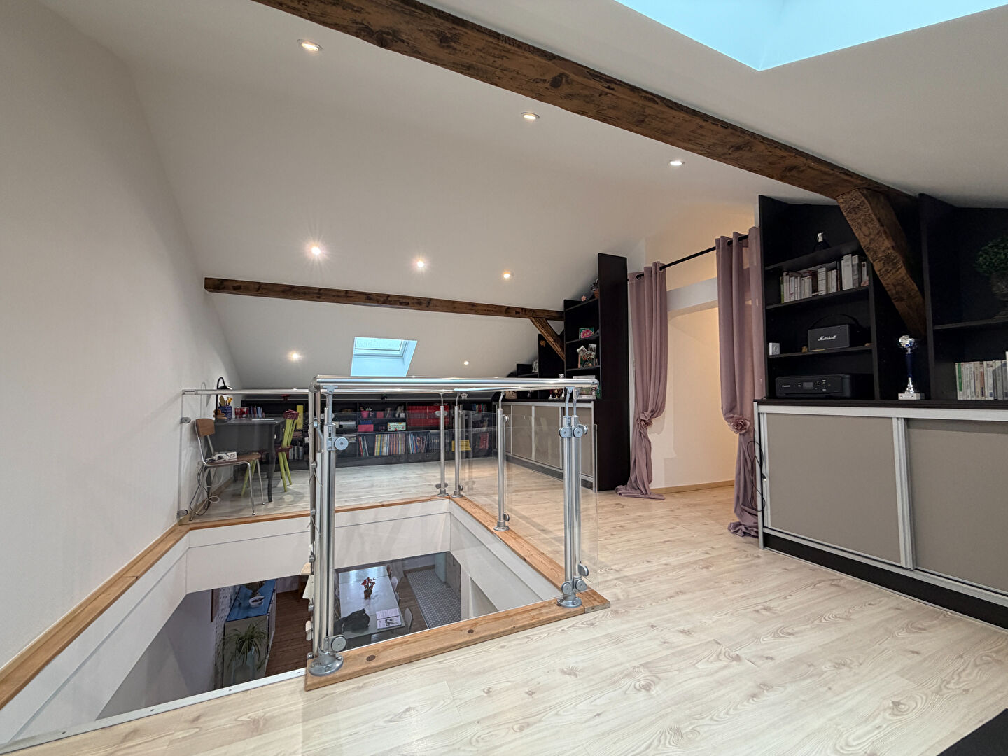 Situé au coeur de Thionville, dans un immeuble de style haussmannien bâti en 1907, face à la sous préfecture, à deux pas des bords de la Moselle et à seulement huit minutes à pied de la gare de Thionville via la nouvelle passerelle, cet appartement offre un cadre de vie rare et recherché. Implanté au quatrième et dernier étage, sans aucun voisin au dessus, ce logement de type F4 en duplex développe une surface habitable de 96,19 m² et séduit par son caractère très atypique et ses volumes généreux L'entrée s'ouvre sur un espace de vie chaleureux avec sur la gauche un salon cosy de 26,33 m² et sur la droite une cuisine ouverte avec coin repas de 23 m² entièrement équipée, installée en 2019, un WC séparé complète ce premier niveau A l'étage supérieur, l'escalier mène à une mezzanine ouverte de 28 m² offrant de multiples possibilités d'aménagement, salon privé, espace bureau, coin détente ou salle de jeux, un couloir dessert ensuite l'espace nuit comprenant un dressing de 12 m², deux chambres à coucher ainsi qu'une salle de bain familiale équipée d'une baignoire d'angle, d'une douche et d'un meuble vasque En annexe, le logement dispose d'une cave privative A noter que la toiture de l'immeuble a été entièrement refaite en 2025 avec l'installation de nouveaux Velux équipés de volets solaires dans tout l'espace nuit La copropriété est gérée par un syndic professionnel, sans procédure en cours, les charges trimestrielles s'élèvent à 220 euros et comprennent le nettoyage des communs, l'électricité des parties communes, l'assurance de l'immeuble, l'eau froide ainsi que les honoraires du syndic. Appartement coup de coeur, lumineux, sans vis à vis direct et offrant un cachet unique, idéal pour les amateurs de biens de caractère en centre ville de Thionville avec toutes les commodités nécessaires. Les informations sur les risques auxquels ce bien est exposé sont disponibles sur le site www.georisques.gouv.fr Copropriété de 5 lots - dont 4 lots habitation. (Pas de procédure en cours). Charges annuelles : 880 euros.