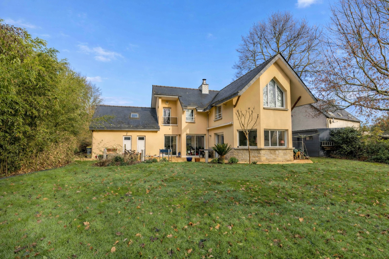 A VENDRE - NOUVEAUTÉ CABINET BARTH IMMOBILIER CHARTRES DE BRETAGNE-MAISON +TERRAIN DE 1300 M2 - Retrouvez nos biens en vidéo sur Instagram : barth_immobilier A proximité de toutes les commodités de Chartres-de-Bretagne, tout en bénéficiant d'un environnement exceptionnellement calme et verdoyant, venez découvrir cette superbe maison d'architecte construite en 1994 et rénovée en 2015, nichée au coeur d'un terrain arboré de 1300 m² sans aucun vis-à-vis. D'une surface habitable de 195 m² (217 m2 au sol), cette maison aux volumes généreux et à la conception intelligente offre un cadre de vie idéal pour une famille en quête d'espace, de confort et de nature. Celle-ci comprend: * Au rez-de-chaussée une très grande pièce de vie salon / séjour d'environ 60 m², lumineuse et conviviale, une arrière cuisine et cuisine indépendante, une chambre avec sa salle d'eau et des WC séparés. * A l'étage , une grande mezzanine ouverte, d'environ 36 m2 offrant une belle hauteur sous plafond et une vue plongeante sur le séjour, trois chambres, une autre chambre d'appoint sous combles avec salle d'eau attenante, une lingerie, une seconde salle d'eau et un WC indépendant. * Coté Extérieurs et annexes, vous apprécierez votre terrain arboré et sans vis à vis exposé SUD-OUEST de 1300 m², votre grand garage ainsi que votre atelier vous offrant de multiples possibilités selon vos projets et envies. Enfin ,dernier atout majeur, un permis de construire est déjà déposé et autorisé pour la construction d'une piscine de 9x 4 m. Les + du bien : * Maison d'architecte au cachet unique. * Environnement calme et verdoyant sans vis à vis. * Maison non mitoyenne. * Toiture en ardoises naturelles, chaudière 2015. * Proximité immédiate des commerces, écoles et transports au sein d'une commune prisée et dynamique. * Fort potentiel d'aménagement et de valorisation avec la construction d'une piscine. Un bien rare sur le secteur, alliant nature, volumes et proximité urbaine, à découvrir sans tarder. Référence : 2278FD (4.00 % honoraires TTC à la charge de l'acquéreur.) Franck DAHYOT (EI) Agent Commercial - Numéro RSAC : 978041069 - Rennes.
