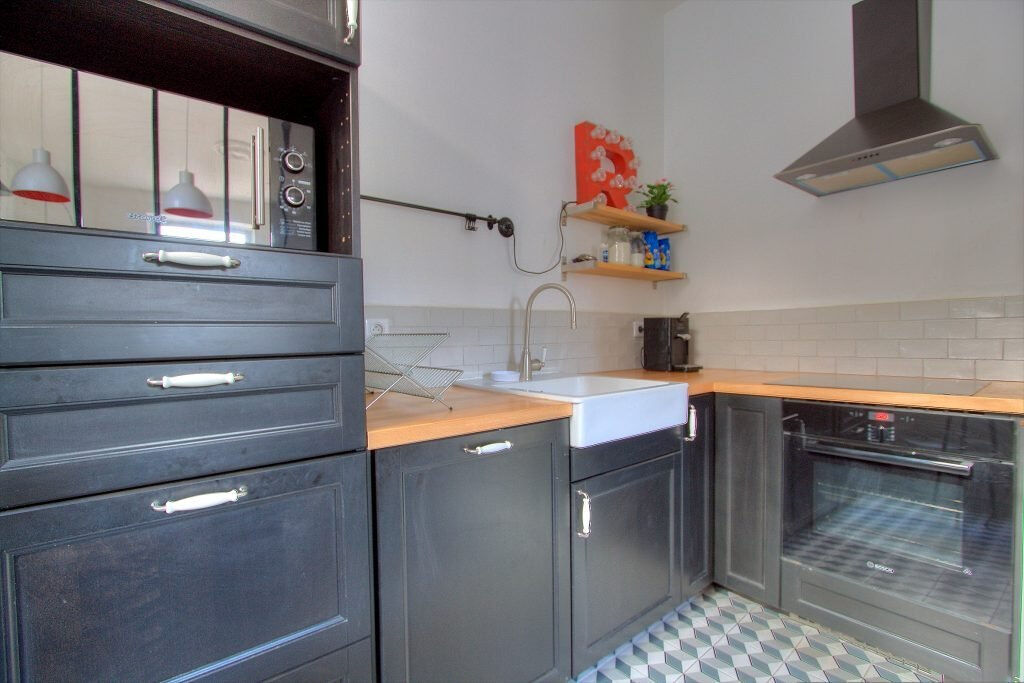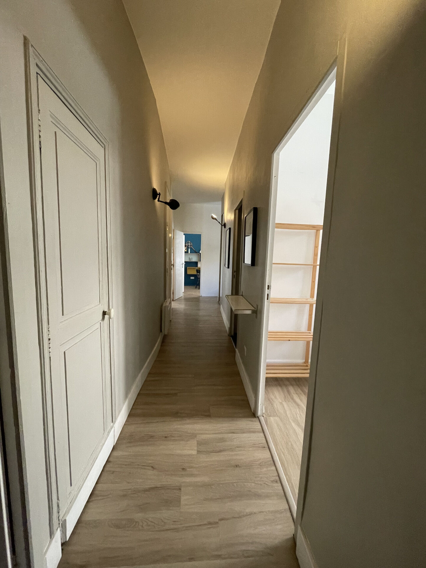 RARE - Polygone / Comédie, T5 meublé de 85 m² entièrement rénové et décoré avec goût. Il se compose d'une cuisine totalement équipée (lave vaisselle, four, micro-ondes, plaques de cuisson, hotte, réfrigérateur, lave linge, meubles. ) ; d'un balcon de ville, de 3 chambres avec bureau et dressing, d'un séjour, un salon / bureau commun et d'une salle d'eau avec wc séparés. Possibilité de colocation. Proximité immédiate commerces, écoles, transports et animations.