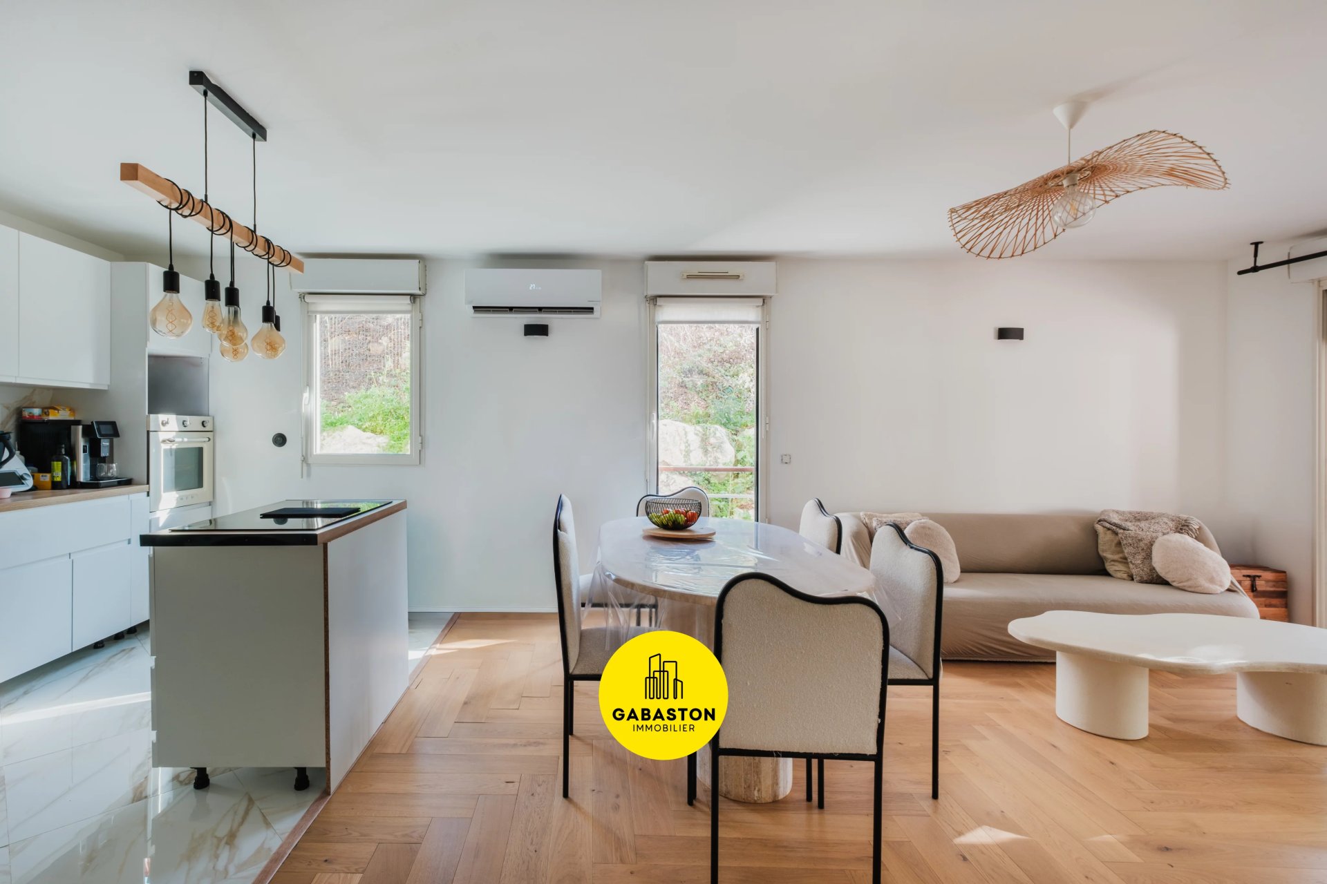 Dès l'entrée une belle pièce de vie baignée de lumière, chaleureuse et conviviale, où il fait bon de se retrouver vous accueil. La cuisine ouverte, entièrement équipée, se distingue par sa modernité et sous prolongement avec le séjour.