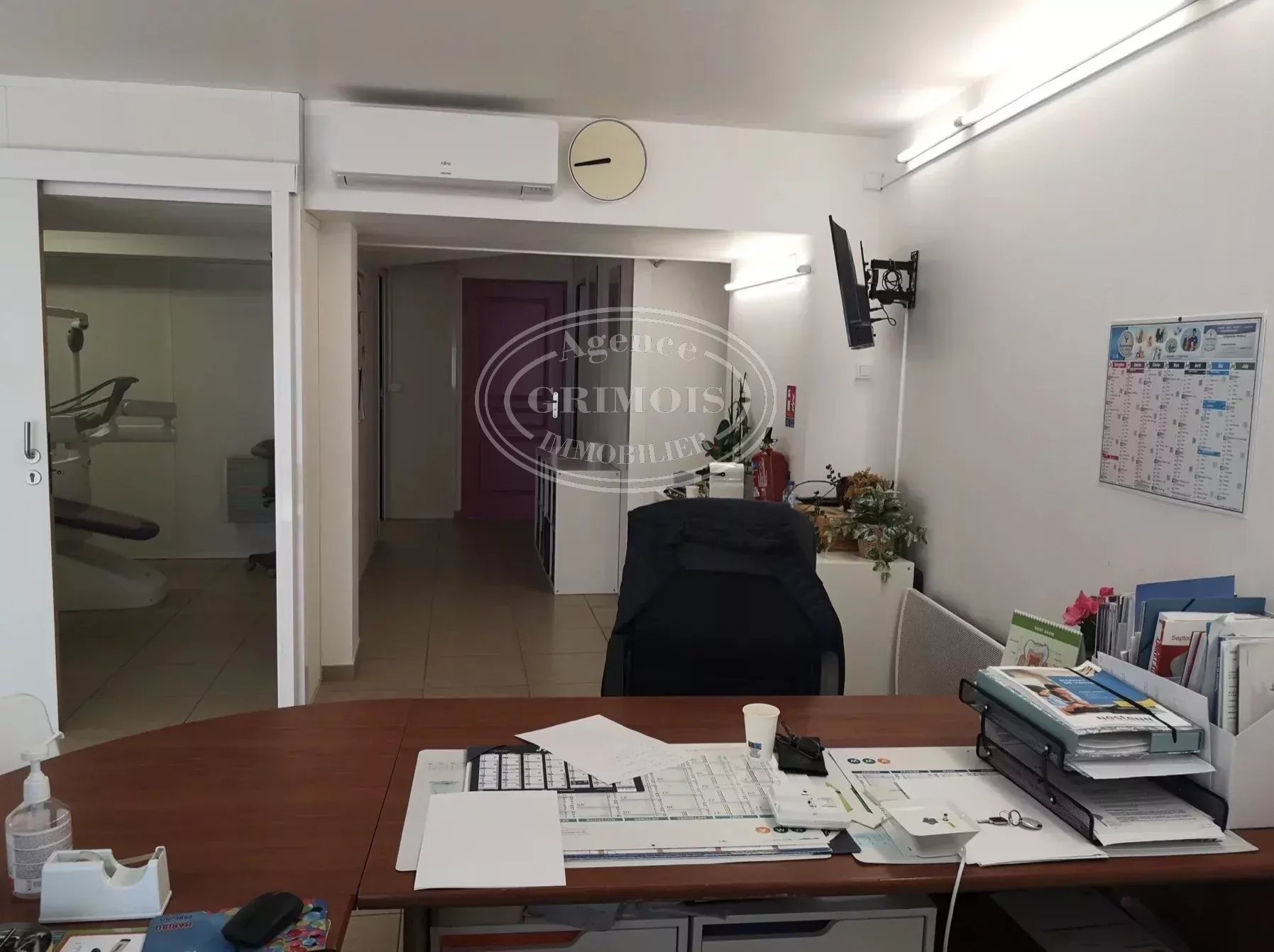 Composé de : - Grande salle d'accueil avec bureaux, très lumineuse - Deux pièces qui étaient destinées à recevoir les clients pour les soins sur les fauteuils dentaire encore sur place - WC indépendant de grande surface qui peut être modifié en salle d'eau facilement - Local de rangement de 15 m² environ en sous-sol avec ascenseur ATOUTS : Très lumineux avec grande baies vitrées / Proche des commodités du centre -ville / Situé sur l'axe principal avec très bonne visibilité / rampe handicapé / Résidence sécurisée avec portail automatisé / climatisation Consommation conventionnelle: 144 kWh ep/m2.an (Classe C) Estimation des émissions : 2 kg eqCO2/m2.an (Classe A) prix moyens des énergies indexés au 1er janvier 2021. CONTACT : AMÉLIE : 06.26.74.55.56 ou FABIEN : 06.13.13.61.75 La présente annonce immobilière a été rédigée sous la responsabilité de Virginie LAGNEAU , agent commercial en immobilier au sein de l'agence GRIMOIS IMMOBILIER en EI, immatriculé au Registre Spécial des Agents Commerciaux du Tribunal de Commerce de Narbonne , sous le n° 853 379 626 . Les honoraires sont à la charge du vendeur .
