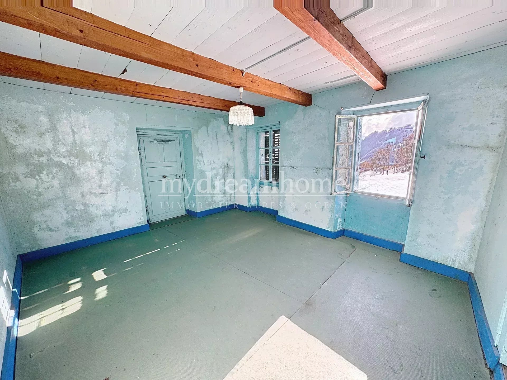 Ferme authentique de 1869 à rénover – 250 m² – Saint-Nicolas-la-Chapelle (73590) Située dans un environnement naturel préservé, cette ferme savoyarde datant de 1869 offre un fort potentiel de rénovation pour les amateurs d’authenticité et de grands espaces. D’une surface d’environ 250 m², le bâtiment se compose actuellement d’une ancienne partie habitation en rez-de-jardin et d’une grange de 135 m² à l’étage, l’ensemble nécessitant une rénovation complète. Composition du bien : Rez-de-chaussée (ancien logement) : une entrée, un cellier, une grande cuisine, trois pièces/chambres, ainsi qu’une écurie. Niveau inférieur : une cave. Étage : une vaste grange offrant de nombreuses possibilités d’aménagement. Annexes : Quatre annexes viennent compléter l’ensemble : Deux mazots traditionnels sur deux niveaux, Un four à pain, Une grange, située à proximité immédiate de la route. Caractéristiques techniques : Accès possible toute l’année, Charpente en bon état, Toiture en tôle, Raccordement au réseau électrique, Raccordement à l’eau communale, Présence d’une source sur le terrain, Assainissement individuel à créer. Terrain : 2,7 hectares attenants autour de la ferme, 0,9 hectare non attenant. Un bien rare offrant un cadre de vie exceptionnel, idéal pour un projet de résidence principale, secondaire ou touristique, dans un secteur recherché du Val d’Arly. Agent commercial My Dream Home immatriculé au RSAC d'Annecy sous le n°512723842 Laurence Drevon 06.23.45.01.59.