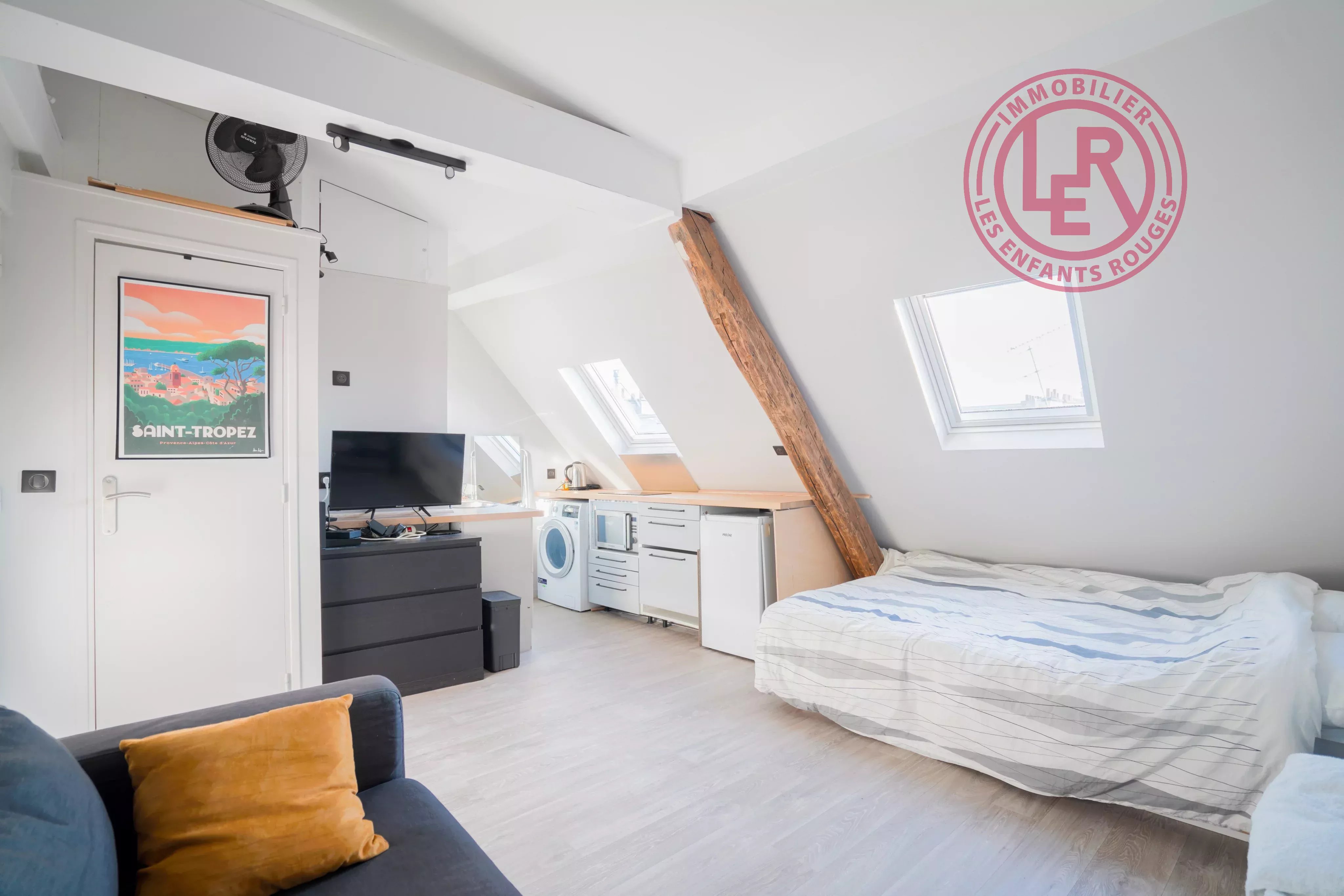 Rue Richer, dans le 9ᵉ arrondissement, entre la station Cadet et Grands Boulevards ce studio se situe au 6ᵉ étage d’un immeuble de 1830 (ascenseur jusqu’au 5ᵉ). Le quartier est vivant, avec commerces, cafés et transports à proximité, tout en restant très calme au quotidien. 24 m² au sol (17 m² Carrez) et a été rénové récemment. La hauteur sous plafond de 2,60 m apporte une vraie sensation d’espace, rare pour un dernier étage ! Exposé plein sud, il est baigné de lumière toute la journée, avec vue dégagée sur les toits parisiens et aucun vis-à-vis. L’espace a été intelligemment optimisé, offrant un agencement à la fois pratique et fonctionnel. Aucun travaux n’est à prévoir : le bien est prêt à être occupé ou mis en location immédiatement. Les toilettes sont équipées d’un sanibroyeur. DPE D ! Un bien idéal pour un premier achat, un pied-à-terre à Paris, ou un investissement locatif offrant charme et luminosité. Disponible en juin. Les informations sur les risques auxquels ce bien est exposé sont disponibles sur le site Géorisques : www.georisques.gouv.fr