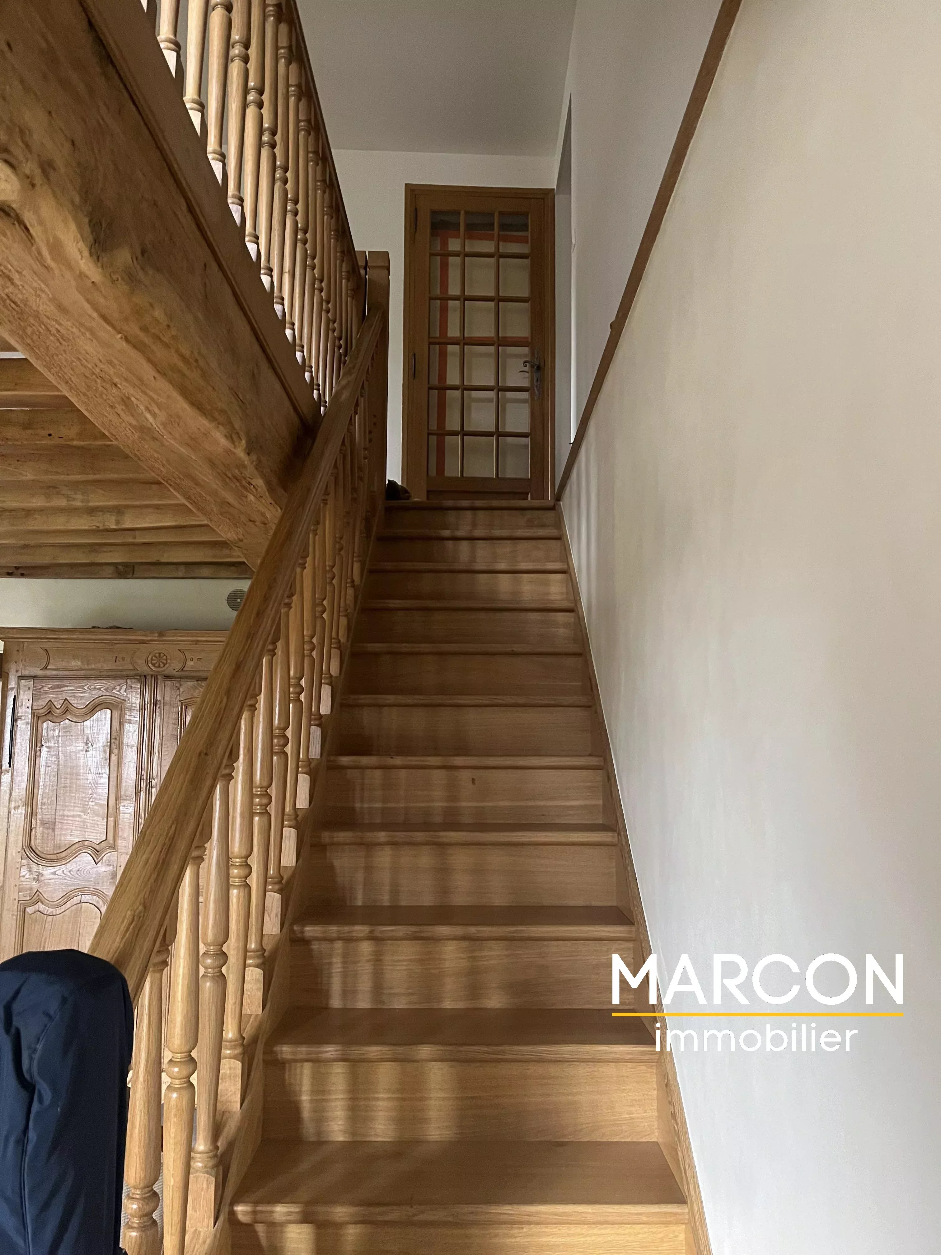 MARCON Immobilier vous propose une maison de 144 m² située dans un hameau calme comprenant en rez-de-chaussée : entrée, cuisine équipée - salle à manger, salon, salle d'eau, wc.