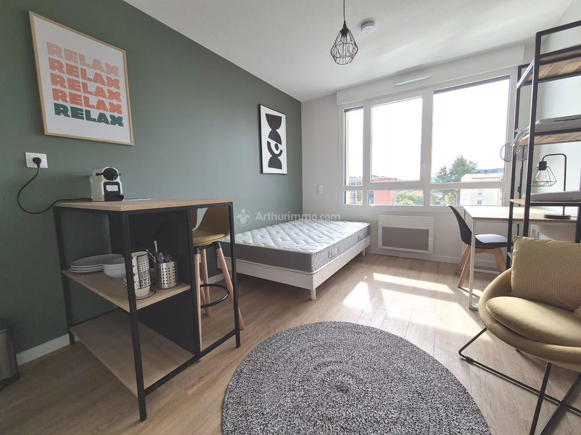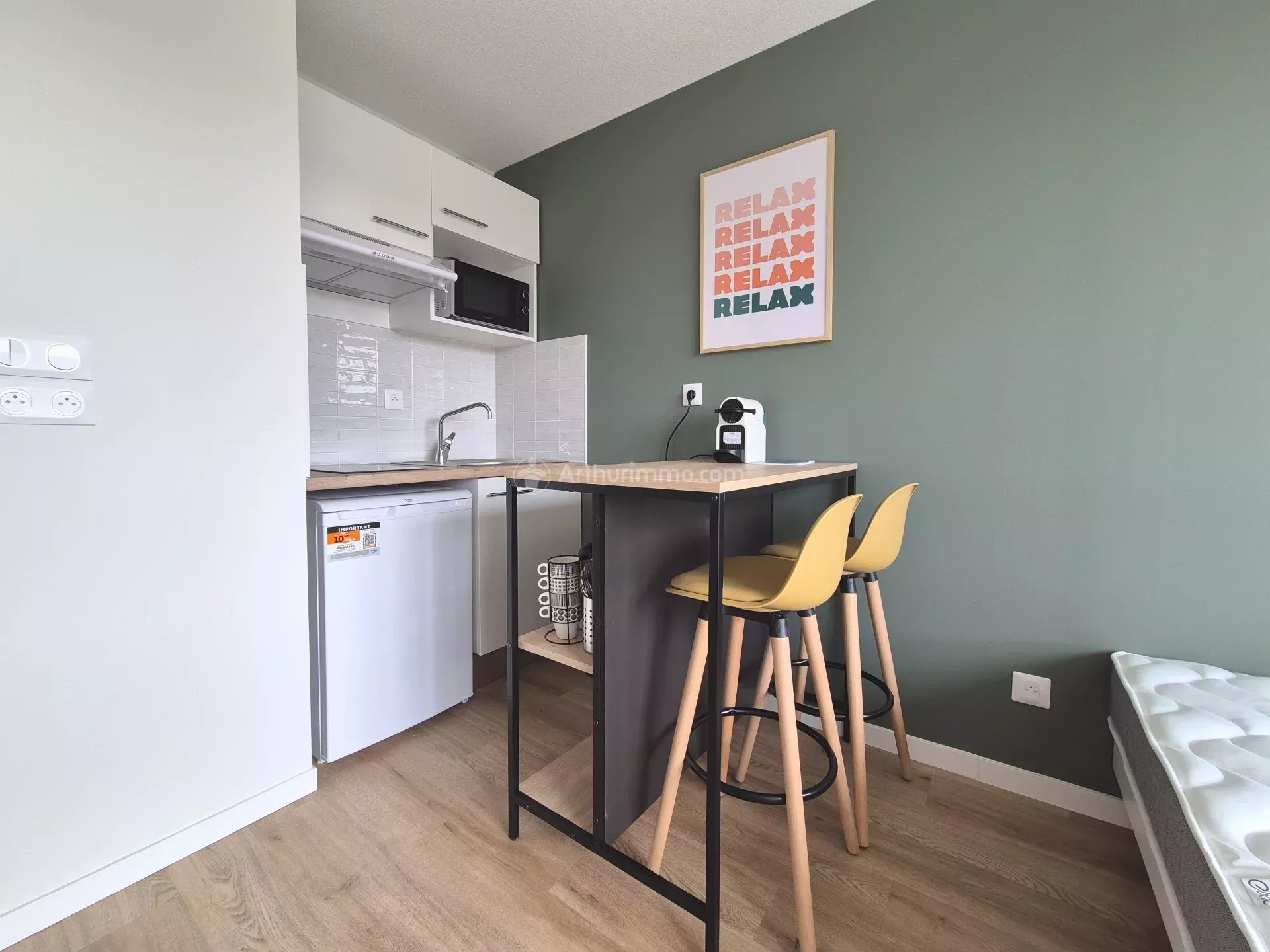 Secteur faculté, Studio meublé d'environ 20m² situé au quatrième étage d'une résidence neuve et sécurisée. Il se compose d'une entrée avec placard intégré, une pièce de vie avec cuisine ouverte et équipée (hotte, plaque vitrocéramique, frigo-top, micro-ondes, cafetière) et d'une salle d'eau avec toilette. Menuiseries double vitrage, chauffage individuel électrique. La résidence dispose d'un espace co-working et d'un espace laverie communs. Les charges comprennent l'eau, l'entretien et l'électricité des parties communes. Disponible.