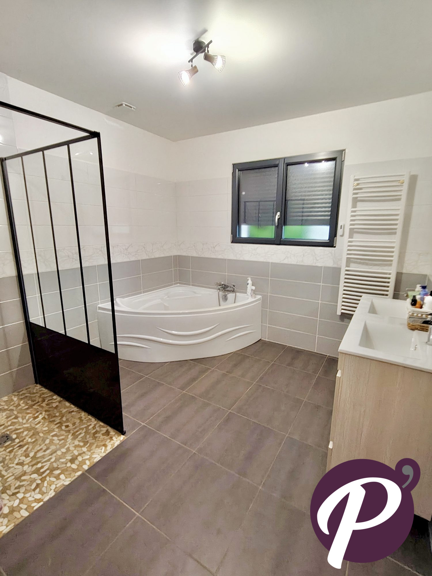 Découvrez cette superbe maison contemporaine de 166 m², construite en 2015 et en excellent état, nichée dans un cadre verdoyant. Son architecture moderne et ses finitions haut de gamme vous offriront un cadre de vie exceptionnel. Au coeur de cette demeure, un vaste séjour de 51 m² baigné de lumière naturelle vous accueille. Imaginez-vous profiter de moments inoubliables dans ce lieu spacieux et chaleureux. La cuisine américaine, aménagée et équipée, est un véritable atout pour les amateurs de cuisine et de convivialité. Cette maison plain-pied comprend 5 chambres, une salle de bains et une salle d'eau, ainsi qu'un WC indépendant. Les ouvertures en aluminium et les portes à double vitrage garantissent confort et isolation. Le jardin de 1200 m² est un véritable havre de paix, idéal pour les familles et les amateurs de nature. De plus, le terrain est piscinable, offrant un potentiel supplémentaire pour vos projets futurs. À proximité, vous trouverez plusieurs commodités : une crèche, une maternelle, une école élémentaire, des collèges, des magasins d'alimentation générale, des restaurants, et un médecin généraliste à seulement 5 minutes en voiture. Les bus sont également accessibles en 10 minutes en voiture. La maison est éligible à l'internet haut débit. Ne manquez pas cette opportunité unique de vivre dans une maison de standing, alliant modernité et confort. Contactez-nous dès maintenant pour une visite, n'hésitez pas à visiter notre site internet www.pourprimmo.com