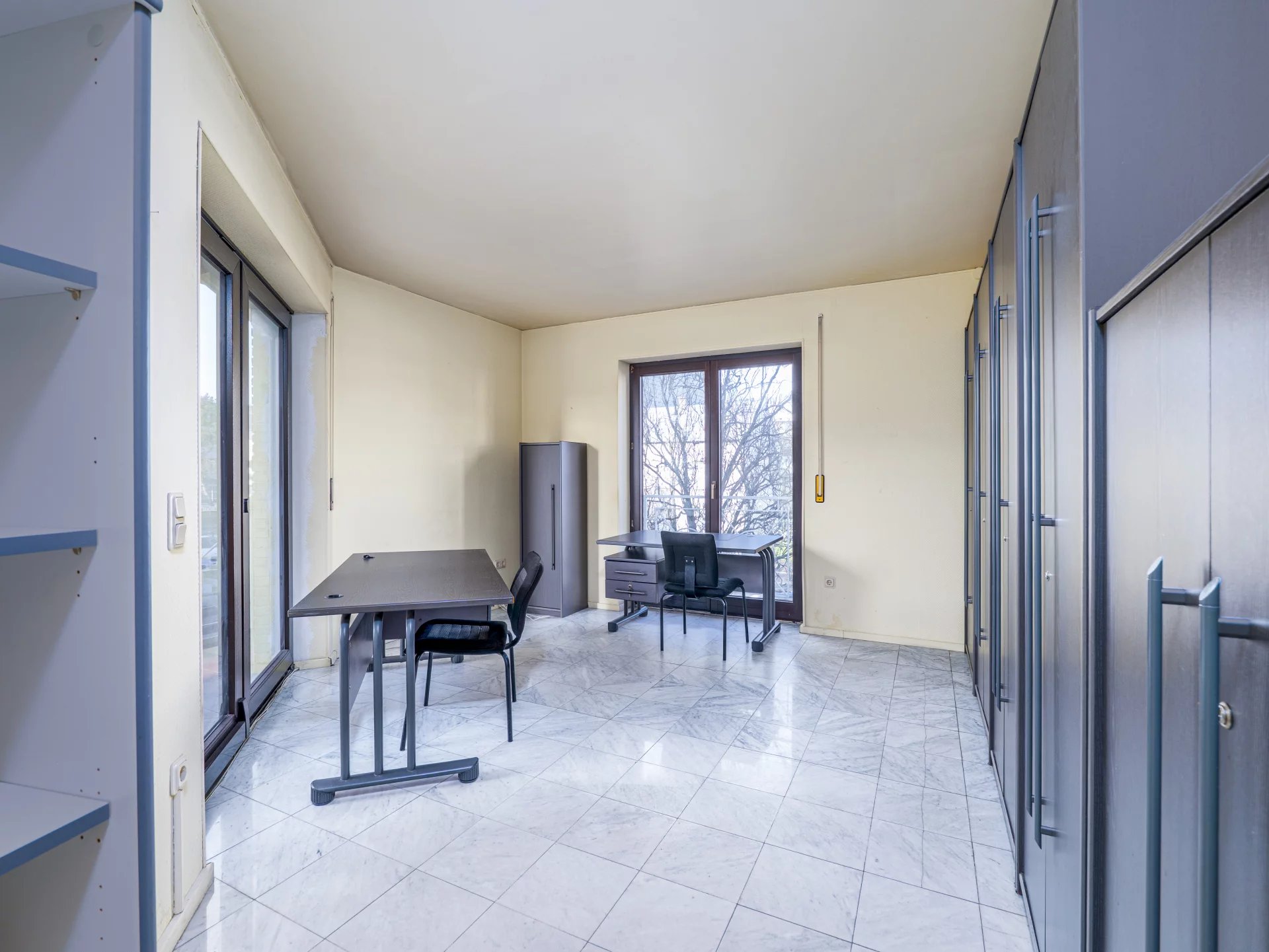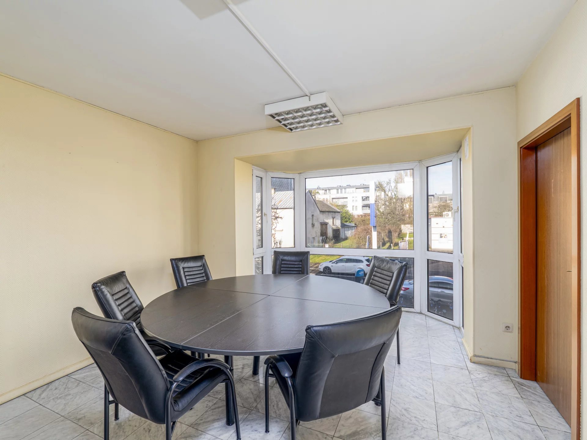 Situé dans l’un des quartiers les plus recherchés de Luxembourg-Ville, à Merl, cet actif professionnel constitue une opportunité rare pour une société ou un investisseur souhaitant acquérir un bien stratégiquement situé, fonctionnel et à forte valeur patrimoniale. Le bien développe une surface cadastrale de 166,03 m² et occupe le 1er étage d’un immeuble bien tenu de 3 unités. Il se distingue par une configuration particulièrement efficiente, actuellement organisée en 8 bureaux distincts, permettant une grande souplesse d’aménagement. Par sa configuration, sa distribution et son accessibilité, le plateau se prête parfaitement à de nombreuses activités, notamment : • cabinet médical ou paramédical, • cabinet dentaire, • profession libérale (avocat, fiduciaire, architecte, etc.), • société de services, • siège administratif ou opérationnel, • ou toute activité tertiaire nécessitant des espaces structurés et modulables. La distribution est claire et fonctionnelle, offrant une organisation logique des espaces de travail, de réunion et d’accueil, avec une circulation fluide et professionnelle. Le plateau dispose également, d’une cuisine séparée, de deux sanitaires indépendants, et d’un balcon, apportant un confort d’usage appréciable au quotidien. Les larges ouvertures assurent une excellente luminosité naturelle, complétée par du double vitrage garantissant un bon confort thermique et acoustique. L’immeuble est équipé d’un ascenseur et le bien bénéficie de deux emplacements de parking privatifs extérieurs, un atout rare et déterminant dans ce secteur de Luxembourg. La disponibilité est immédiate, permettant une prise de possession rapide sans contrainte opérationnelle. La classe de performance énergétique E et la classe d’isolation thermique D sont cohérentes avec un immeuble tertiaire de cette génération. Le bien est détenu par une société et la transaction est structurée sous forme de Share deal, ce qui permet à l’acquéreur de réaliser une économie substantielle sur les droits d’enregistrement (7 %) par rapport à une acquisition classique. Ce montage est particulièrement pertinent dans une logique d’optimisation financière et patrimoniale. Ce bien s’adresse aussi bien : • à un utilisateur souhaitant devenir propriétaire de ses murs, • qu’à un investisseur à la recherche d’un actif professionnel bien situé, liquide et pérenne. Il s’agit d’un actif discret, non diffusé, positionné sur une logique de qualité d’emplacement, de rareté et de vision long terme.