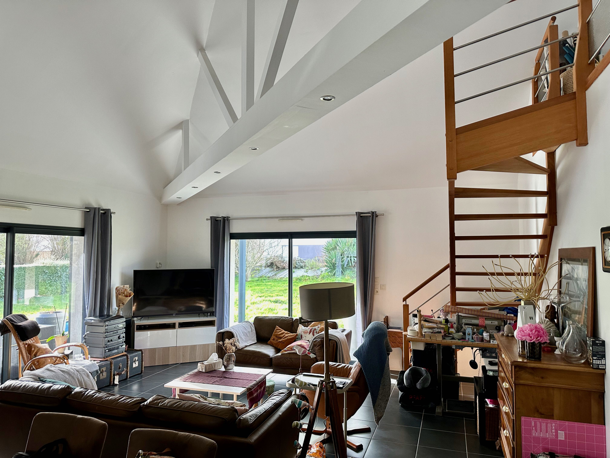 maison récente offrant 3 chambres de plain-pied et une mezzanine au-dessus de la pièce de vie (pièce de vie d'environ 60m2)