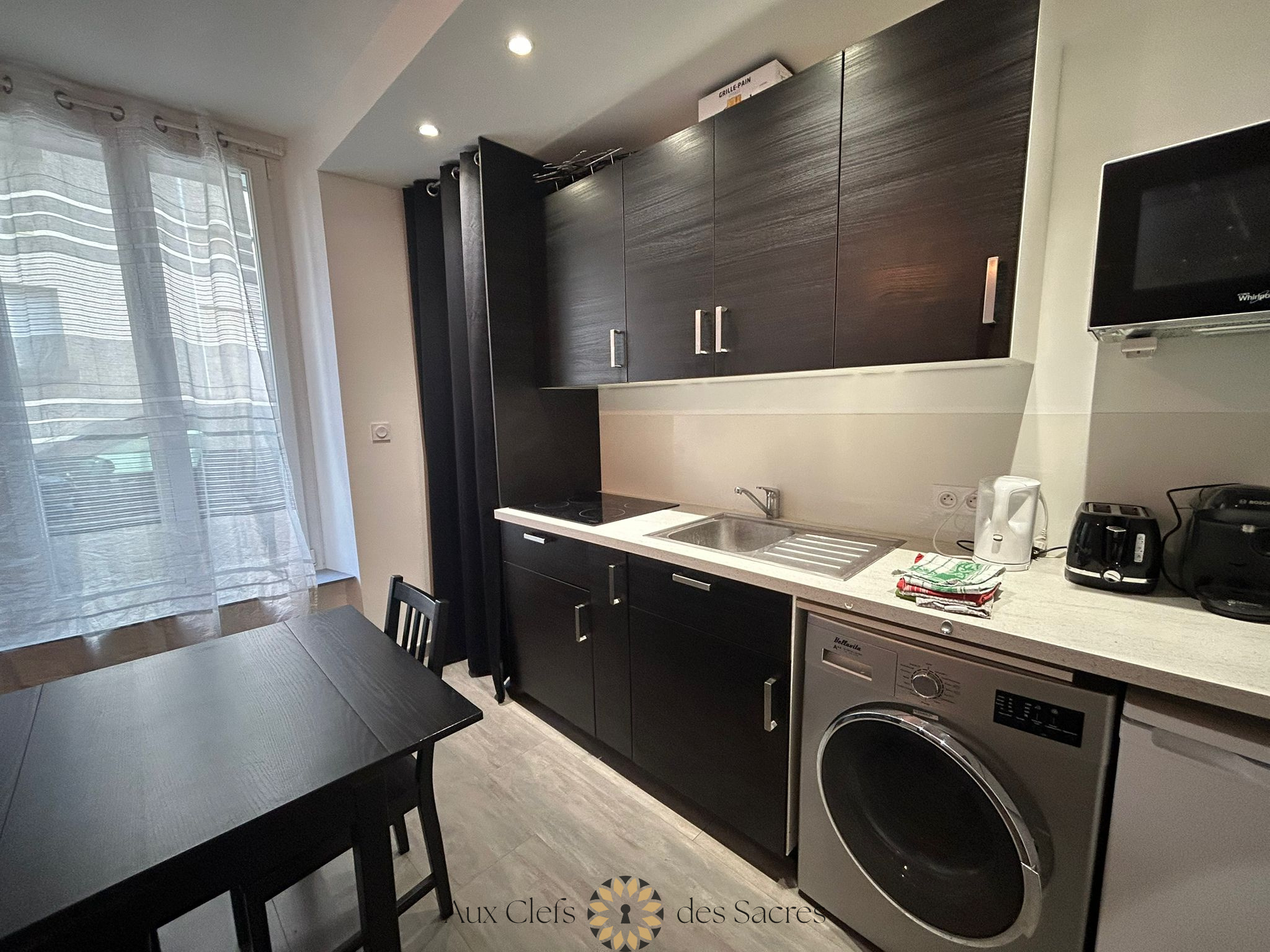 L'appartement se compose d'une pièce de vie lumineuse, agréablement aménagée, intégrant un espace nuit et un coin salon. La cuisine équipée permet une installation immédiate et un usage quotidien pratique. Vous bénéficierez également d'une salle d'eau indépendante ainsi que de WC séparés, un véritable atout pour le confort au quotidien.