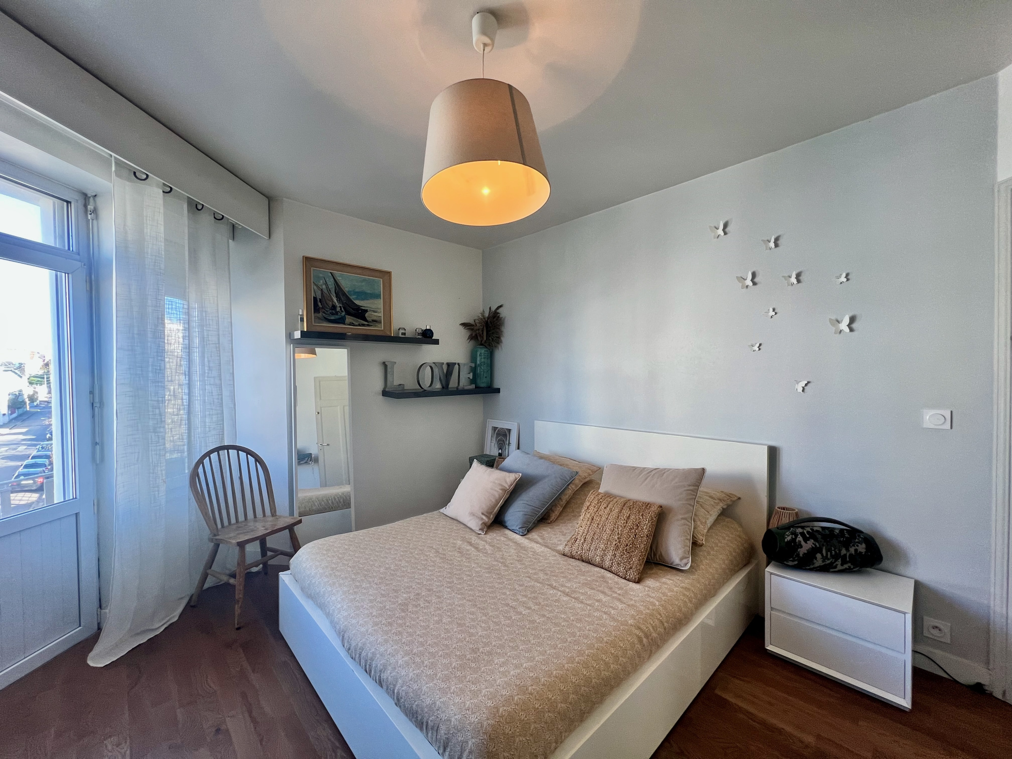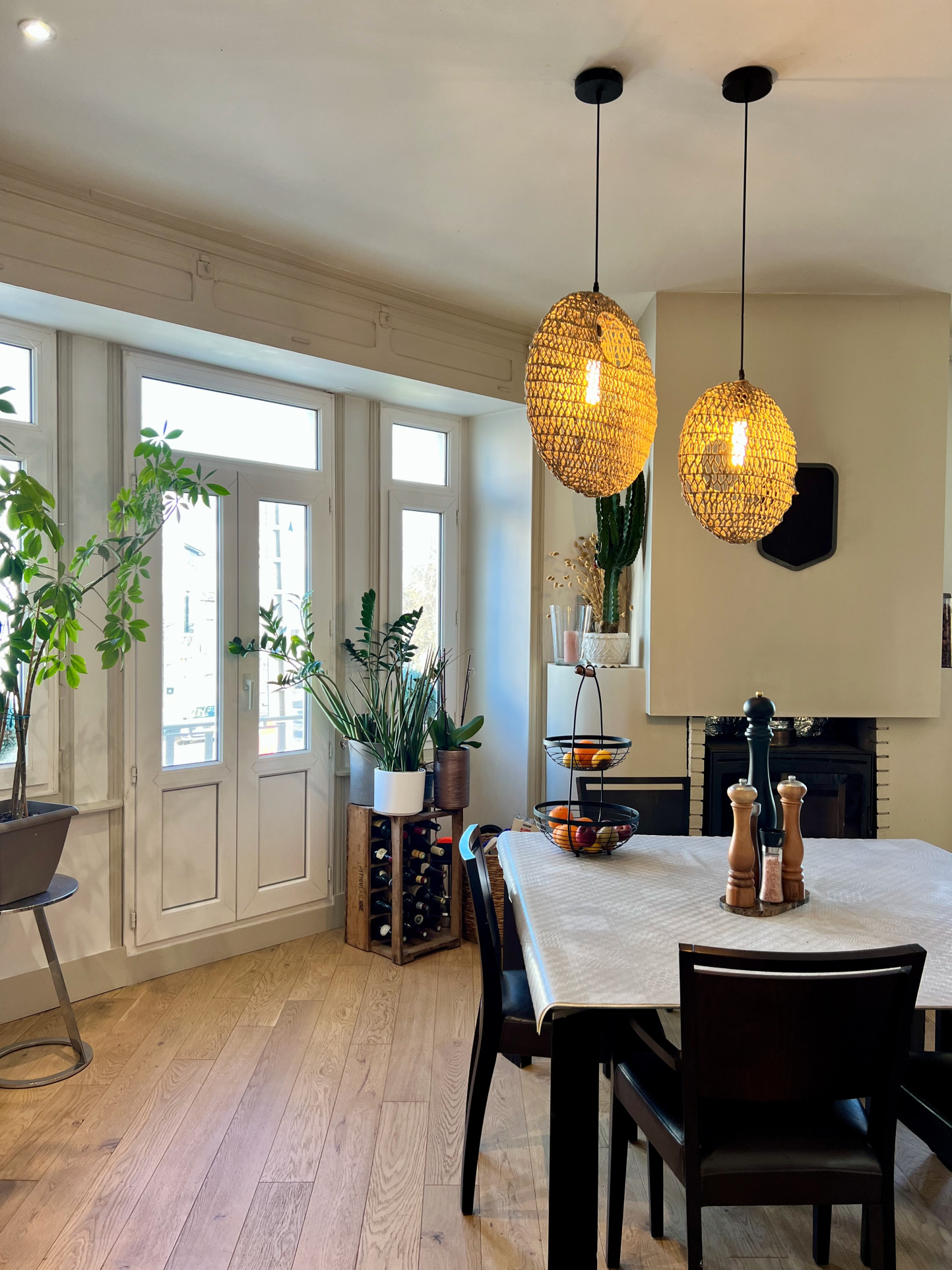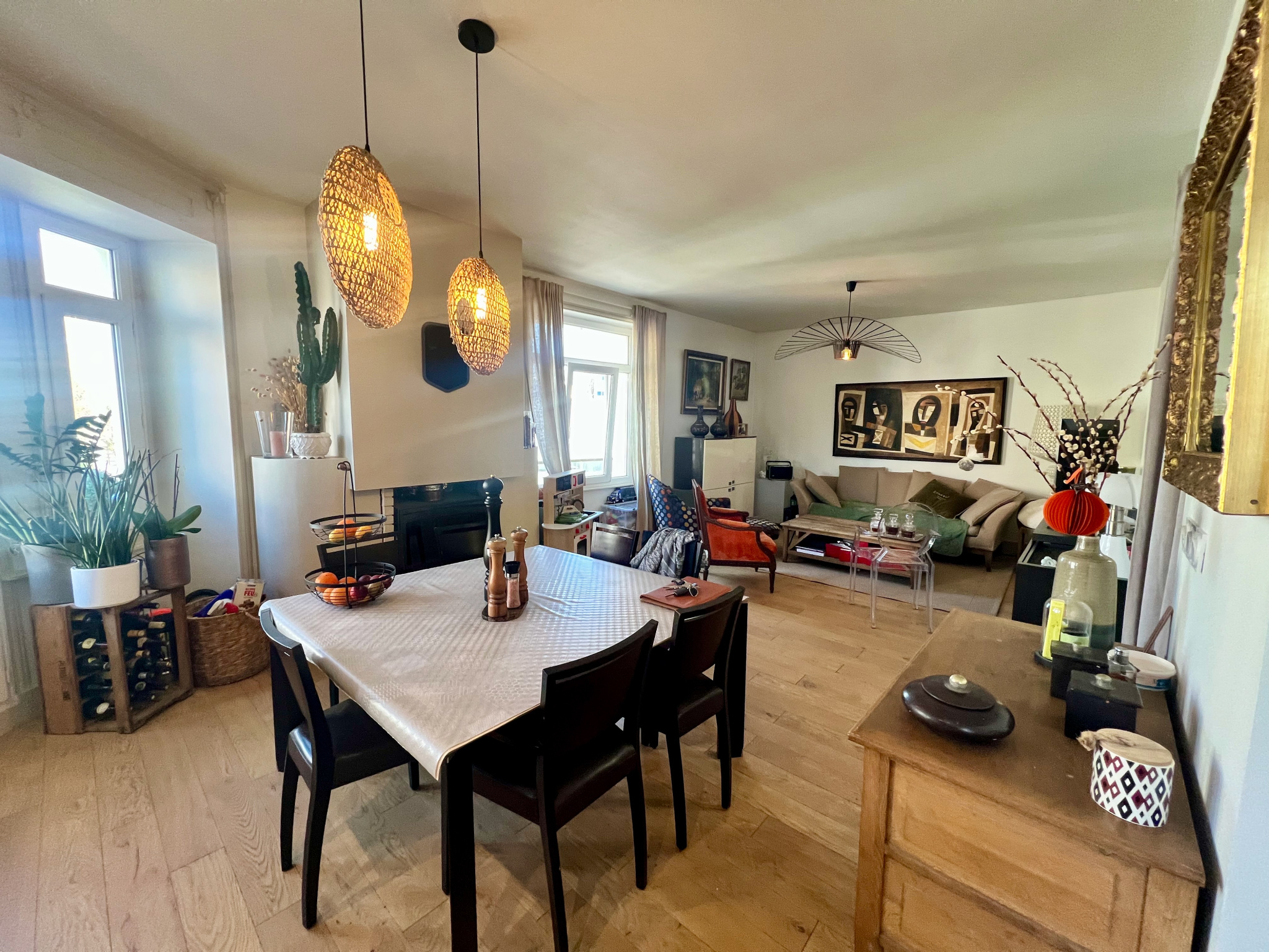 A l'étage vaste appartement en duplex de 130 m2 comprenant une agréable pièce de vie avec cuisine ouverte aménagée et équipée, arrière cuisine, WC séparé et 4 chambres avec placards et deux salle de bains.