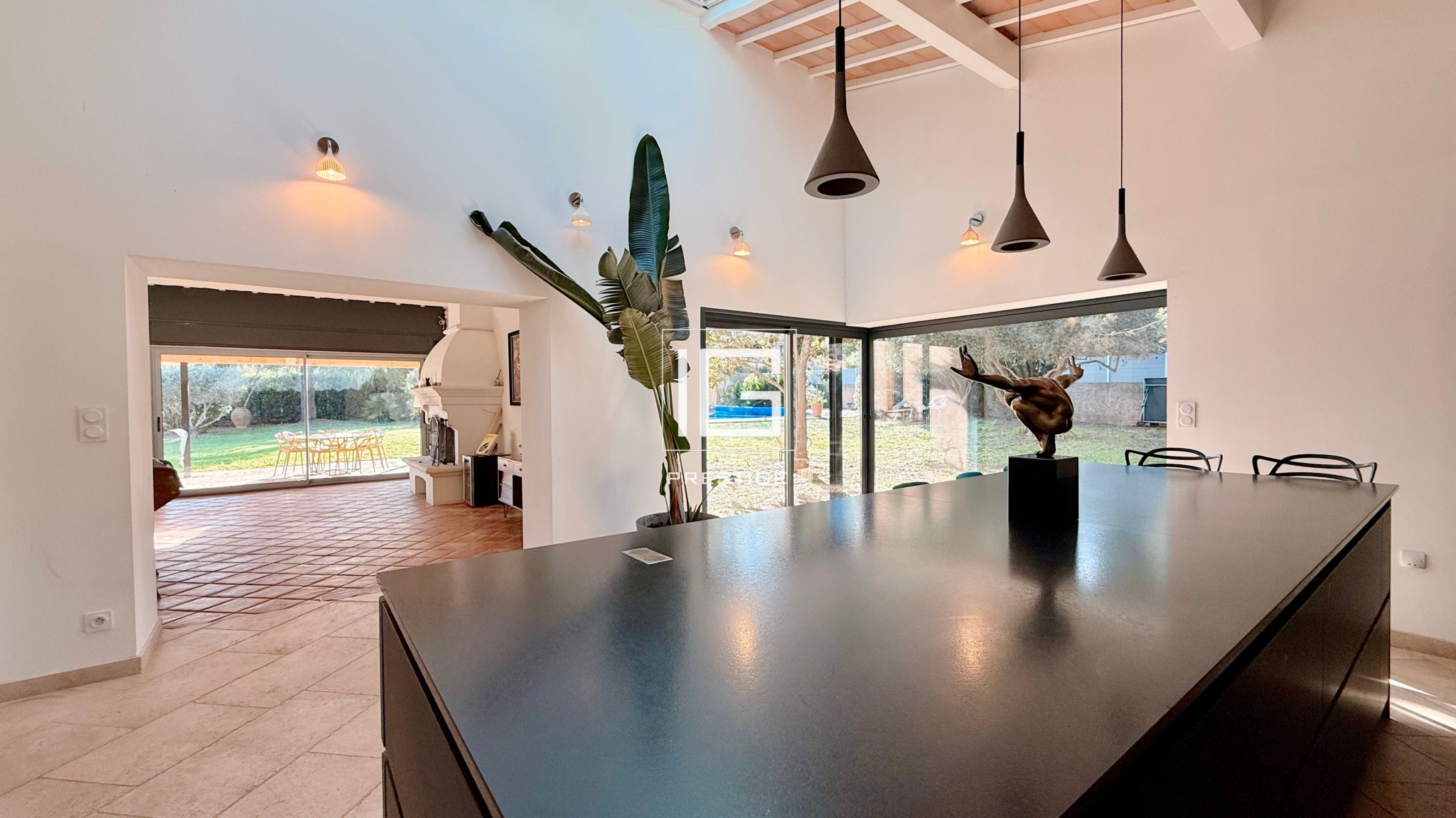 La maison, un savant mélange entre le charme de l'ancien et l'élégance contemporaine, dévoile un espace de vie remarquablement rénové par l'architecte Sauzet. L'ensemble s'ouvre largement sur le jardin et la piscine chauffée (12 x 6 m), créant une circulation fluide et naturelle entre intérieur et extérieur. Ici, chaque réception devient un moment mémorable.