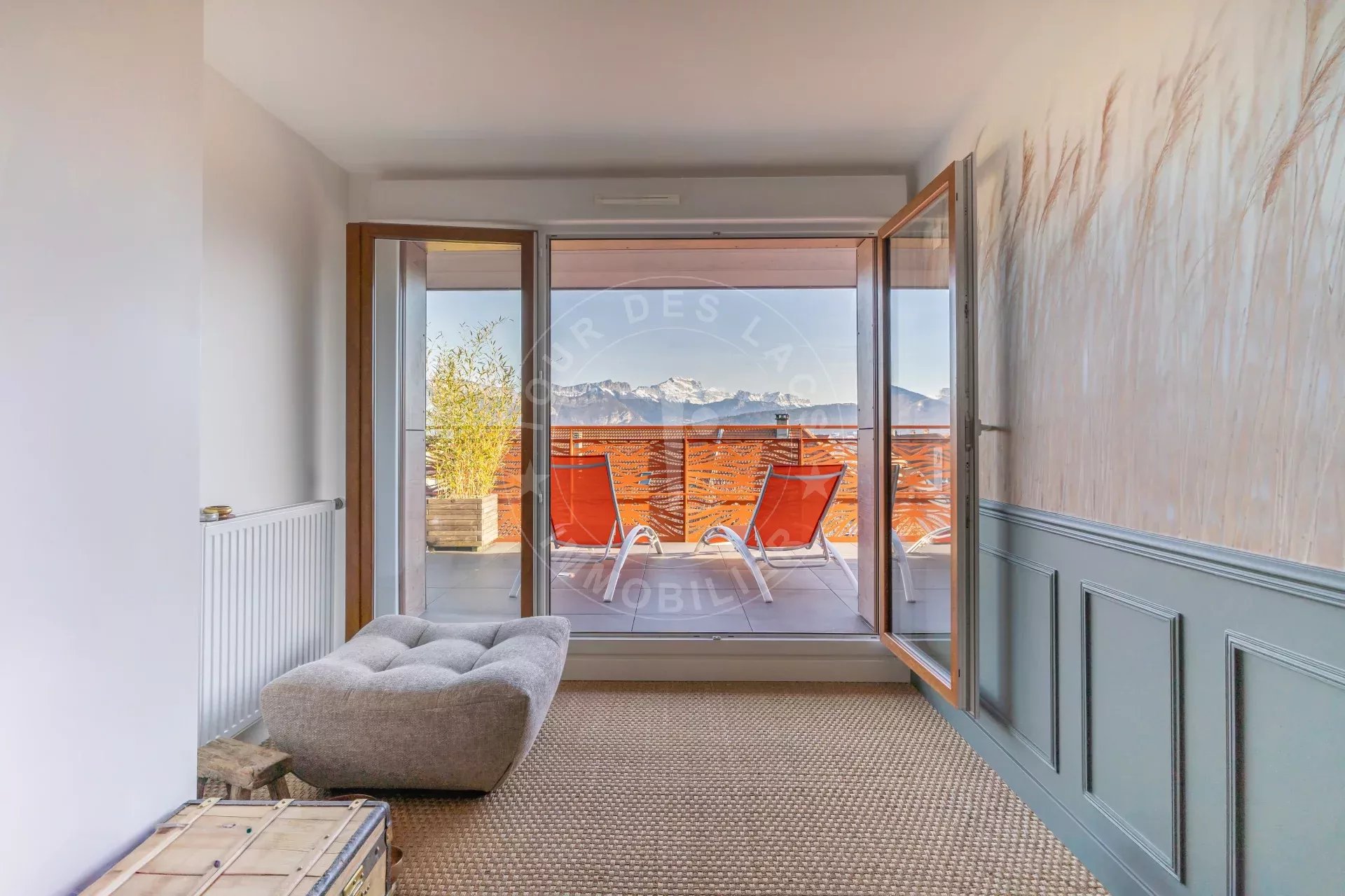 Une seconde terrasse, plus intime, prolonge cet étage et offre une vue dégagée sur l’environnement et les montagnes, parfait pour bronzer en été.