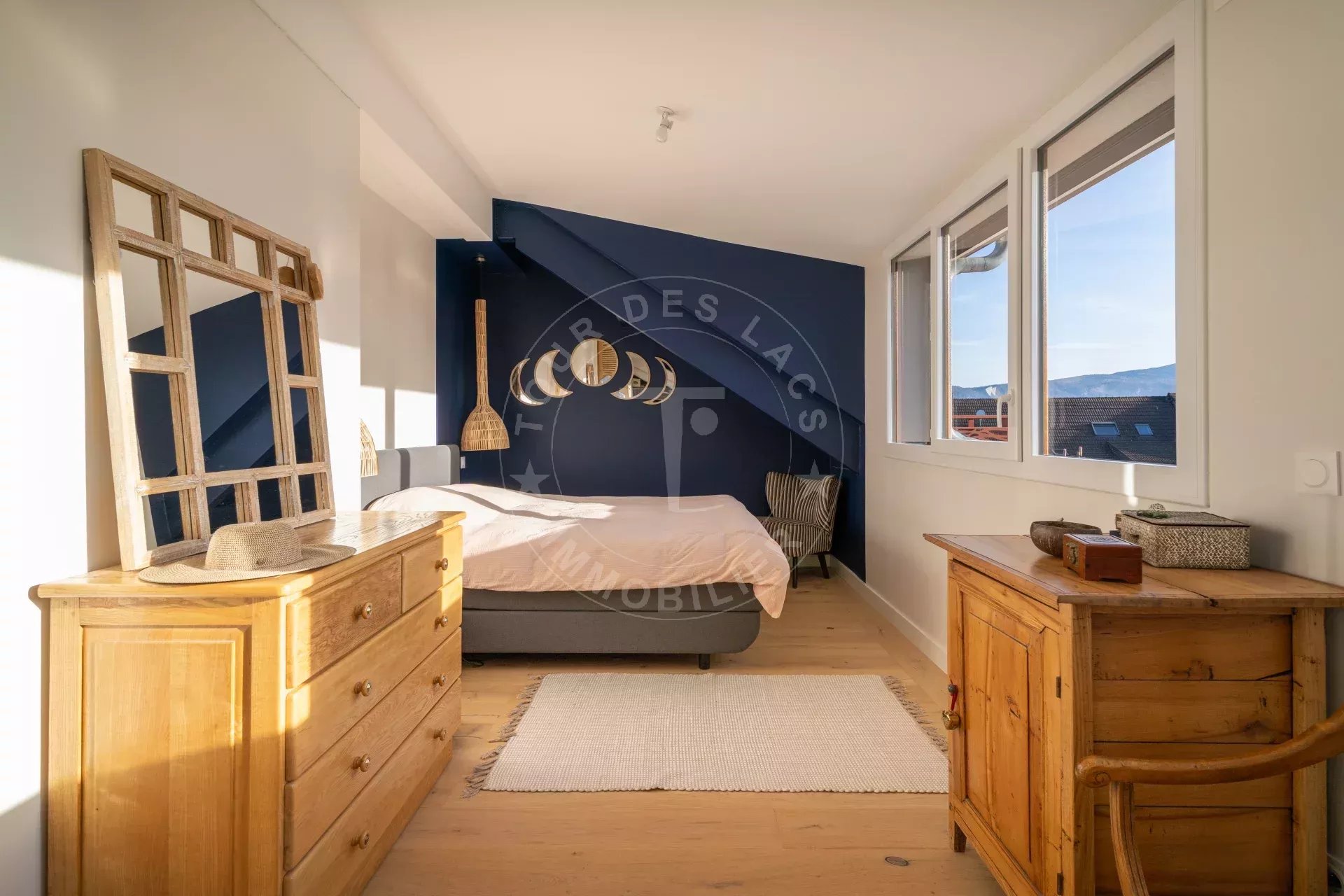 À l’étage, l’espace nuit offre trois chambres confortables, dont une belle chambre parentale avec rangements intégrés, deux salles de bains aux prestations haut de gamme et un WC séparé. Les volumes sous combles sont parfaitement maîtrisés et apportent du caractère sans contrainte d’usage.