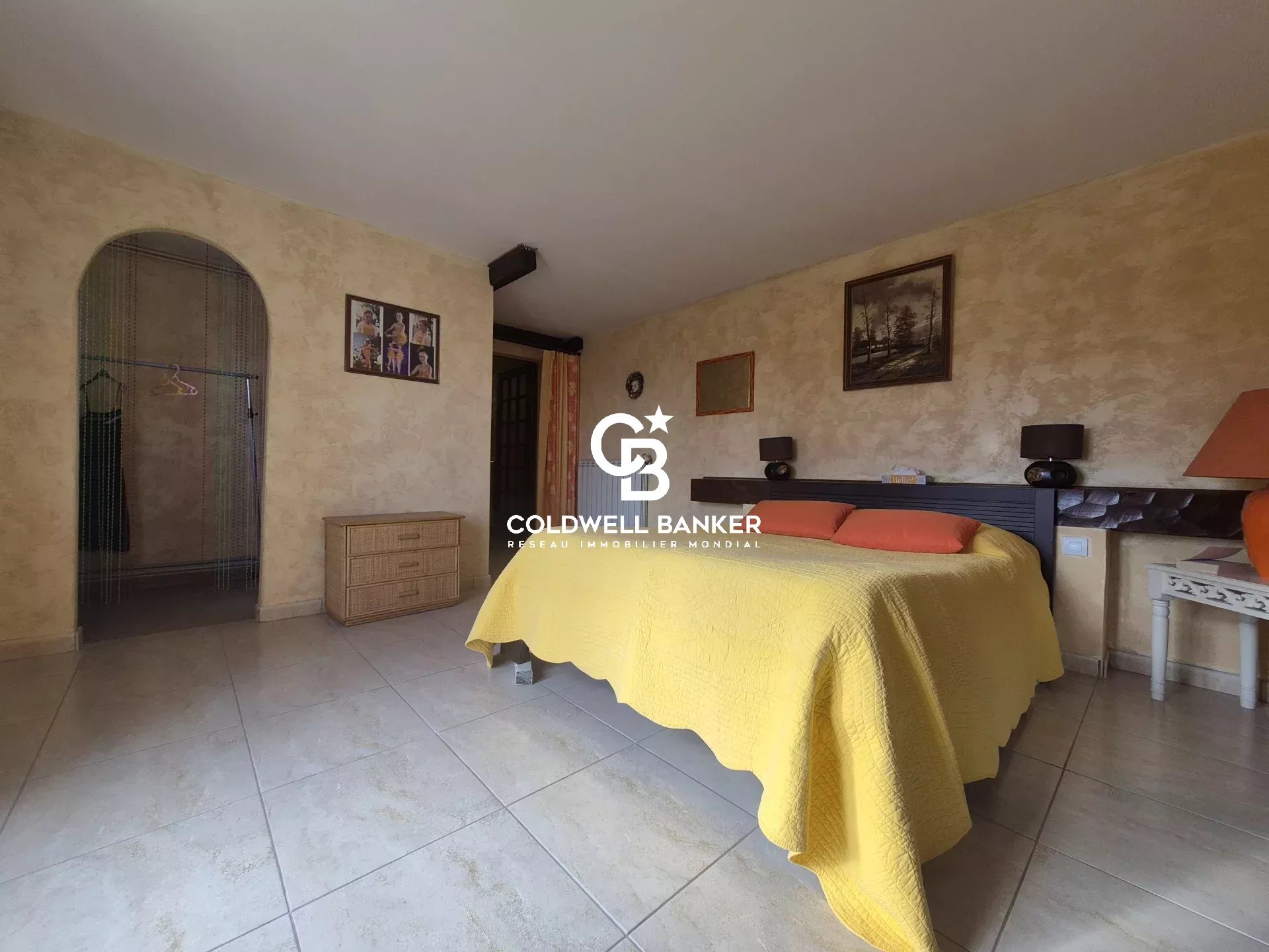Située aux Issambres, dans le Var, à proximité de Saint-Tropez, cette belle villa de 200m² construite dans les années 80 offre une vue imprenable sur la mer. Exposée plein sud, la propriété dispose d'une piscine 11 X 4 mètres, entouré d'une large plage, idéal pour installer des transats et profiter pleinement du soleil tout au long de l'été. Le tout s'inscrit sur un beau terrain clôturé et arboré, avec de nombreuses places de stationnement extérieures. Erigée sur 3 niveaux, elle se compose comme suit : * Niveau principal : Un patio avec entrée, cuisine ouverte sur séjour / salle à manger, une terrasse, une chambre, une salle de bains. Une agréable terrasse extérieure supplémentaire permettant de dîner l'été sous les glycines face à la mer. * A l'étage : Une double chambre de maître avec salle d'eau privative et sa terrasse tropézienne. * Rez-de-chaussée : trois chambres, une salle de bains, cuisine / séjour, terrasse avec belle vue mer. La propriété bénéficie également de nombreuses annexes, telles qu'un atelier, une lingerie, une chaufferie etc.... offrant de belles possibilités d'aménagement. Ces espaces pourraient notamment être transformés en studio ou petit appartement indépendant. Une villa au fort potentiel, idéal en résidence principale ou secondaire, dans un secteur très recherché, à quelques minutes de Saint-Tropez. Pour tous renseignements complémentaires : Valérie MASSON +33 (0)6 46 44 54 11.