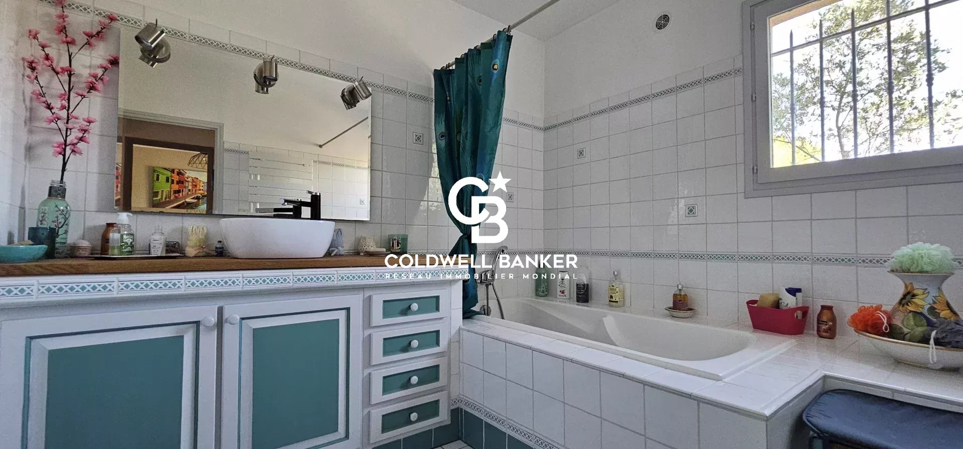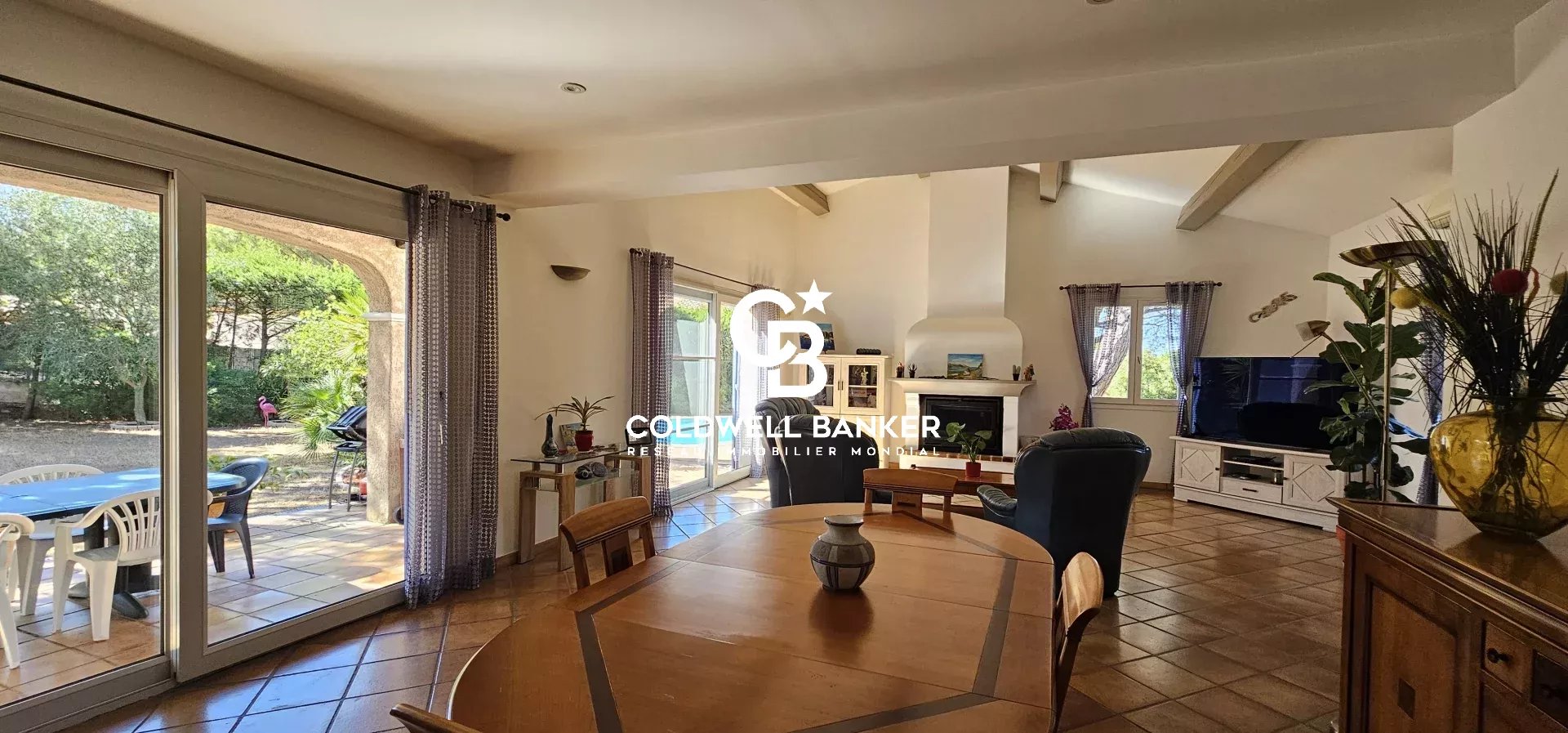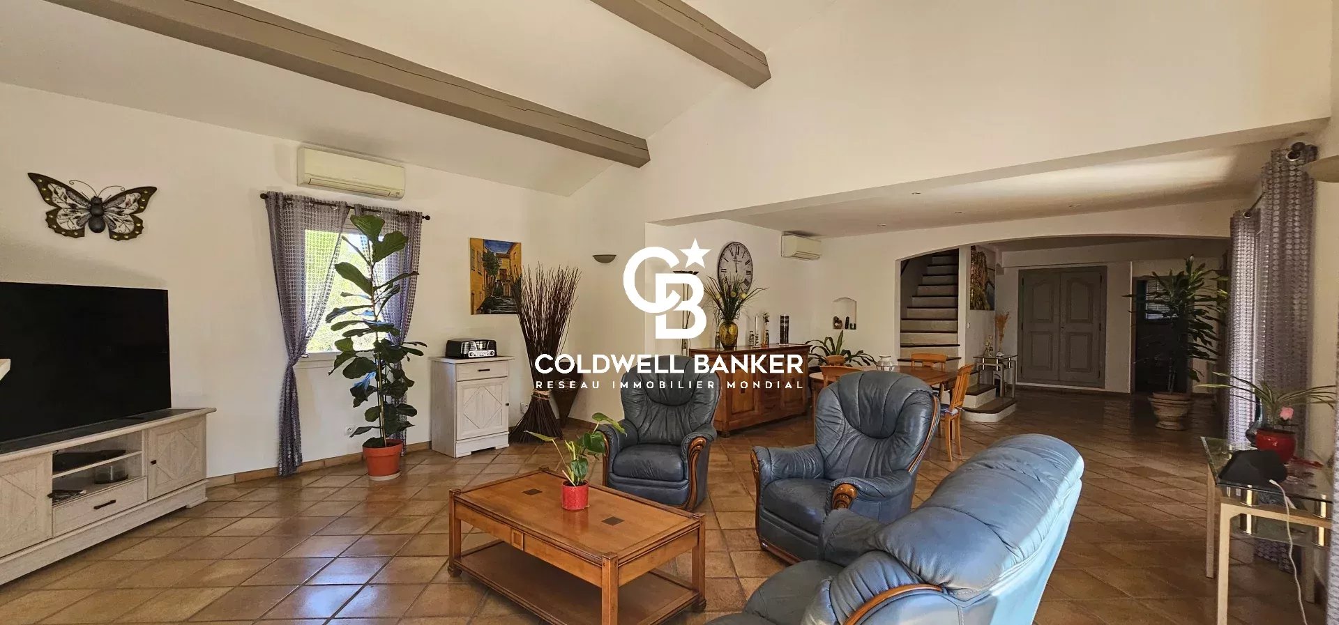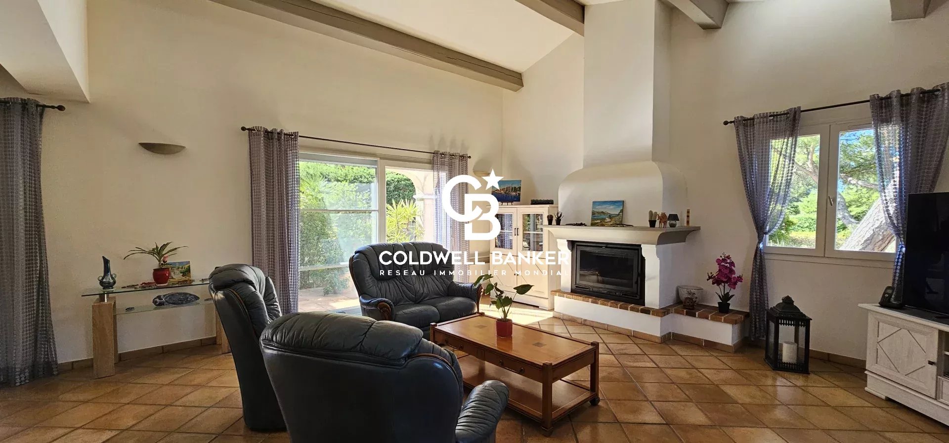 À seulement 10 minutes en voiture de Fréjus Plage, dans un environnement calme et sans vis-à-vis, cette très belle villa de 145 m² habitables, en parfait état, vous séduira par ses volumes, sa luminosité et ses prestations soignées. De plain-pied, elle offre une magnifique pièce de vie lumineuse de 61 m² avec cheminée insert, et son plafond cathédral qui lui confère de généreux volumes. Une magnifique cuisine indépendante de 15 m² entièrement équipée, ainsi qu’une arrière-cuisine aménagée pour la buanderie et les rangements. Une chambre, une salle de bain, et des WC indépendants complètent ce niveau. À l’étage, vous découvrirez deux chambres, dont une grande chambre de 19 m² avec accès à un petit balcon, une belle salle d’eau et un second WC indépendant. La maison dispose également d’un sous-sol de 46 m² comprenant un espace garage et atelier. À l’extérieur, vous profiterez d’un jardin joliment arboré, de plusieurs terrasses pour vos moments de détente et d’une belle piscine parfaitement intégrée à l’environnement, véritable havre de paix. En résumé, une maison clé en main, aux prestations complètes et soignées, ainsi que de nombreux espaces de rangement.