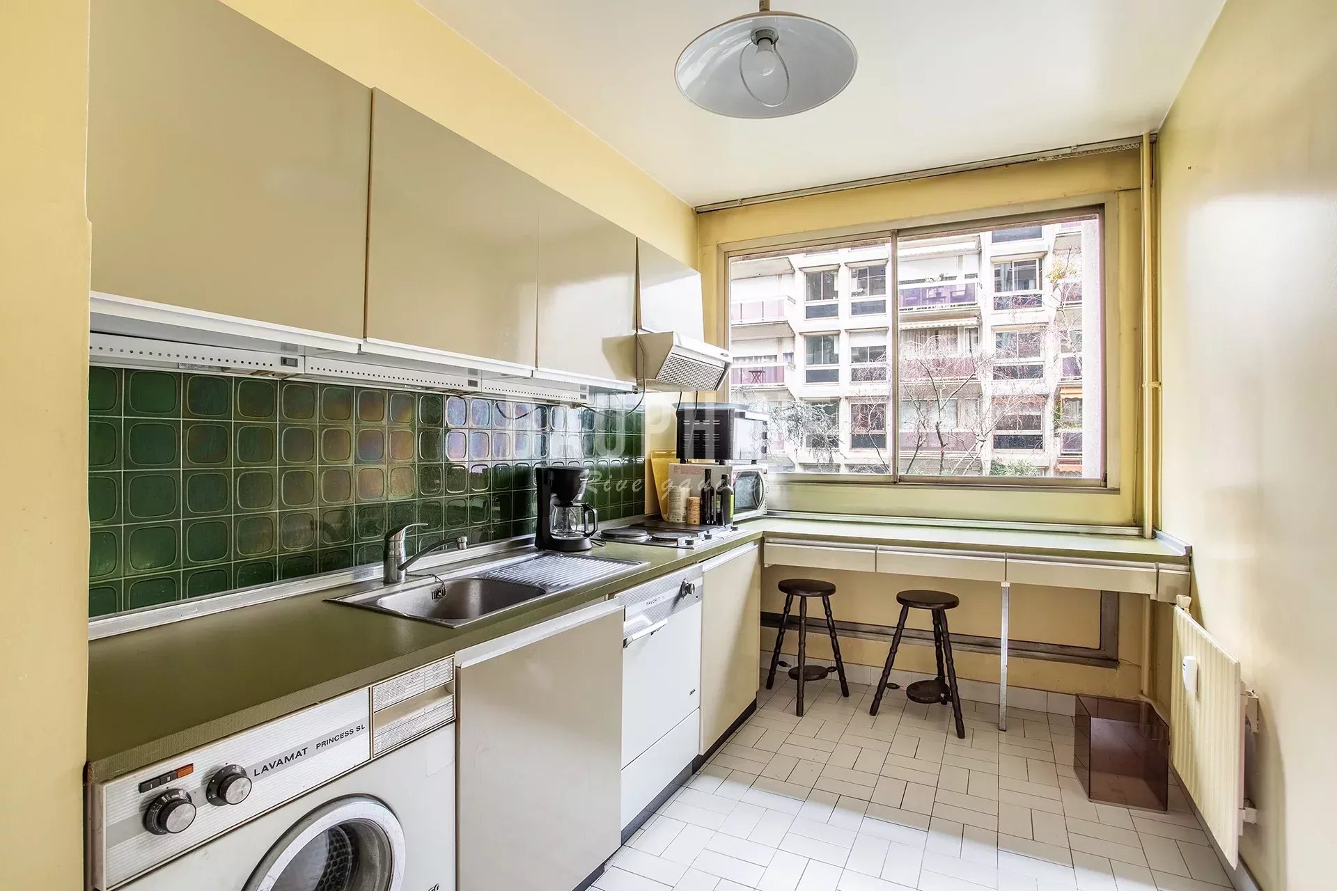 Au cœur du très prisé quartier Sèvres-Babylone et à deux pas du Bon Marché dans une copropriété semi récente de standing bénéficiant d'une double entrée, sécurisée avec gardien, bel appartement de 66m2 avec balcon de 5m2 situé au 3 ème étage accessible par ascenseur, donnant sur jardins au calme. Il se compose d’un séjour avec balcon, d’une chambre, d’un dressing, d’une cuisine indépendante, d’une salle de bains et d’un wc séparé. Plan fonctionnel offrant de belles possibilités de rénovation pour révéler tout le potentiel du bien. Possibilité de faire 2 chambres. Nombreux commerces, restaurants et transports à proximité immédiate. Gare Montparnasse accessible à pied. Situation très recherchée pour cet appartement qui dispose d'une cave saine en complément. Sublime vue panoramique depuis le Roof Top situé au dernier étage de la résidence.
