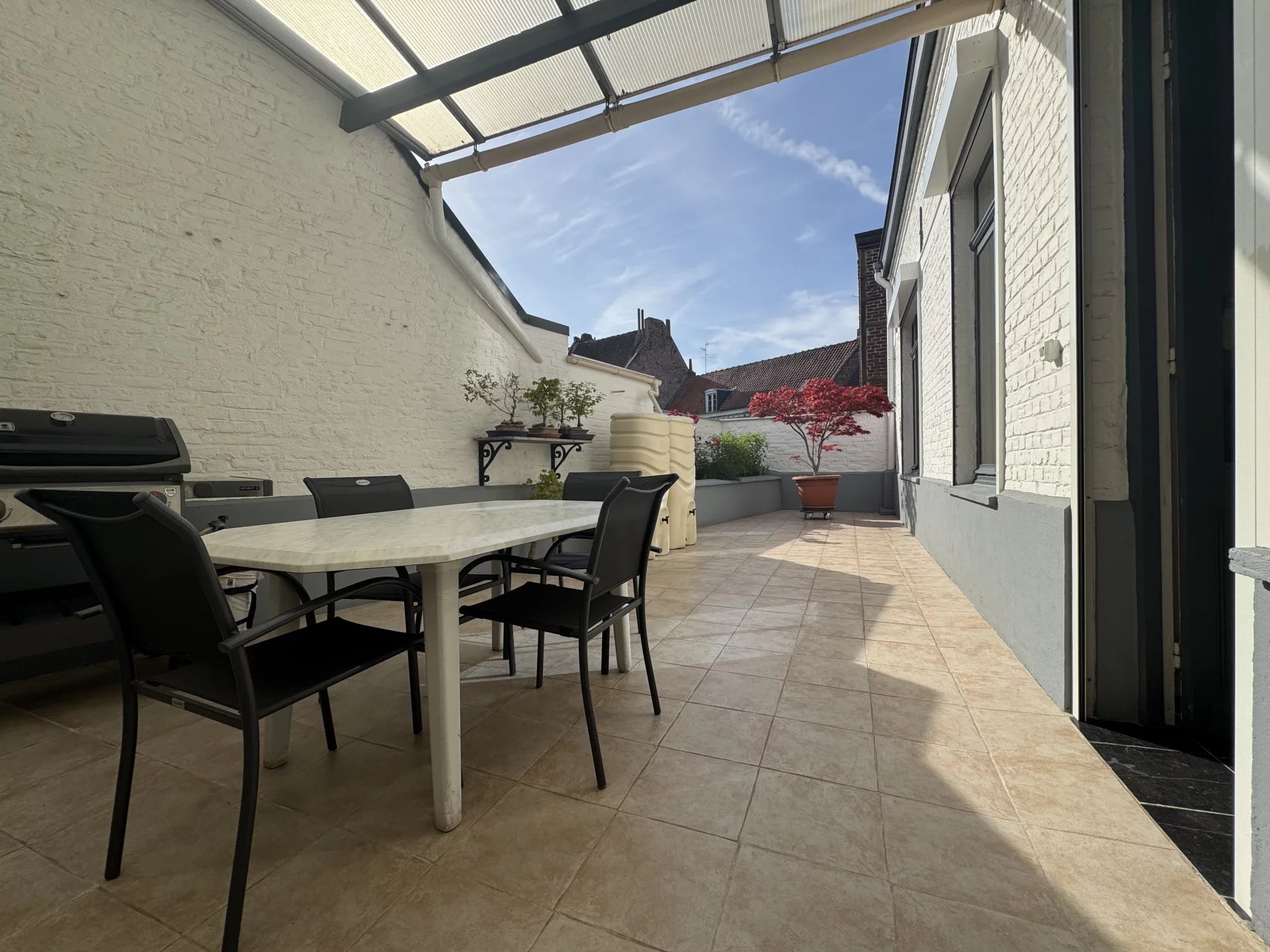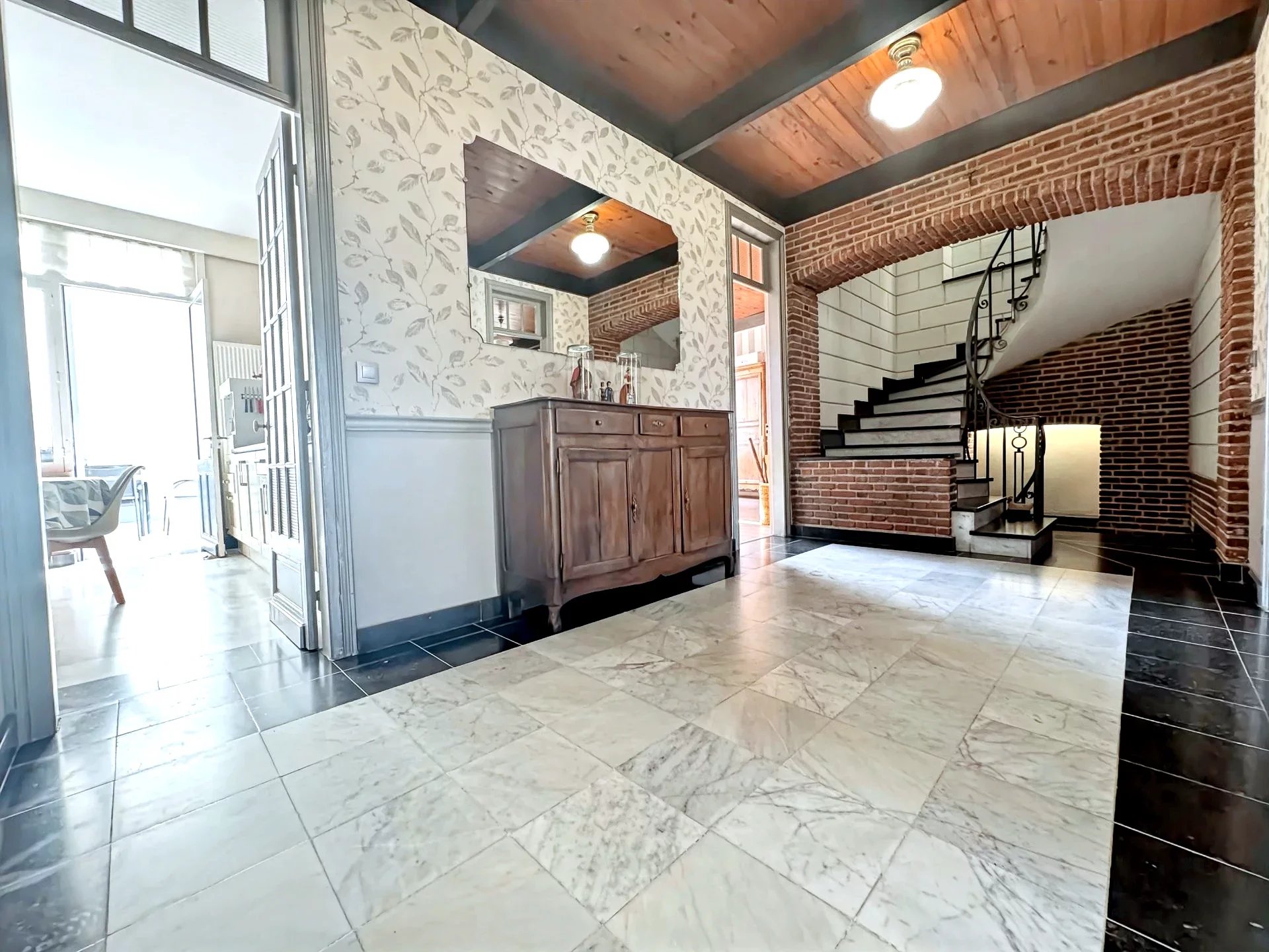 Douai hyper centre, Très belle maison de caractère comprenant : Hall d'entrée Salon, séjour ( 18 et 22 m²) Cuisine équipée Bureau (16 m²) Salle de bain, couloir et wc Grande terrasse de (+- 40 m²) Etage : 4 chambres ( 14, 15, 16 et 20 m²) Salle de douche, wc séparés Pallier, débarras, grenier Très grand local ou entrepôt au rdc de 102 m² ainsi qu'un sous sol complet de même surface. Possibilité de faire des bureaux ou toute autre activité. Entrée séparée Toiture neuve de 2016. Chauffage gaz, double vitrage (en partie) C'est une très belle maison unique que je vous propose aujourd'hui. Plus de photos/vidéos sur demande TF 1.900 €/an Une exclusivité Robert Langlet Agence Eleven immobilier 07*71*62*32*64
