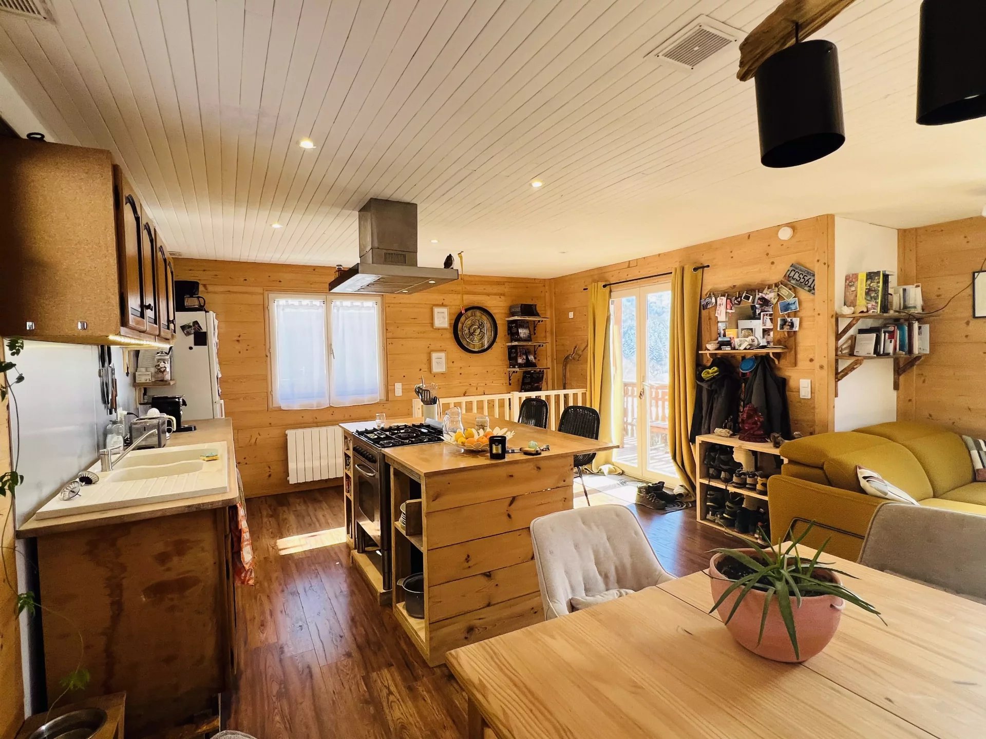 Nous proposons à la vente ce chalet d’une superficie habitable de 67 m² entièrement repensé et rénové sur la commune d’Aillon le Jeune, dans le quartier résidentiel de la Mense. Ce chalet propose au rez-de-chaussée deux chambres, une salle d’eau (douche à l’italienne) toilette et à l’étage : une cuisine ouverte sur un séjour de 37 m² avec balcon. Une terrasse d’une superficie de 50 m² offre une vue spectaculaire sur la vallée et la station. Les plus : poêle à granulés, panneaux photovoltaïques en production directe, casier à ski, atelier derrière la maison (14 m²) isolation récente, 3 places de stationnement privatives. Accès au chalet par un escalier extérieur. Terrain aménagé de 764m2. N'hésitez pas à nous contacter pour tous renseignements complémentaires.