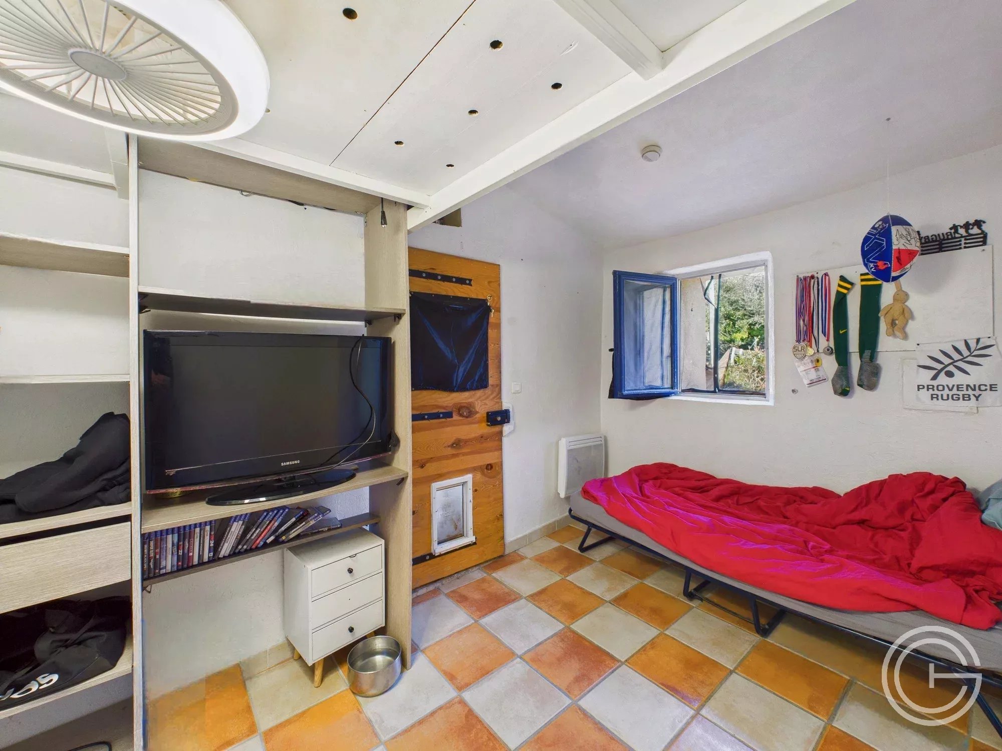 ImmoVendu vous propose en exclusivité, dans un environnement calme et naturel, cette propriété de charme implantée sur 7 500 m² de terrain entièrement clôturé. Elle se compose d’une maison principale, d'une seconde maison exploitée en gîte et d’un studio atypique au style médiéval, offrant jusqu’à 15 couchages et un fort potentiel locatif ou familial. La maison principale comprend une cuisine indépendante, un séjour lumineux avec bureaux, deux chambres dont une avec dressing et balcon, une salle de bain et un WC indépendant. À l’extérieur : grande terrasse avec barbecue et four à pizza, jardin, atelier, piscine hors sol et trois caves. Le gîte indépendant, isolé par l’extérieur, dispose d’un séjour avec cuisine équipée, de deux chambres avec salles d’eau privatives, d’un WC indépendant et d’une terrasse de 38 m². Faible consommation énergétique avec une isolation extérieur. Possibilité de reprise immédiate de l’activité locative (meublé, réservations en cours). Le studio médiéval, au charme unique, comprend séjour, cuisine, coin nuit, chambre indépendante et salle d’eau avec WC. Réseaux en place pour optimisation locative. Terrain arboré avec 70 oliviers (≈300 L d’huile/an) et arbres fruitiers, un bassin de récupération d’eau de 20 m³. La propriété est alimentée en eau par un forage à 31 mètres, avec un débit de 8 m³/h. La pompe immergée a été changée début juillet 2025 et est encore sous garantie. Une étude a été réalisée pour devenir complètement autonome en électricité grâce à l’installation de panneaux solaires, pour un montant de 13 000 €. Un bien aux nombreuses opportunités, alliant qualité de vie et excellent potentiel d’investissement. Taxe foncière : 863€ DPE : F – après travaux : C (pompe à chaleur)