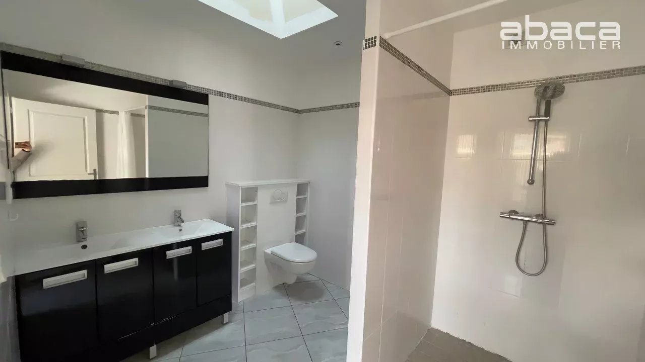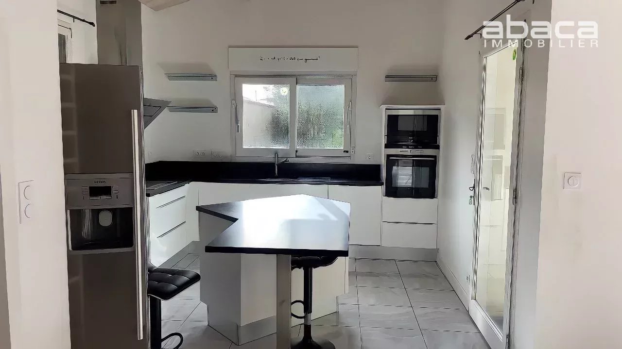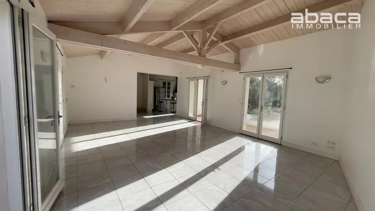 Avec une surface habitable de plus de 100 m², cette propriété dispose d'une belle pièce de vie traversante lumineuse avec une cuisine entièrement aménagée et équipée. Elle dispose également de deux chambres, d'une salle d'eau avec toilettes, d'un cellier et d'un toilette à l'entrée.