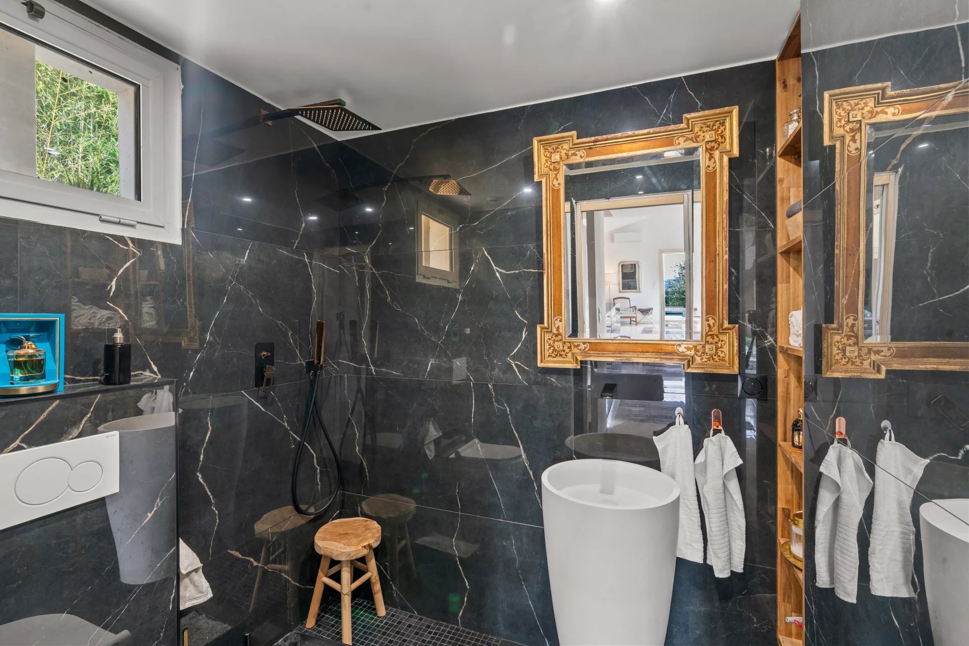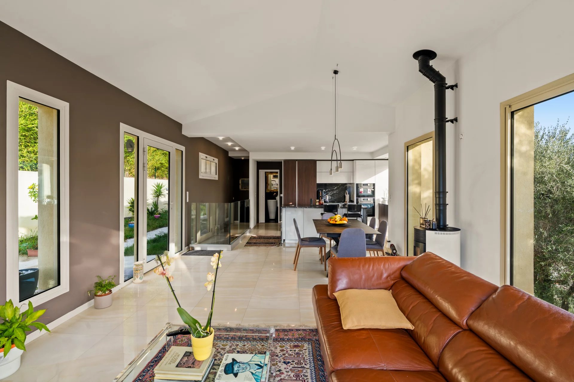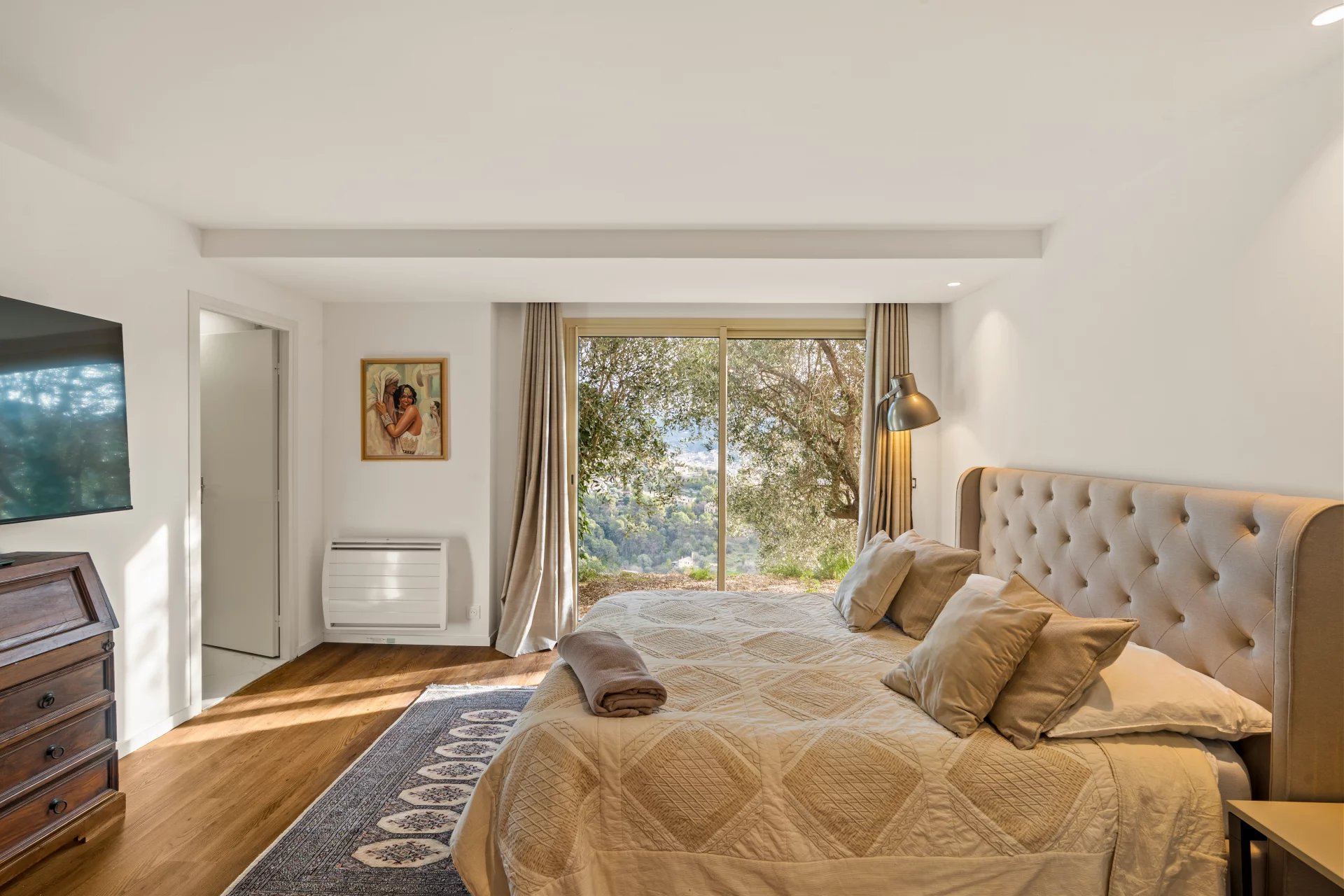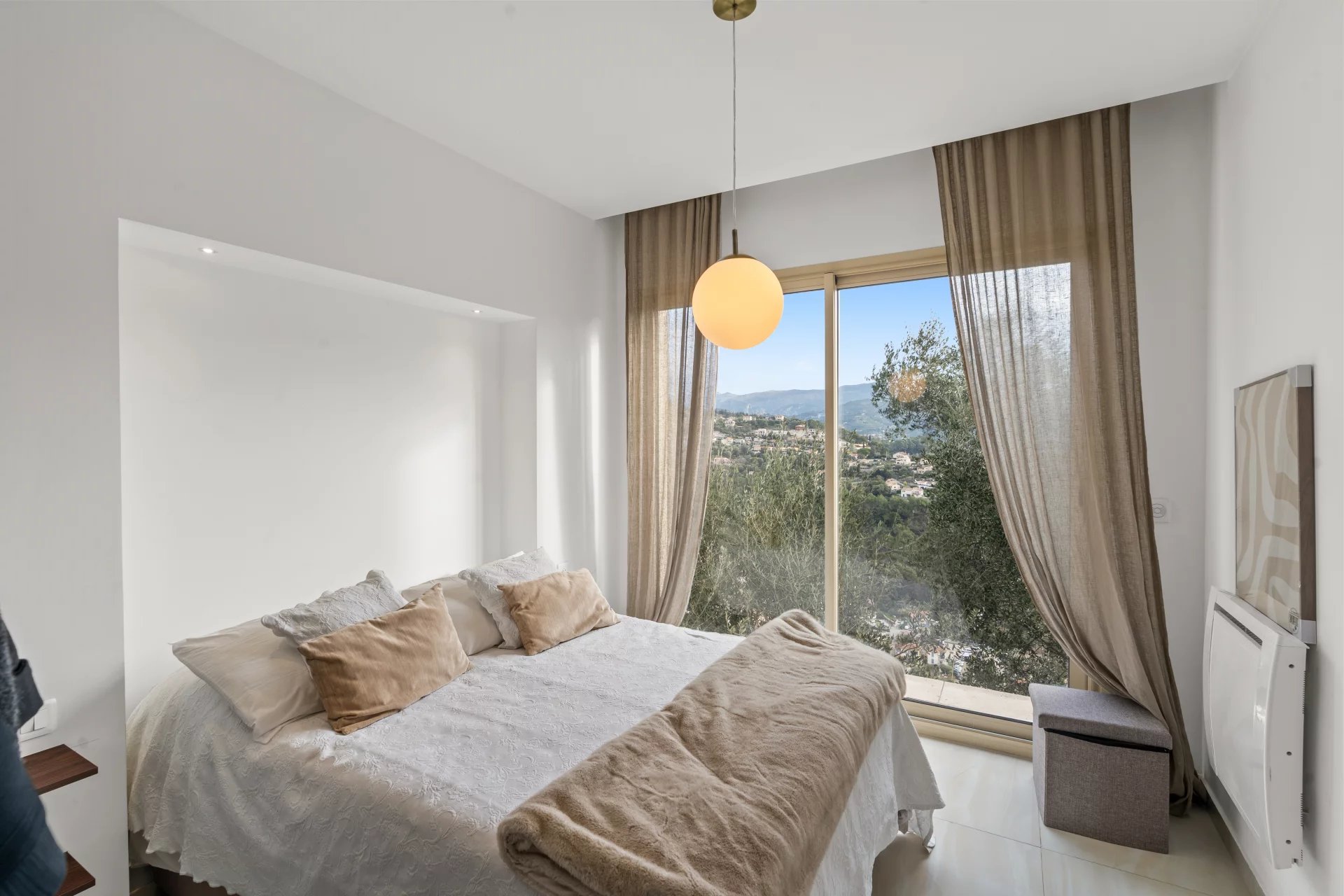 Situata sul chemin de Rimiez a Saint-André-de-la-Roche, alla periferia di Nizza, in un contesto residenziale e lussureggiante, questa villa contemporanea vanta una vista ininterrotta su Nizza e sul Mar Mediterraneo. Costruita su due piani, il livello principale presenta un ampio e luminoso soggiorno di oltre 40 m2 con una moderna cucina completamente attrezzata che si apre sul soggiorno e sul giardino. Dalla zona giorno si gode di una piacevole vista sul mare. Una camera da letto e un bagno con doccia completano questo livello. Al livello inferiore, una zona salotto conduce a una prima camera da letto con bagno privato con doccia, spogliatoio e accesso diretto a una terrazza, nonché a una seconda camera da letto anch'essa con bagno privato e spogliatoio. La villa si trova su un terreno di 1.500 m², che offre interessanti spazi esterni e un reale potenziale di sviluppo. È possibile un'ulteriore costruzione, con una superficie di 75 m² su due livelli, previa autorizzazione edilizia. Per un comfort ottimale, la casa è dotata di doppi vetri e aria condizionata. Una piscina completa la gamma di caratteristiche, consentendo di sfruttare al meglio il bel tempo. Il parcheggio è facile, con la possibilità di parcheggiare fino a sei veicoli davanti alla proprietà, ideale per intrattenere la famiglia e gli ospiti. Una proprietà rara nella zona di Rimiez, che offre pace e tranquillità, vista sul mare, modernità e potenziale.