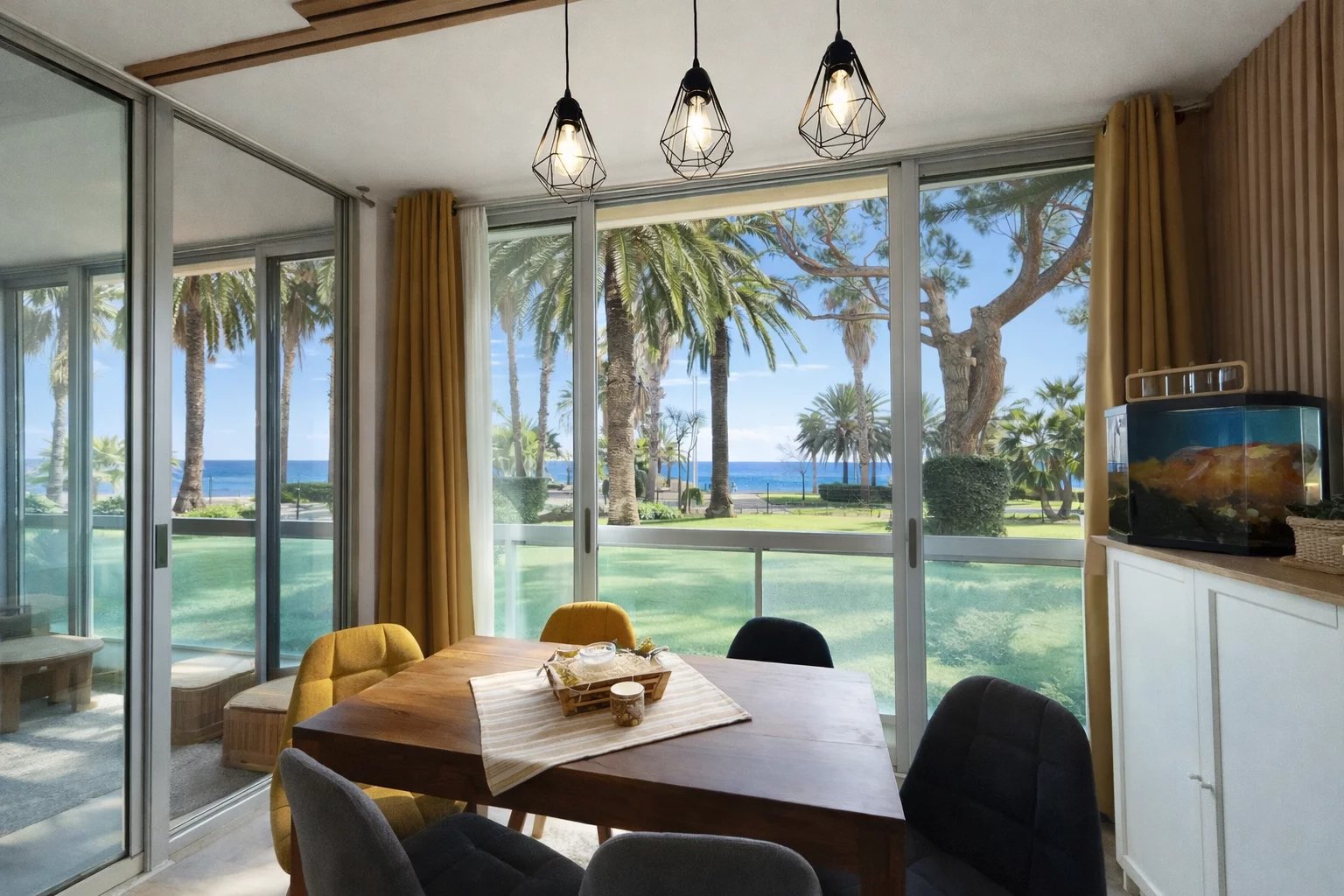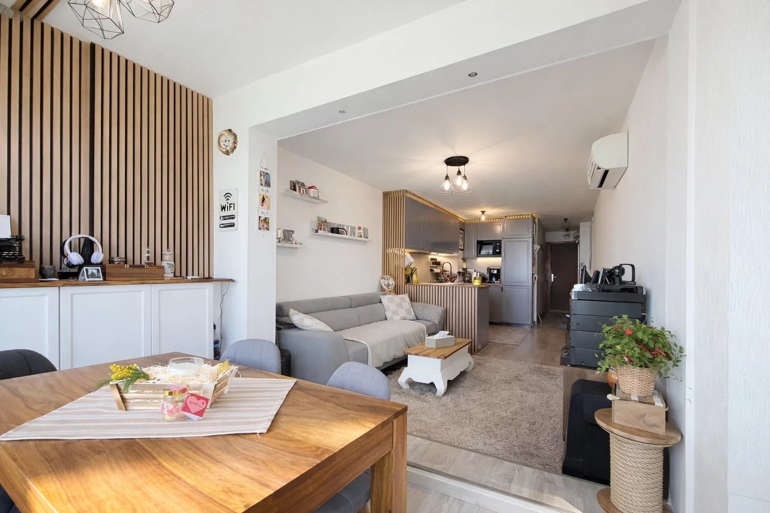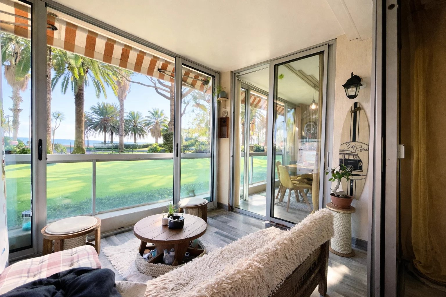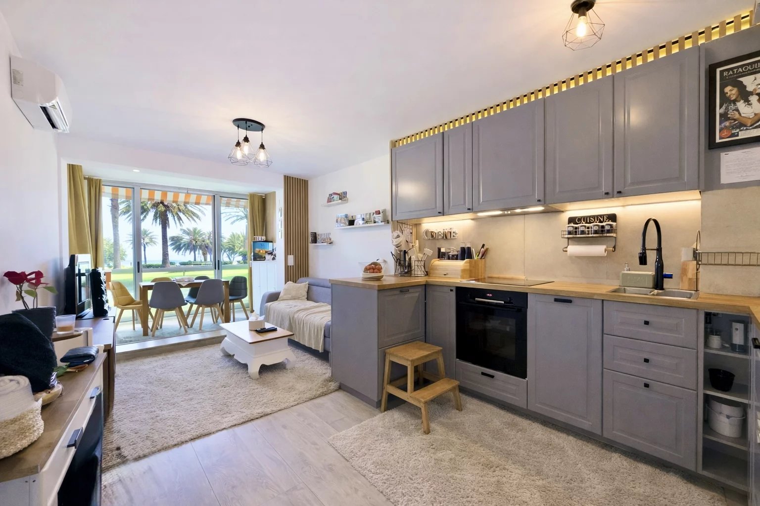 Situé à Cannes, sur le Boulevard du Midi en rez-de-chaussée, cet appartement 3 pièces entièrement rénové et meublé bénéficie d’un emplacement privilégié face à la mer. Il suffit de traverser pour être directement à la plage, les pieds dans l’eau, et profiter pleinement du littoral cannois en toute simplicité Il offre une surface habitable totale de 52,83 m (LC de 46,02 m²) une loggia fermée de 6,30 m² aménagée comme un véritable espace de vie, cette loggia permet de profiter d’une vue sur la mer en prenant ses repas, dans une atmosphère calme et lumineuse. L’appartement se compose d’une entrée d’un séjour lumineux avec cuisine ouverte aménagée et équipée, de deux chambres, d’une salle de bains moderne avec baignoire (possibilité douche à l’italienne) et d’un WC indépendant. Le confort est assuré par une climatisation réversible. Une place de parking et une cave complètent ce bien. La résidence, calme et sécurisée, dispose d’un local à vélos, d’une aire de jeux pour les enfants et d’un espace de promenade pour les animaux, à l’arrière de la copropriété. Un bien idéal pour une résidence principale, un pied-à-terre ou un investissement locatif clé en main, dans un cadre de vie recherché en bord de mer. À visiter rapidement