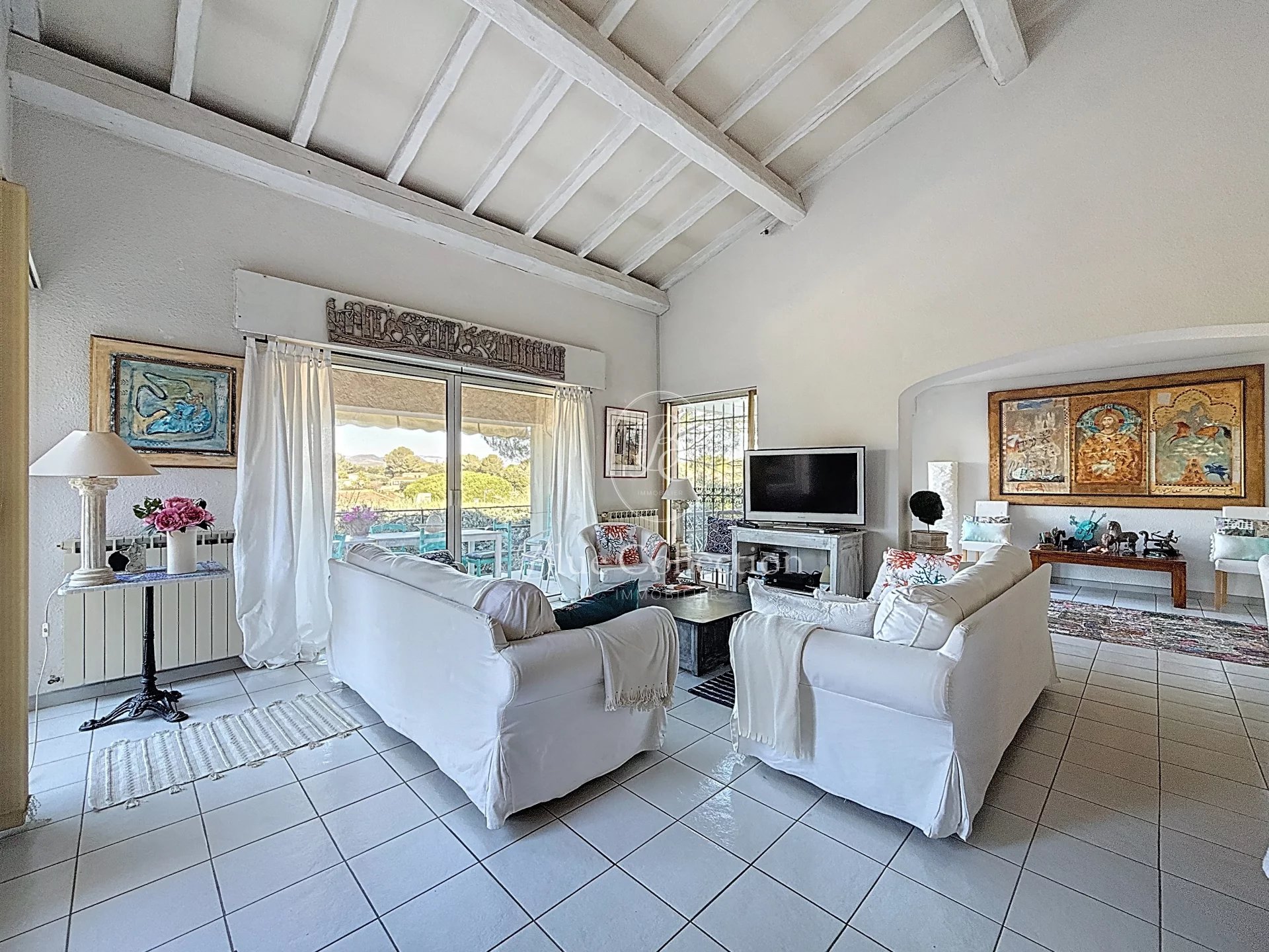 FREJUS - SECTEUR RESIDENTIEL PRISE Dans un secteur prisé au calme absolu, une très belle villa de 163 m2,avec piscine, joliment décoré avec gouts et design. La maison comprend une entrée avec placards, un vaste séjour salle à manger en cathédrale profitant d'un grand volume et du charme de l'ancien avec ses poutres apparentes, un espace salle à manger, une cuisine indépendante équipée avec cellier, une chambre avec terrasse, un toilette indépendant et deux accès sur les terrasses extérieures surplombant la piscine et le jardin. A l'étage: une salle de bains, un Wc indépendant, 2 chambres dont une avec une véranda. Un garage de 21 m2? deux abris voitures et un bel atelier de 91 m2 complètent ce bien Double vitrage, volets électriques, stores électriques, climatisation réversibles, tennis dans le lotissement. VIAGER OCCUPE - HOMME DE 79 ANS BOUQUET de 295.000 EUR FAI + RENTE MENSUELLE DE 2.100 EUROS VALEUR VENALE : 850.000 euros Possibilité achat en nue propriété ( bouquet unique)