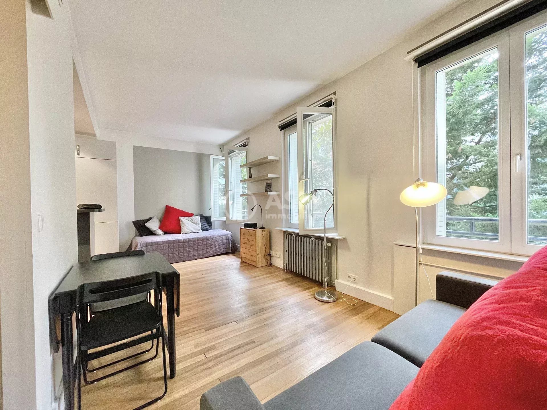 L'agence immobilière Courbevoie : ASM immobilier vous propose dans un immeuble de standing, à proximité de toutes commodités et du métro ligne 1 "pont de neuilly" Grand studio lumineux, au premier étage sans ascenseur, accessible par un escalier extérieur, donnant sur une cour arborée de 27 m2 avec une cuisine américaine équipée, 3 grandes fenêtres créant une luminosité naturelle, une salle de douche avec WC. Visites et informations sur demande. Frais d'agence + état des lieux : 405€ TTC Dépot de garantie : 2420 € (2 mois de loyer HC)