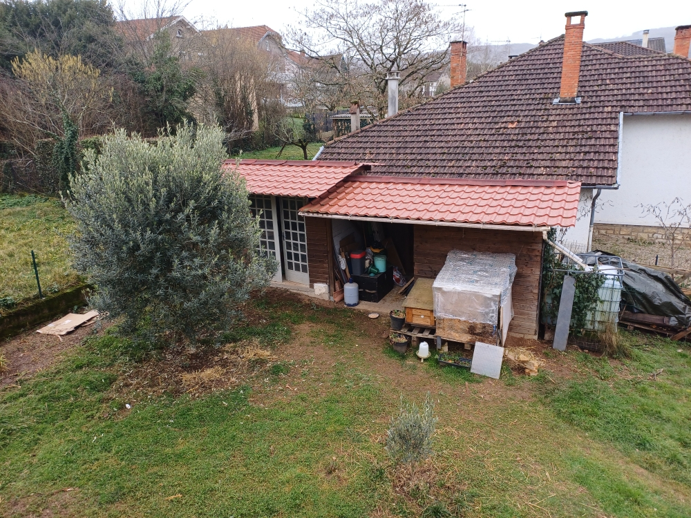 Maison sur sous sol avec garage et entrée indépendante. Maison récemment restaurée : Isolation par l'extérieur, Pompe à chaleur, Chauffeau thermodynamique, Climatisation. 1 er niveau : séjour, cuisine ouverte, salon, salle d'eau, 3 chambres. Grande terrasse 31 m2 donnant sur jardin clos avec cabanon 20 m2. Au RDC : Appartement T2 de 47 m2 avec jardin loué 327 euros. Cellier 8 m2. Renouvellement des diagnostiques en cours suite aux travaux. raccordement au tout à l'égout. Prise extérieur recharge électrique. Très proche des commodités et du parc Capel
