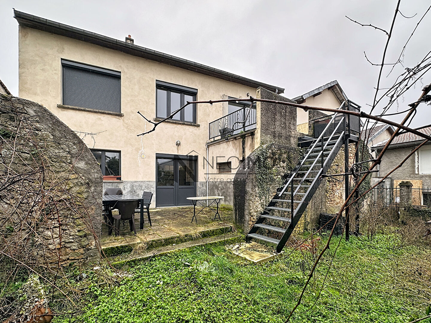 5 minutes de l'A31, 15 minutes de Nancy et 15 minutes de Pont-à-mousson Située dans une petite rue calme, très sympathique maison offrant : - Au rez-de-chaussée : entrée, vaste espace garage-atelier-buanderie-rangements, première terrasse - A l'étage : cuisine aménagée ouvrant sur seconde terrasse, salon-séjour de 27 m² équipé d'un poêle à granulés de bois, deux chambres, salle d'eau, wc séparés - A l'étage supérieur : salle de jeux et une chambre. Parking public à proximité. Proche école maternelle, collège et complexe sportif. Fenêtres double vitrage
