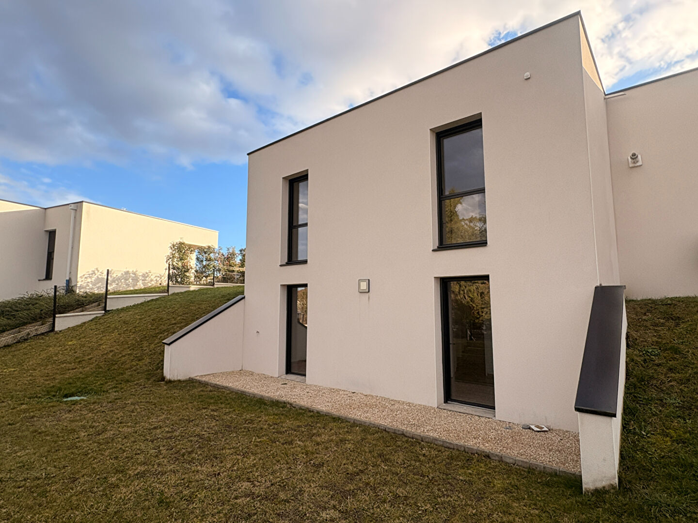 Rare sur le marché - Maison contemporaine de 2019 -Lotissement PRO IMMO Au sein d'un lotissement réalisé par PRO IMMO, cette maison récente de 2019, à l'architecture contemporaine avec toiture terrasse, séduit par ses prestations haut de gamme et sa haute performance énergétique. Pièces de vie de plain pied : séjour/cuisine, 2 chambres, salle de bain, WC Dans le détail: Au premier niveau, elle se compose d'une pièce de vie lumineuse de 53 m² avec cuisine ouverte, offrant un accès de plain-pied à une très belle terrasse. Deux chambres de 12 m² avec placards, une salle de bains ainsi qu'un WC indépendant complètent ce niveau. Le second niveau accueille deux autres chambres de 11 m² avec placards, bénéficiant d'un accès direct au jardin, ainsi qu'une salle d'eau avec WC. Un garage de 22 m² et un emplacement de stationnement sécurisé devant le garage viennent compléter le bien. A l'extérieur, vous profiterez d'un jardin entièrement clos et arboré de 517 m², idéal pour les moments de détente. Prestations techniques : Chauffage individuel par chaudière hybride gaz / pompe à chaleur Menuiseries aluminium Volets roulants motorisés Bénéficiant d'un emplacement stratégique, alliant calme, proximité des transports et des services, cette maison saura vous charmer par ses nombreux atouts. PRO IMMO "L'Immobilier Made in Auvergne"