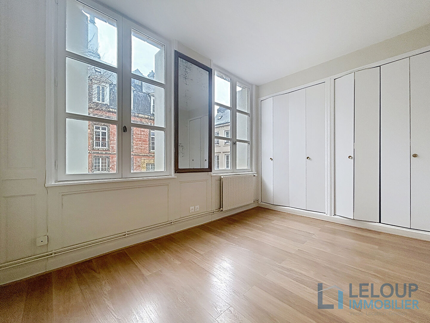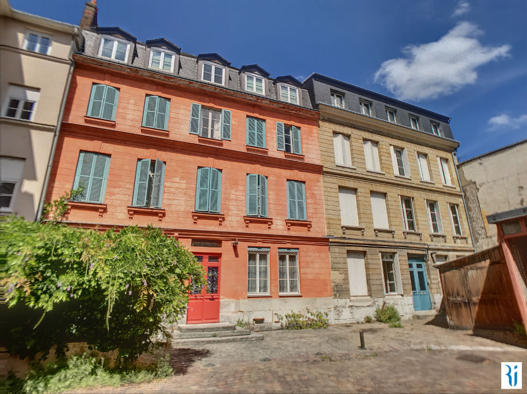 ROUEN CATHEDRALE - RUE SAINT NICOLAS Au coeur historique de Rouen, dans un bel immeuble sur cour intérieure, charmant appartement de 70 m² avec parking. Il se compose d'une entrée, d'un séjour parqueté exposé plein sud avec placards, d'une cuisine séparée aménagée (hotte, meubles hauts et bas), de deux chambres avec rangements, d'une salle d'eau avec douche et meuble vasque, ainsi que de WC séparés. Chauffage individuel au gaz. Appartement entièrement refait à neuf, lumineux et au calme. *Assurance habitation à 14.76 euros / mois.