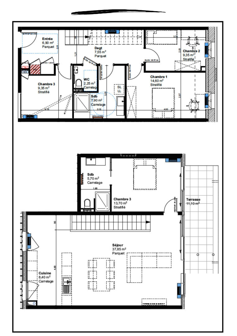Dans un programme neuf de standing, Le Colisée, découvrez ce bel appartement T5 en duplex de 123 m² avec ascenseur. Au rez-de-chaussée, il se compose d'une entrée, d'un dégagement, d'un WC, d'une salle de bains et de 3 chambres. Au 1er étage, vous trouverez un salon séjour, une cuisine, une chambre donnant sur une terrasse de 11m2 et une seconde salle de bains. Ce bien bénéficie de frais de notaire réduits, d'une disponibilité proche. Il est éligible au Prêt à Taux Zéro selon conditions. Une cave est incluse et il est possible d'acquérir un parking en supplément. Un logement spacieux et moderne, idéal pour une grande famille ou un investissement durable. Contactez nous sans plus attendre pour plus d'informations.