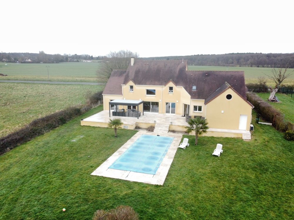 A 5 MIN DE LA LOUPE BELLE PROPRIÉTÉ DE 325 M² HABITABLES AVEC PISCINE CHAUFFÉE SUR UN TERRAIN D'ENV 4800 M² BORDÉ D'UNE RIVIÈRE. Au rez de chaussée, 1 entrée de 21 m² desservant, 1 chambre de 13 m², 1 chambre de 16 m² avec dressing, salle d'eau et WC privatifs, 1 salon séjour de 50 m² avec poêle à bois, 1 cuisine aménagée et équipée, buanderie, cellier, chaufferie et 1 salle d'eau avec accès piscine. A l'étage, 1 mezzanine de 14 m² desservant, 2 chambres de 15 et 27 m², 1 salle de bain ainsi qu'un studio indépendant d'env 73 m². Garage double 32 m². Chauffage central Gaz. Belle terrasse avec pergola bio-climatique. PRODUIT RARE A LA VENTE!! Honoraires à la charge du vendeur.