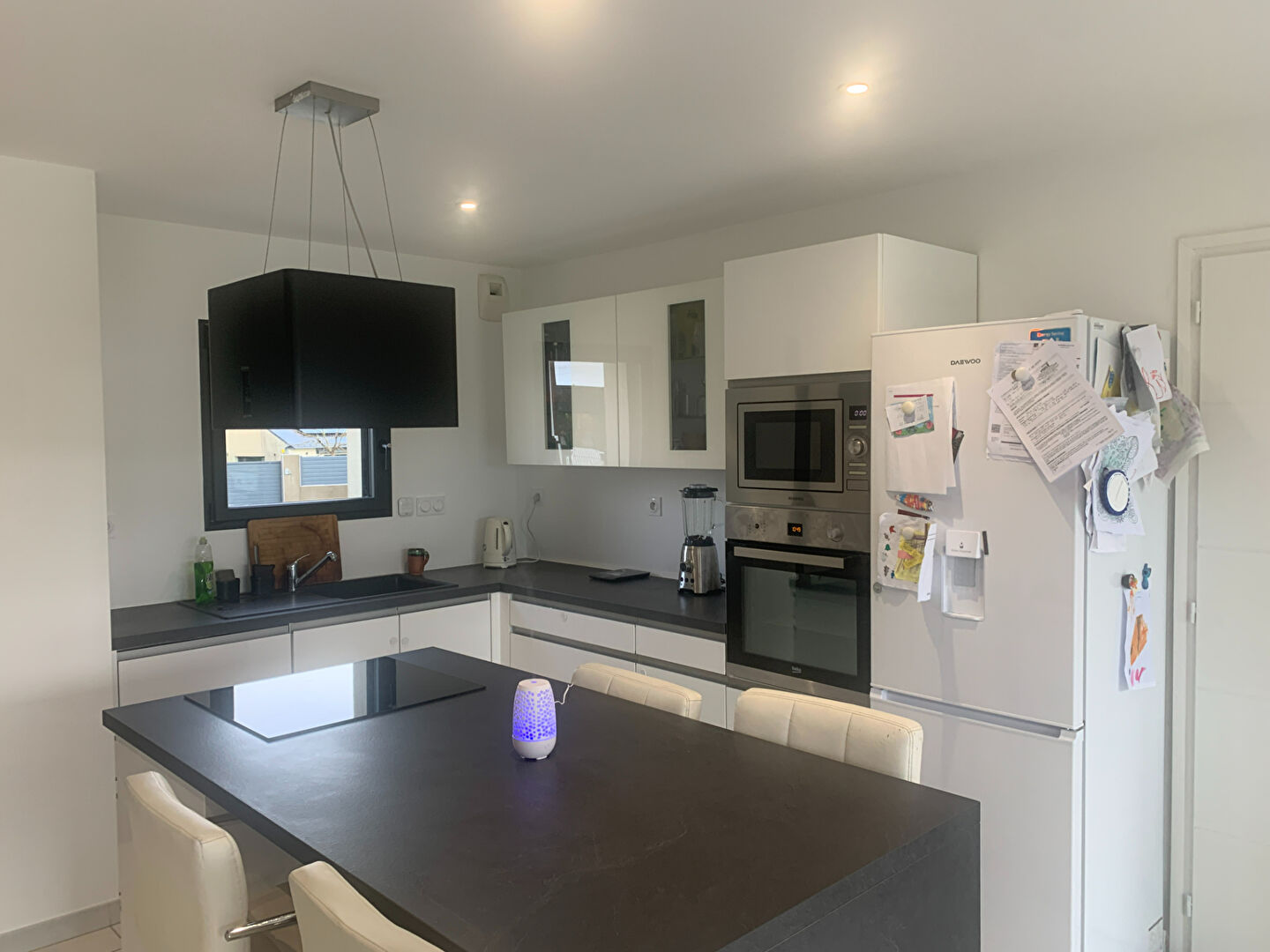 Située dans un environnement calme et verdoyant, tout en restant à proximité des écoles, cette superbe maison récente offre un cadre de vie idéal pour une famille. Dès l'entrée, un hall accueillant vous conduit vers un vaste espace de vie lumineux, parfaitement pensé pour les moments de convivialité. Celui-ci se compose d'un salon chaleureux, d'une salle à manger et d'une cuisine ouverte, entièrement aménagée et équipée. Le rez-de-chaussée propose également une suite parentale avec chambre et salle d'eau, ainsi qu'un WC indépendant, offrant un confort de plain-pied très apprécié. A l'étage, vous découvrirez trois grandes chambres, une salle de bain confortable et un second WC, assurant une organisation fonctionnelle pour toute la famille. En excellent état général, la maison se prolonge à l'extérieur par une agréable terrasse, un garage fermé et un terrain d'environ 1 300 m², idéal pour profiter pleinement des beaux jours. Une maison alliant espace, confort et sérénité, parfaite pour une vie familiale à la campagne. (6.02 % honoraires TTC à la charge de l'acquéreur.)