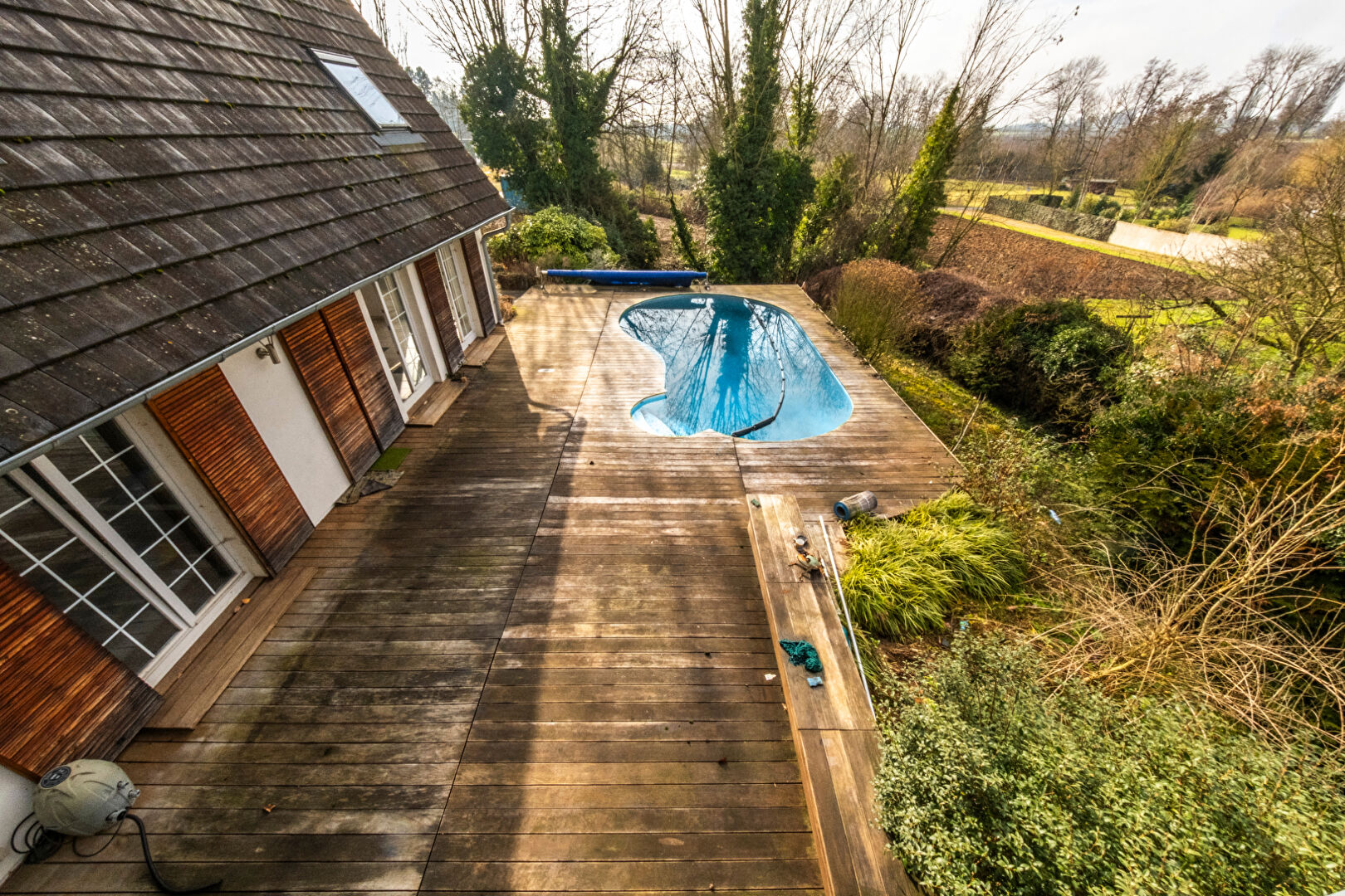 A Wiwersheim dans le Kochersberg - Maison de charme avec piscine A 15 min de Strasbourg, au coeur du Kochersberg, découvrez cette maison familiale de 178 m² habitables (200 m² au sol), située au calme et sans vis-à-vis, sur une parcelle arborée de 9,57 ares. Le rez-de-chaussée offre une spacieuse pièce de vie de 42 m² avec poêle à bois et cheminée, ouverte sur une grande terrasse plein sud de 100 m² avec piscine chauffée, une cuisine équipée avec accès terrasse, 2 chambres, une salle d'eau et un WC séparé. A l'étage : 1mezzanine avec coin lecture ou bureau, 1 chambre lumineuse avec terrasse panoramique couverte de 19 m². 2 chambres à coucher (dont une en enfilade) . 1 salle de bain avec WC. Sous-sol complet : atelier, buanderie, rangements, chaufferie, espace vélos/motos. Maison construite en 1970, rénovée en 2000, avec extension bois de caractère (2008). Vue dégagée sur la nature, environnement paisible, commodités à proximité. Un bien rare, dans un environnement d'exception, idéal pour une famille en quête de calme et d'espace. Pour en savoir plus sur les risques naturels et technologiques de la commune, consultez : https://errial.georisques.gouv.fr (4.00 % honoraires TTC à la charge de l'acquéreur.)