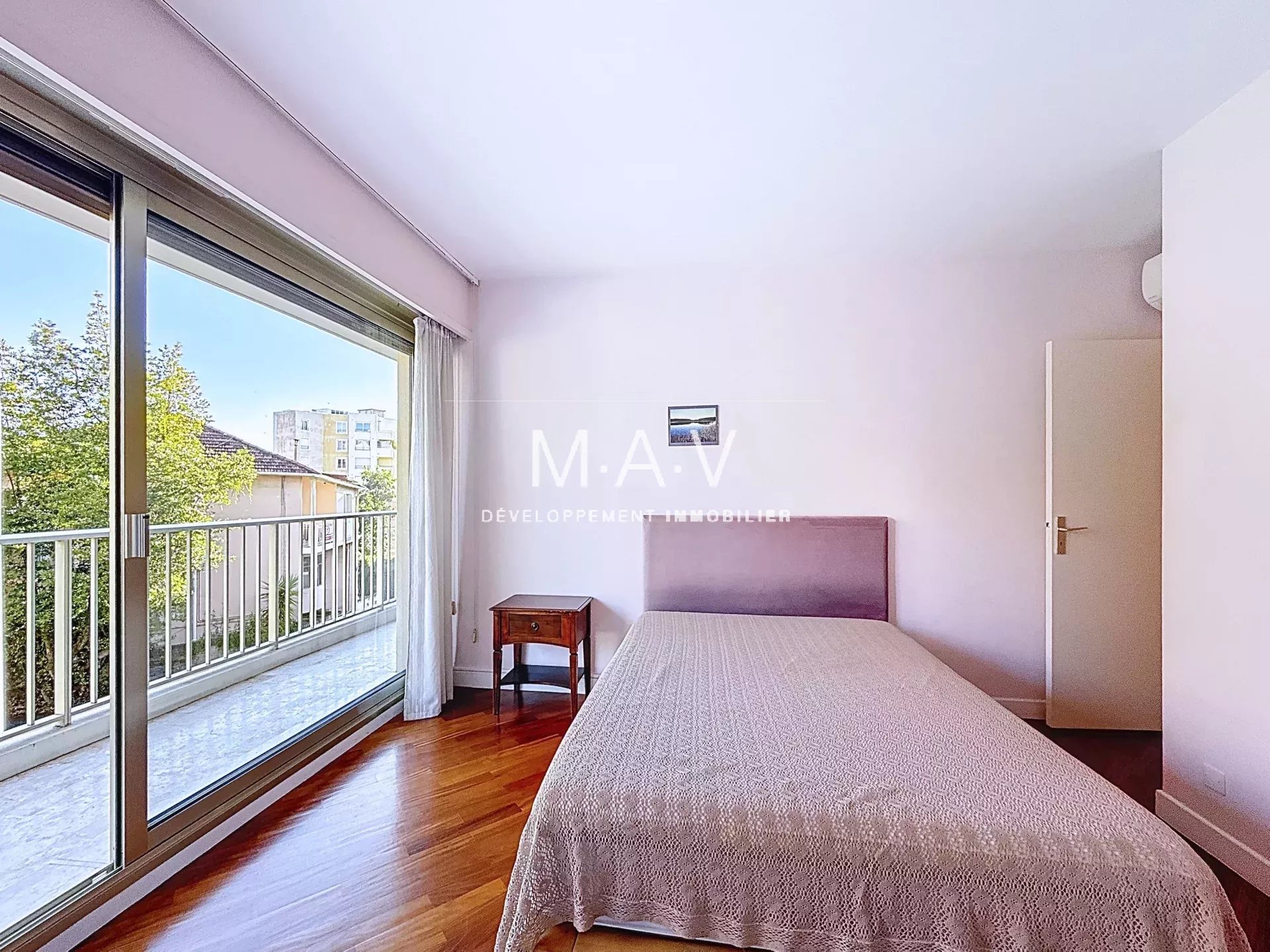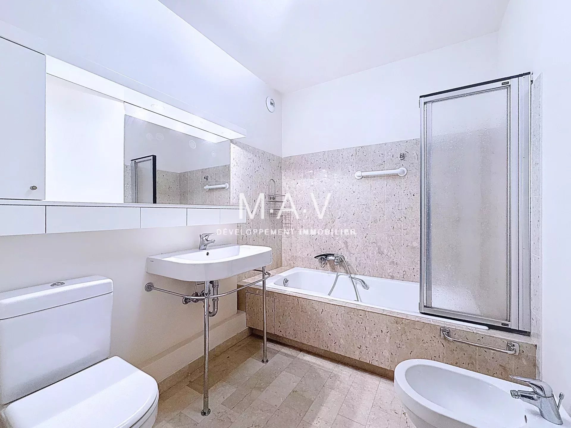 Idéalement situé Rue Auguste RENOIR à proximité de la mer, au sein d'une résidence moderne de standing avec ascenseur, découvrez en exclusivité ce superbe 3 pièces traversant de 78 m 2 offrant un cadre de vie privilégié entre culture et littoral. Les atouts du bien : Luminosité & Vue : Une triple exposition Est/Sud/Ouest baigne l'appartement de lumière. Profitez d'une terrasse de 12 m2 offrant une vue apaisante sur la verdure. Agencement optimal : un séjour et une cuisine indépendante (possibilité US) ouvrant sur l'extérieur. L'espace nuit se compose de deux chambres avec rangements privatifs donnant sur un balcon. Confort & Praticité : 1er étage surélevé, nombreux dressings, salle de bains avec WC + toilettes invités. Localisation Premium : À 2 pas de la Promenade des Anglais, du Musée des Beaux-Arts et de la ligne 2 du tramway (accès direct Port-Aéroport). Un garage de 16 m2 en sous-sol dans l'immeuble et une cave complètent ce bien d'exception. Dossier de présentation avec vidéo disponibles sur demande.